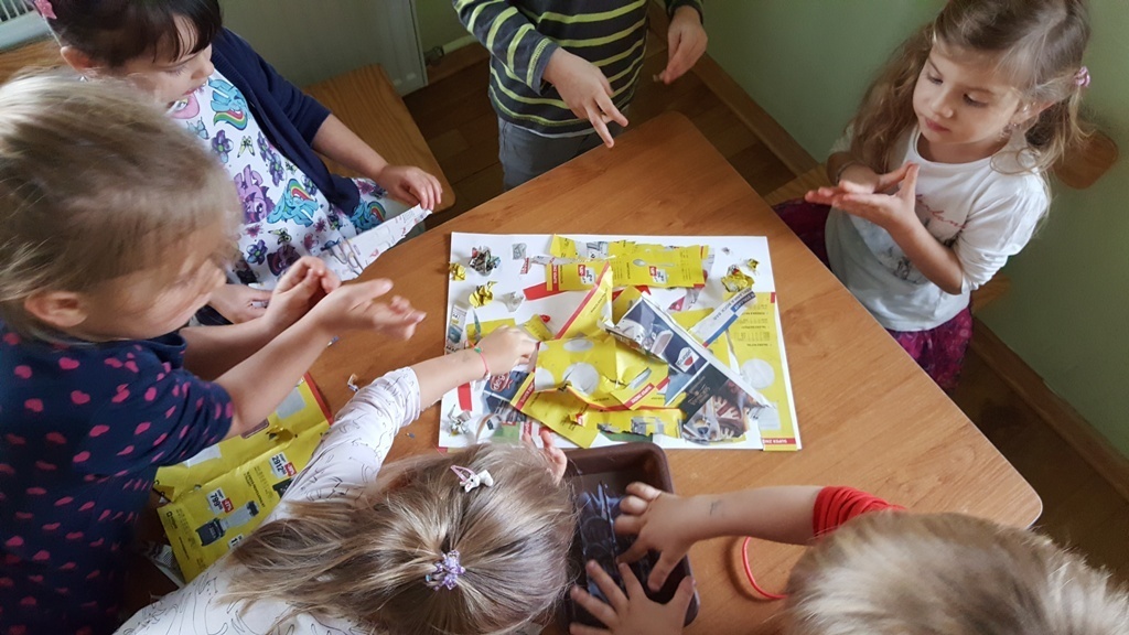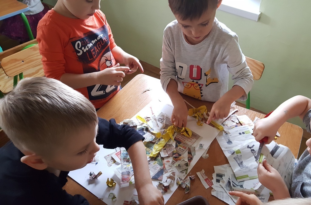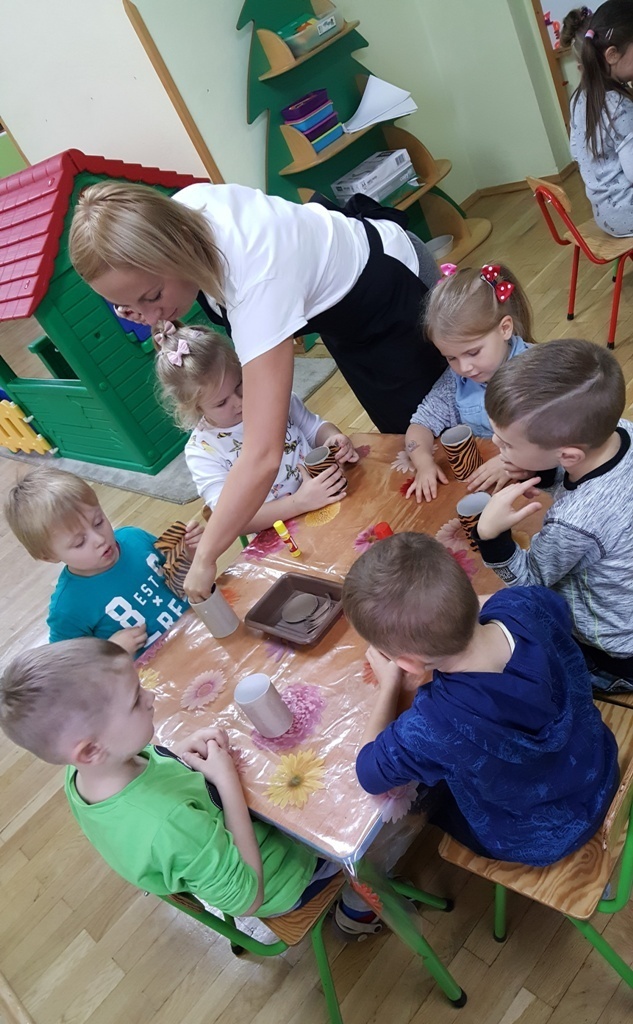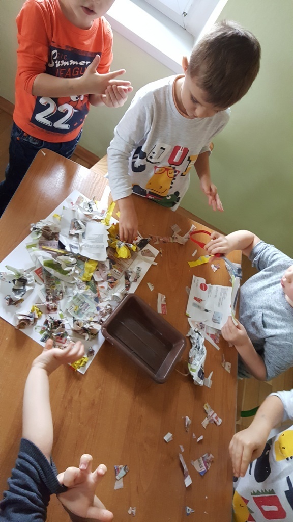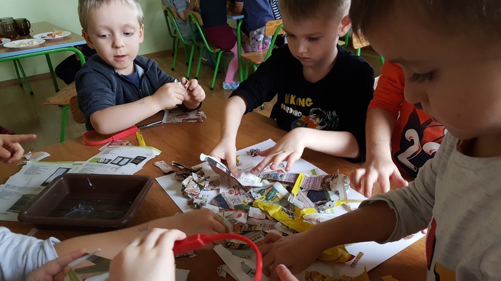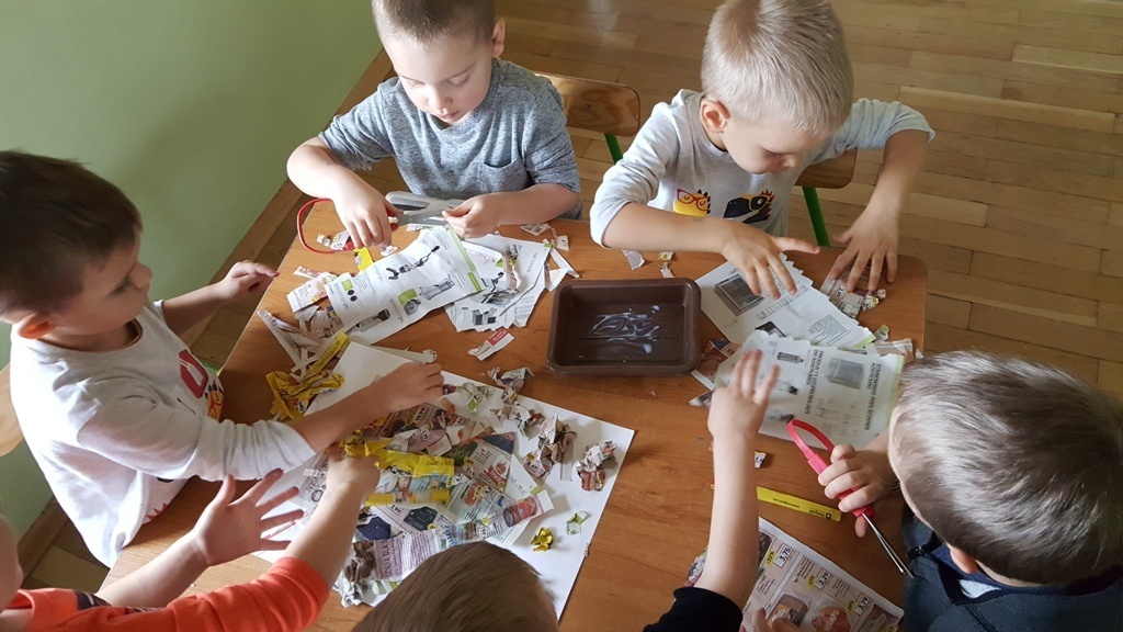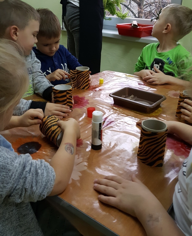 W ramach walki z nudą i dla wyćwiczenia paluszków nasz grupa korzystając z ogólnodostępnych metod takich jak: plastelina, bibułą kolorowa, tektura, sznurek, gazety, rolki po papierze toaletowym itp. wykonywała prace plastyczno - techniczne. Efektem naszych starań była cała kolekcja przeróżnych papierowych zwierząt, z której stworzyliśmy galerię dla rodziców. Była to dla nas dobra zabawa i dowiedzieliśmy się , że wcale nie trzeba kupować drogich zabawek w sklepie tylko można je zrobić samemu właściwie z niczego.