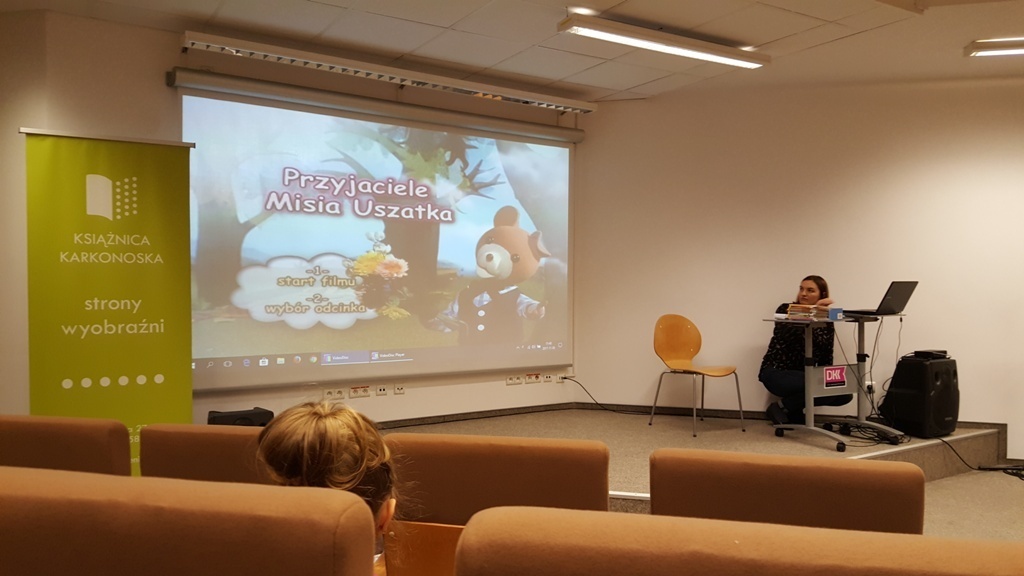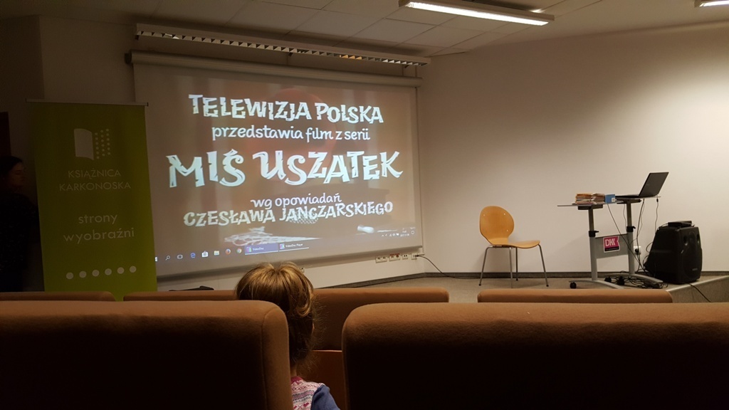 Poznaliśmy dziś przesympatycznego bohatera bajek dla dzieci. Przygody tego jegomościa bawiły i zachwycały naszych rodziców, którzy oglądali film w telewizji. Mis Uszatek bo o nim mowa, wystąpił dziś podczas seansu organizowanego w Książnicy Karkonoskiej. Przygody misia, jego przyjaciół bardzo nam się spokładały. Szczególnie, że Miś Uszatek, prosiaczek, zające podobnie jak my chodzą do przedszkola i tworzą zgraną grupę przyjaciół.
