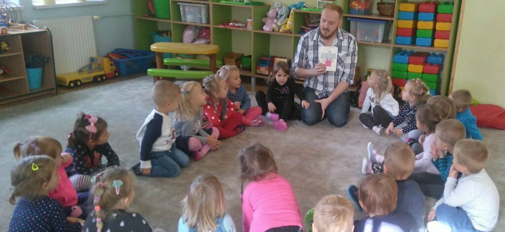 Bardzo lubimy zajęcia dodatkowe, które odbywaj się w przedszkolu, dlatego jak przychodzi pan Marcin to ładnie śpiewamy, pokazujemy i rozmawiamy, posługując się językiem angielskim.