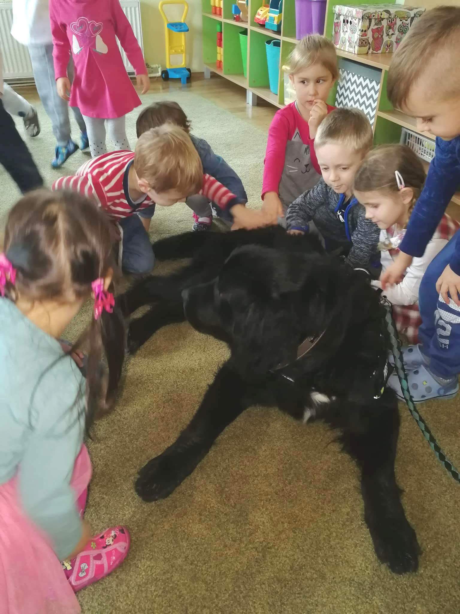 Jak wiadomo pies jest największym przyjacielem człowieka. A już największym naszym przyjacielem jest suczka Lenka, która odwiedza nas wraz ze swoją opiekunką już drugi rok. Pozwala nam się głaskać, bawi się z nami i sprawia, zew nawet przejście przez ciemny tunel nie jest straszne. Lubimy wspólnie spędzać czas na aktywnych grach i zabawach. Może kiedyś uda nam się zabrać Lenkę na spacer.