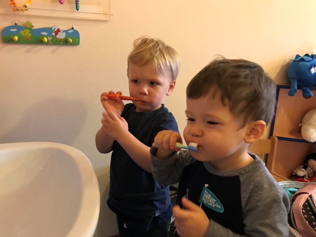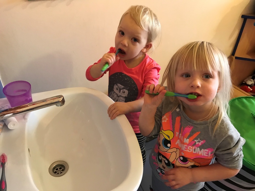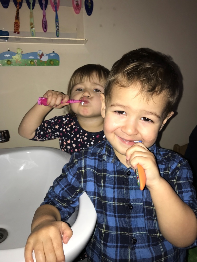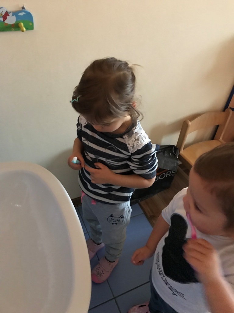 W dniu dzisiejszym grupa Smerfów zakończyła cykl zajęć dotyczących zdrowia. Ostatnie dwa dni Maluszki spędziły na przygotowaniach do samodzielnego mycia zębów. Najpierw ćwiczyliśmy ruchy szczoteczki na płaskim szablonie przedstawiającym górną i dolną szczękę. Kolejnym etapem było szczotkowanie przestrzenne modelu zęba wykonanego z denka plastikowej butelki. Tak przygotowane Smerfy podjęły wyzwanie i wyszczotkowały swoje ząbki. Każdy z przejęcia starał się najlepiej wykonać nauczone ruchy. Z dumą możemy się pochwalić,że najmłodsze przedszkolaki zadanie wykonały idealnie, jak na możliwościowi swoich małych rączek.