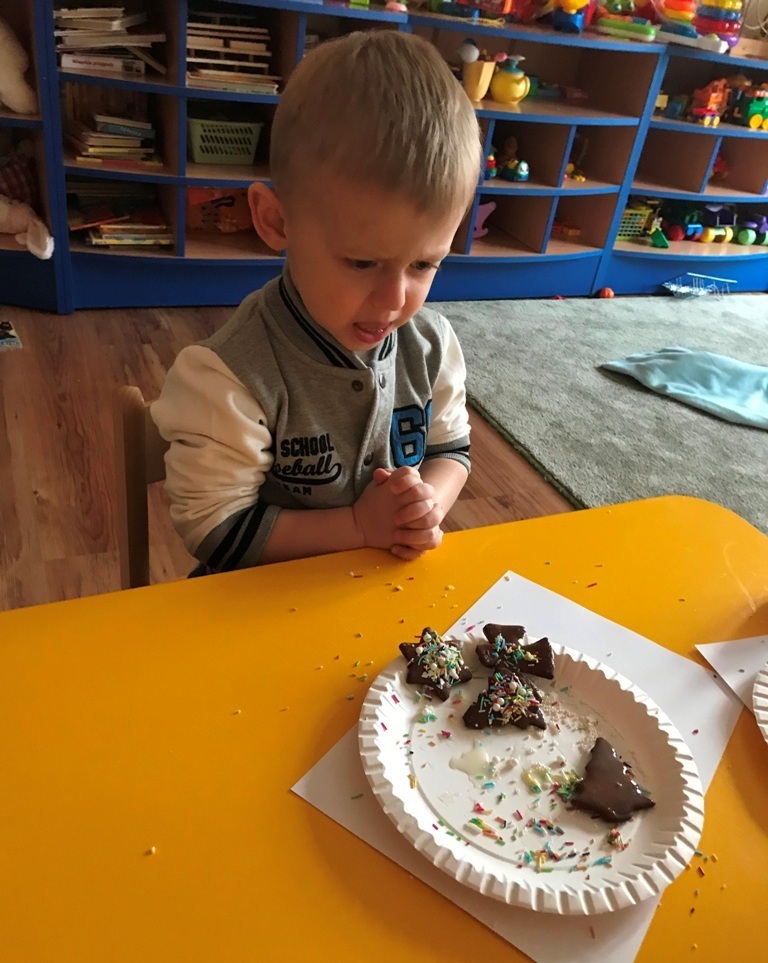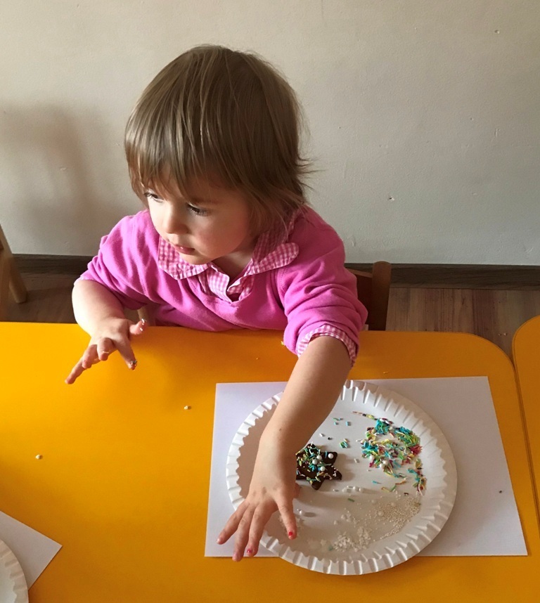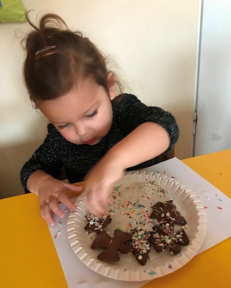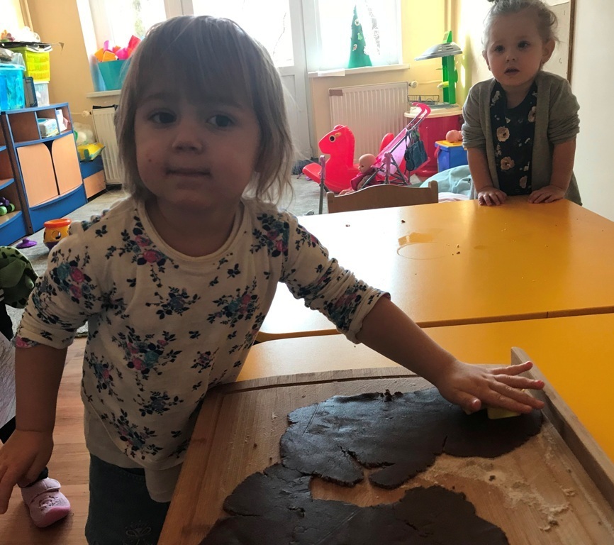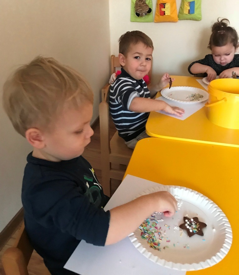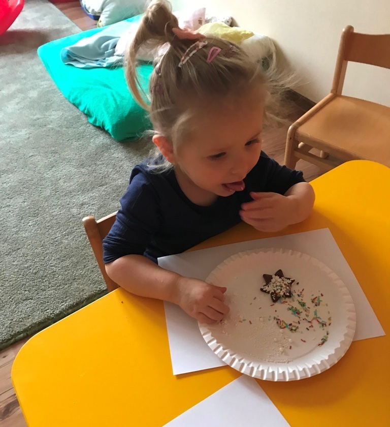 Czwartkowe wykrawanie i piątkowe zdobienie pierniczków mocno zaangażowało maluszki. Wykrawane gwiazdki, choinki i aniołki zostały własnoręcznie ozdobione przez grupę Smerfów. Każde ciasteczko zostało unikatowo obsypane posypką, groszkami i innymi cukrowymi ozdobami. Każdy z Maluszków ukradkiem spróbował cukrowych przysmaków. Pierniczki pozostały do wyschnięcia po dekorowaniu i zostaną zjedzone wspólnie w czasie przedszkolnej wigilii.