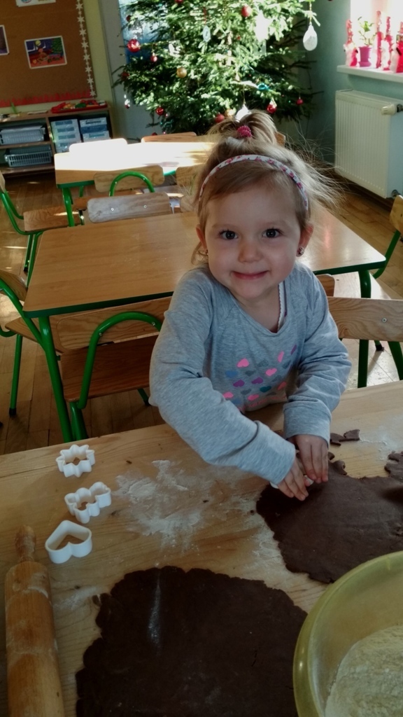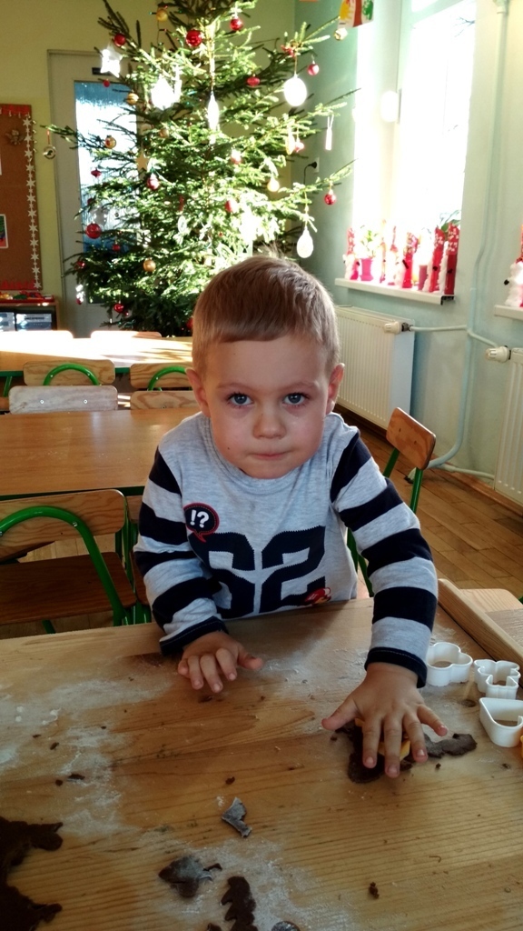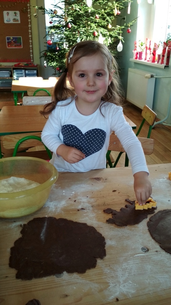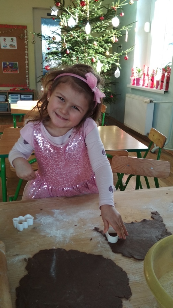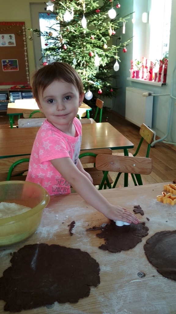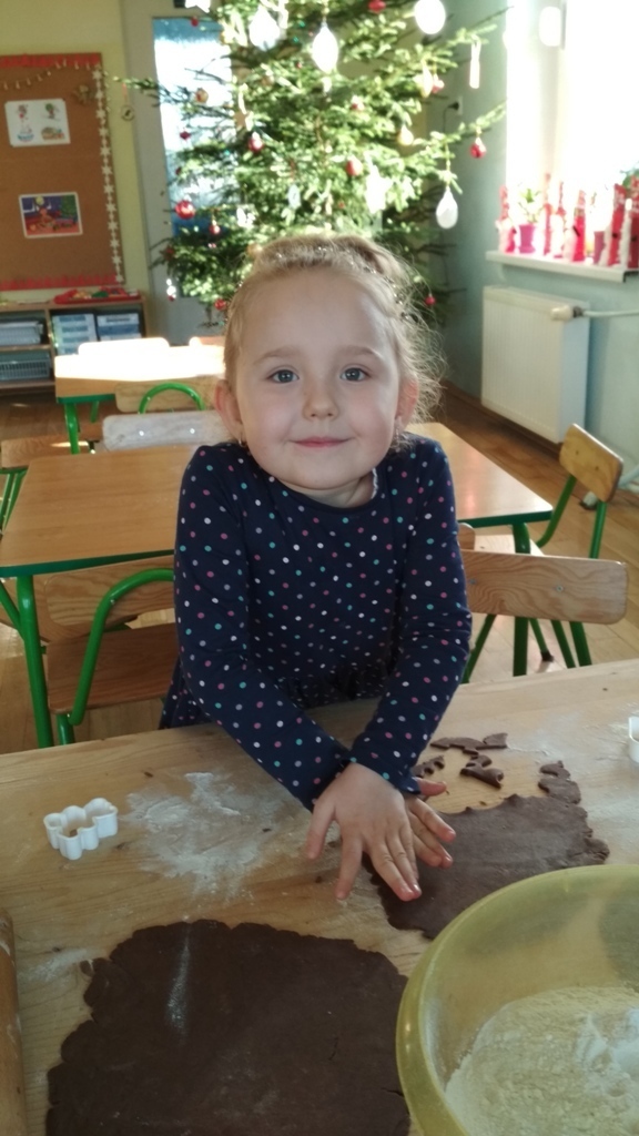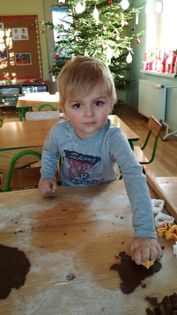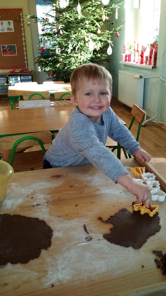 Każdy z nas jest małym łakomczuchem i lubi jeść słodycze, a o tej porze roku , gdy zbliżają się święta Bożego Narodzenia uwielbiamy szczególnie zajadać pierniczki. Dzisiaj w przedszkolu odbyło się wielkie pieczenie pierników. Mogliśmy samodzielnie z ciasta piernikowego przygotowanego przez panie w kuchni, za pomocą rożnych świątecznych foremek tworzyć i wycinać własne pierniczki. To była świetna zabawa, a przy tym niesamowite doznania zapachowe, które pobudzały nasze kubki smakowe i narobiły ochoty na coś słodkiego!