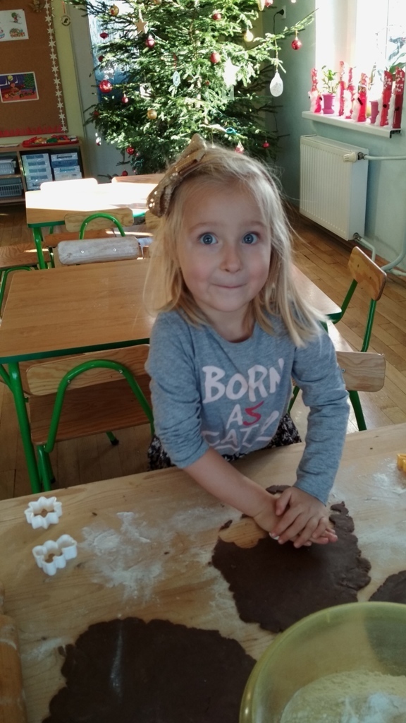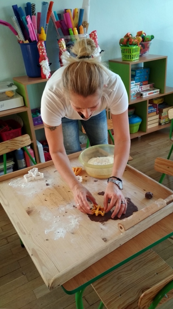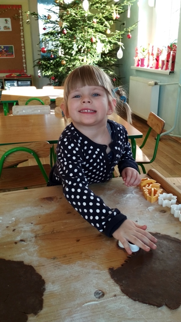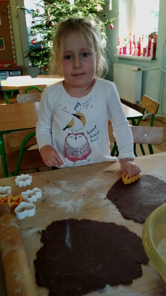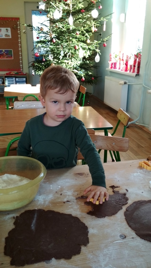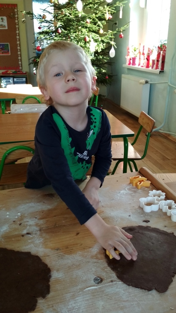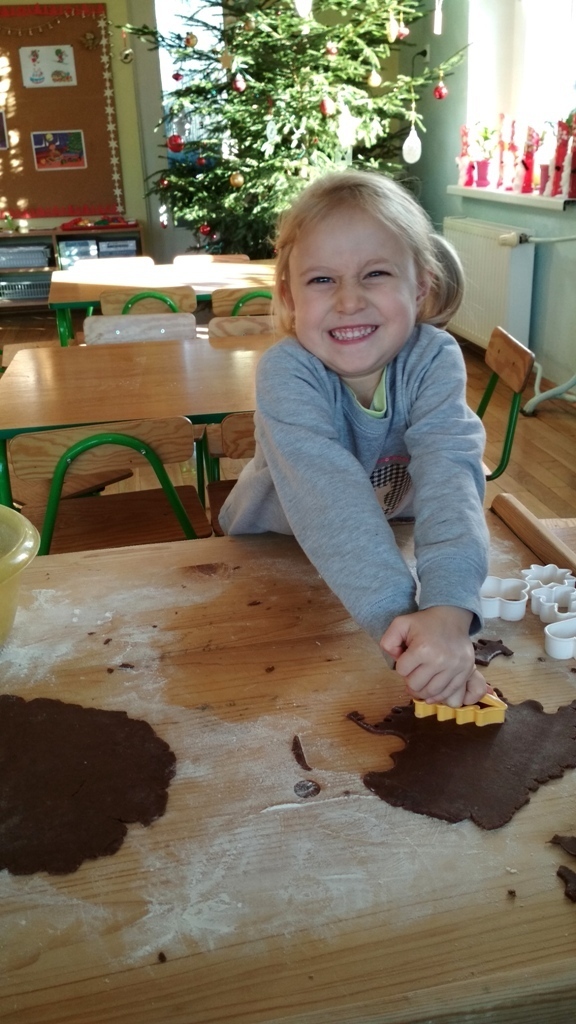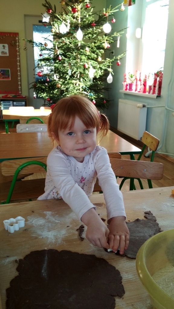 Każdy z nas jest małym łakomczuchem i lubi jeść słodycze, a o tej porze roku , gdy zbliżają się święta Bożego Narodzenia uwielbiamy szczególnie zajadać pierniczki. Dzisiaj w przedszkolu odbyło się wielkie pieczenie pierników. Mogliśmy samodzielnie z ciasta piernikowego przygotowanego przez panie w kuchni, za pomocą rożnych świątecznych foremek tworzyć i wycinać własne pierniczki. To była świetna zabawa, a przy tym niesamowite doznania zapachowe, które pobudzały nasze kubki smakowe i narobiły ochoty na coś słodkiego!