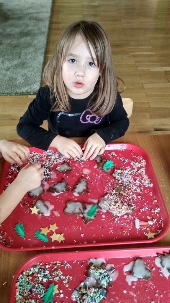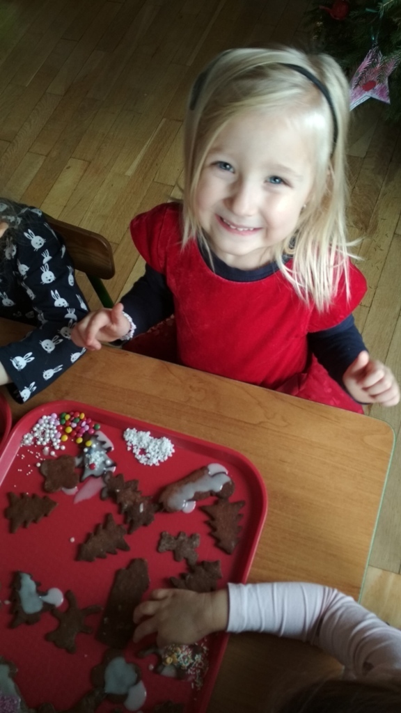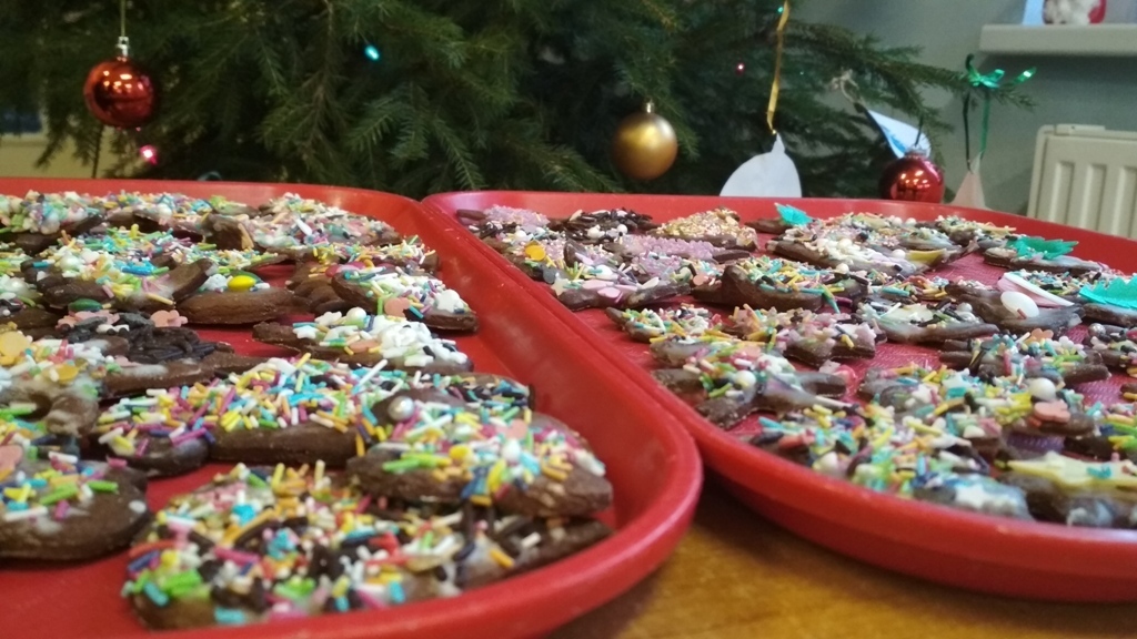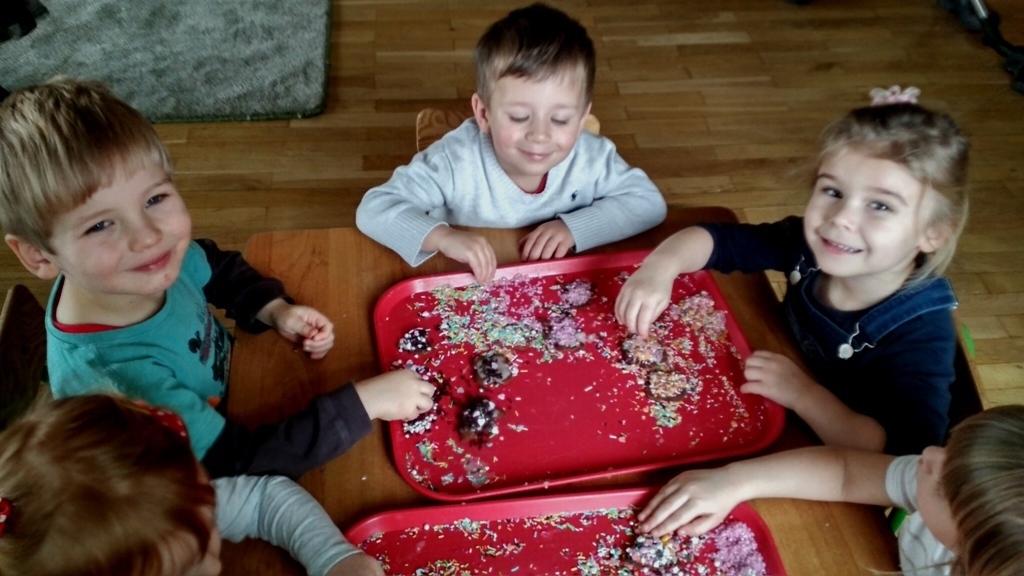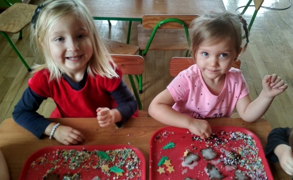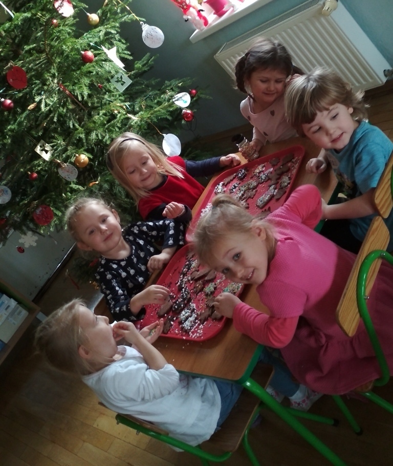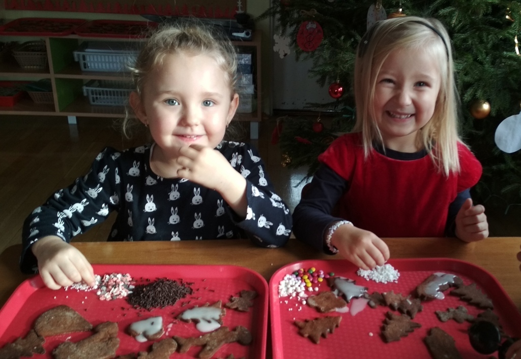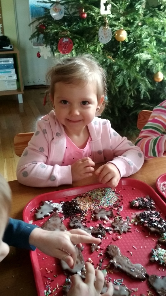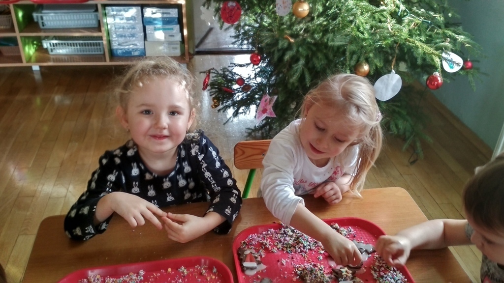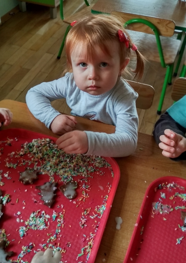 Dzisiejszego dnia dekorowaliśmy nasze pierniczki, które przygotowaliśmy kilka dni wcześniej. Na naszym stole, aż mieniło się od kolorowych, słodkich dekoracji. Każdy z nas z przyjemnością siadał do stolika i dekorował choinki, misie, gwiazdki i aniołki - lukrem, a także pysznymi słodkimi posypkami, których oczywiście musieliśmy spróbować, żeby wiedzieć, czy pierniki udały się i czy będą nam smakowały w dniu Wigilii. A będą przepyszne, musicie nam uwierzyć!