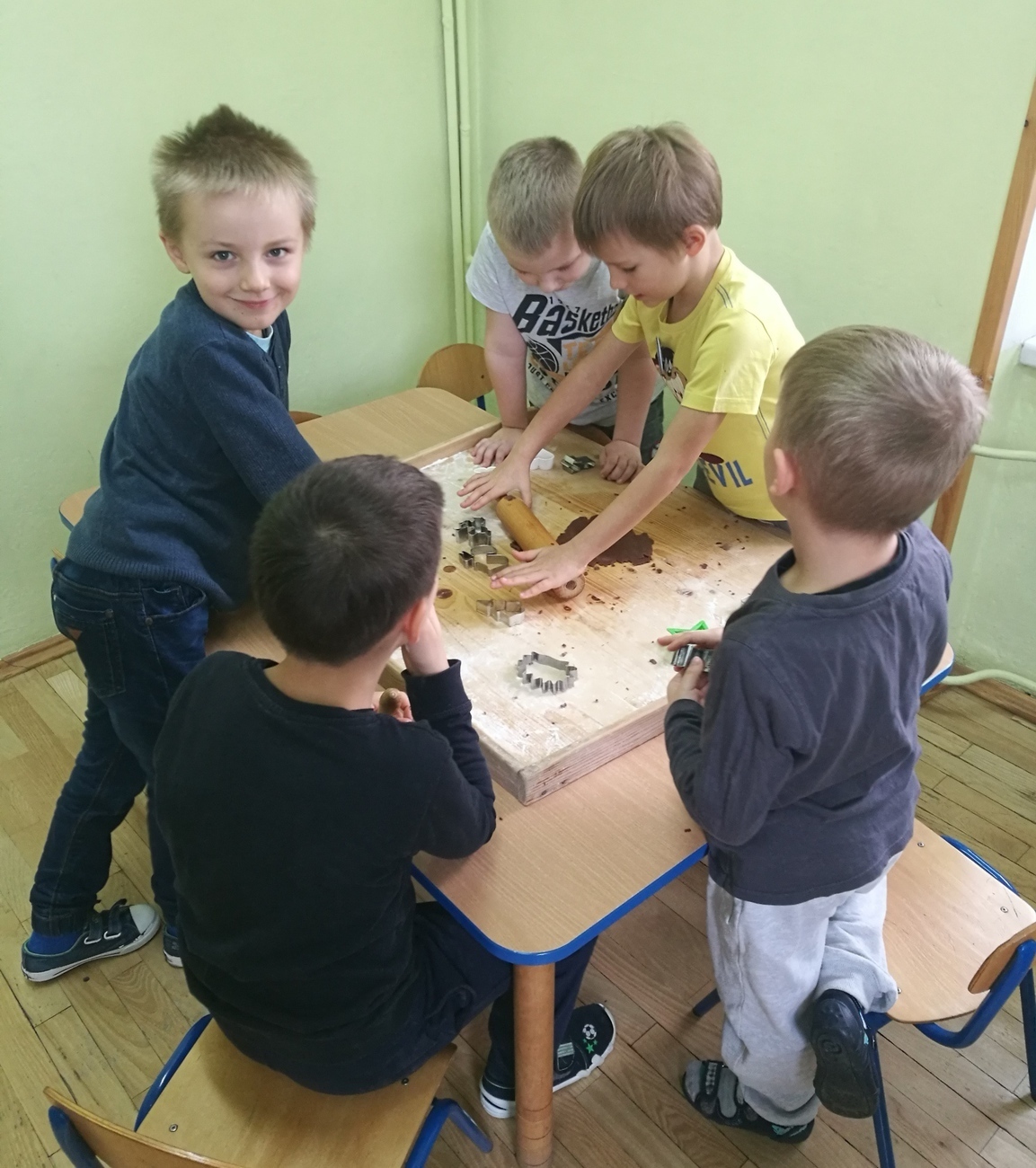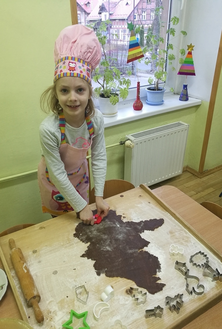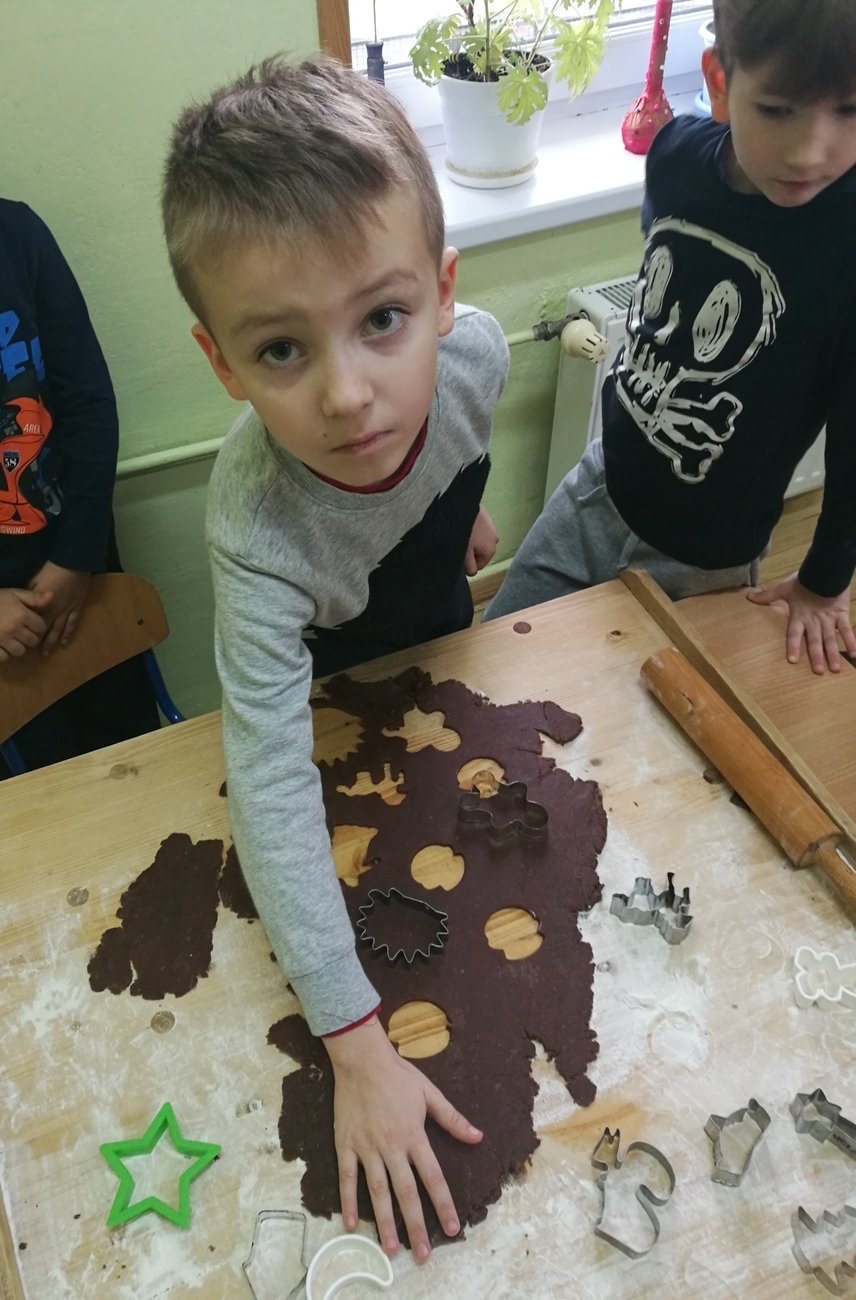 Grudzień to miesiąc radosnego oczekiwania i mnóstwa przygotowań. W naszym przedszkolu przyszedł czas na coroczne wypiekanie pierników. Już od rana w budynku unosił się słodki zapach piernikowego ciasta. Dzieci poprzynosiły z domu najróżniejsze foremki i przy dźwiękach kolędy mogliśmy zabrać się do pracy. Powstały wesołe bałwanki i delikatne anioły, misie, serca, renifery i domki. Nasze pierniki miały rozmaite kształty. Chętnie wycinaliśmy gwiazdki i choinki. Wspólna praca sprawiła nam wiele radości a cichutko płynąca w tle kolęda nadała tej chwili świątecznej atmosfery. Po skończonej pracy nasze pierniki oddane zostały do kuchni by tam upiec się w piekarniku. Po kilku dniach otrzymaliśmy je z powrotem, by móc udekorować nasz wspaniały wypiek. Wszystkie starszaki zabrały się ochoczo do tak przyjemnej pracy. Pierniki polewaliśmy cytrynowym lukrem i ozdabialiśmy kolorowymi posypkami. Wszystkie wyszły bardzo pięknie. Czekają teraz schorowane w pudełku aż nadejdzie dzień przedszkolnej wigilii i będziemy je mogli wszyscy wspólnie zjeść. Starszaki już odliczają dni i ćwiczą swoją cierpliwość.