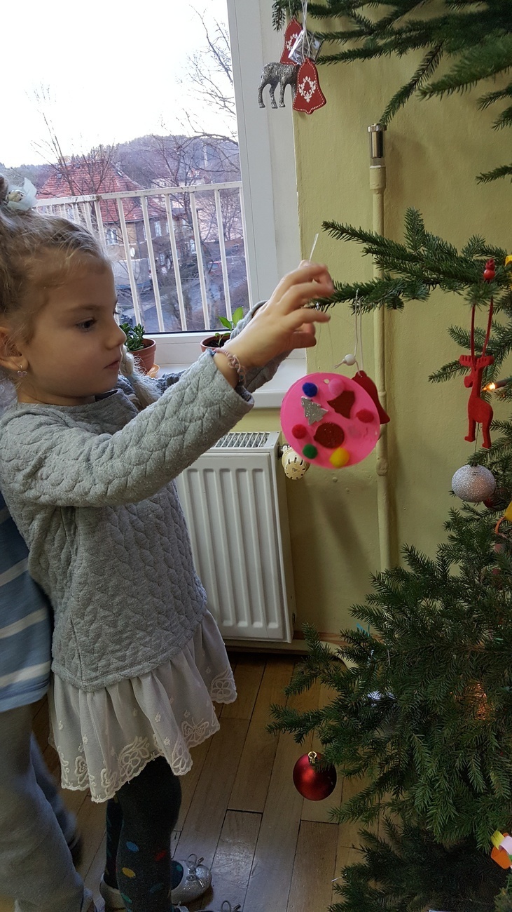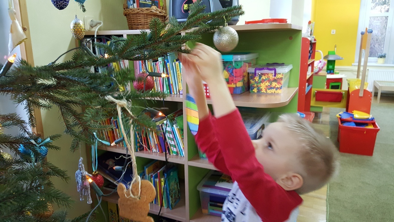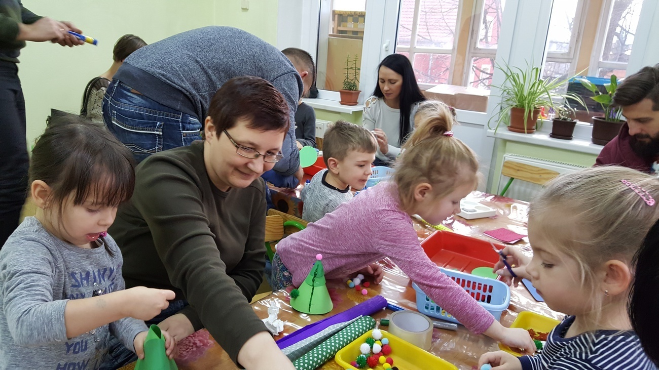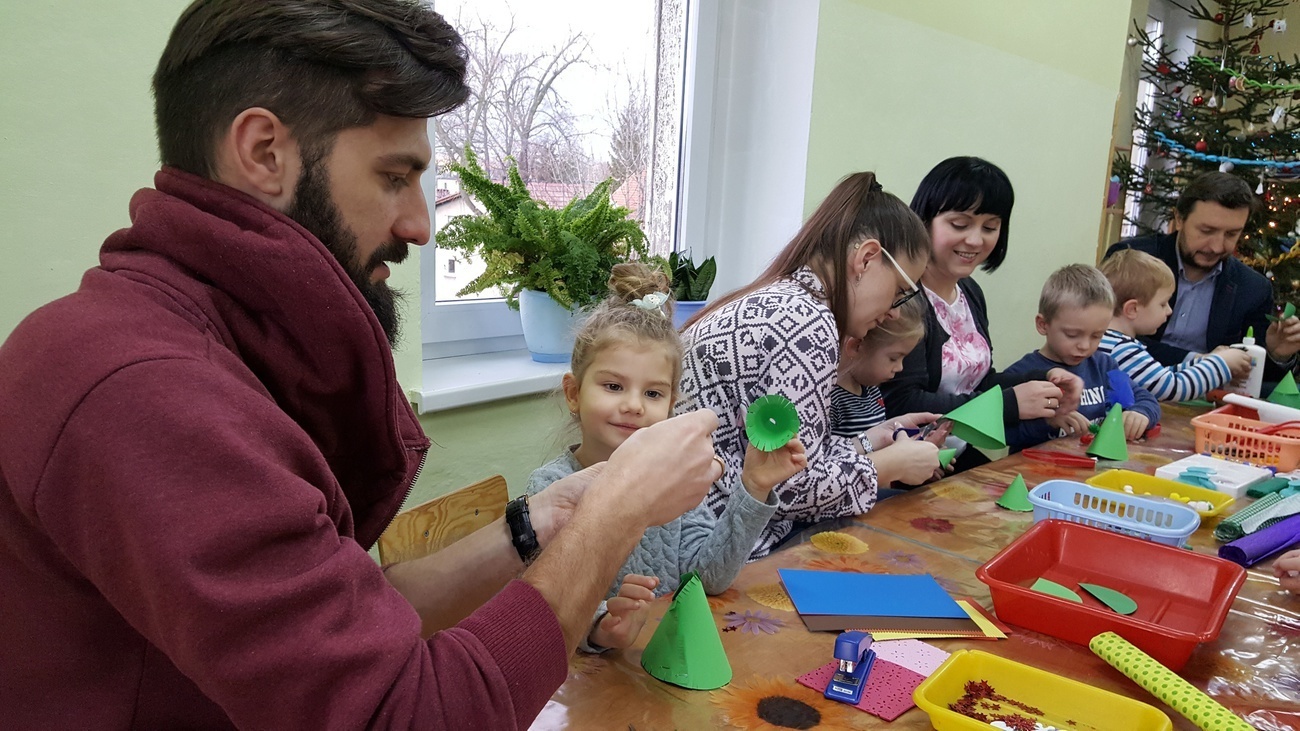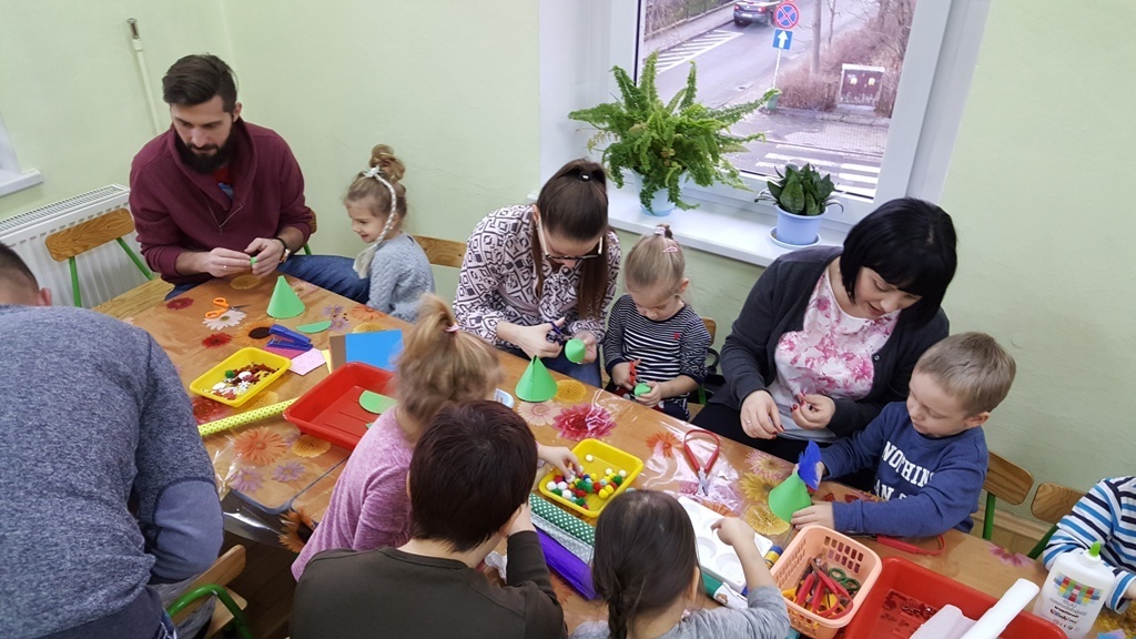 Wspólnie z rodzicami wykonywaliśmy dziś ozdoby choinkowe. Przy jednym stole pełnym przygotowanych wcześniej materiałów plastycznych zasiedliśmy by wykonać fantazyjne choinki i bombki. Efekt przerósł nasze oczekiwania. Dzięki pomocy rodziców powstało mnóstwo wspaniałych ozdób, które udekorowały naszą przedszkolną choinkę.