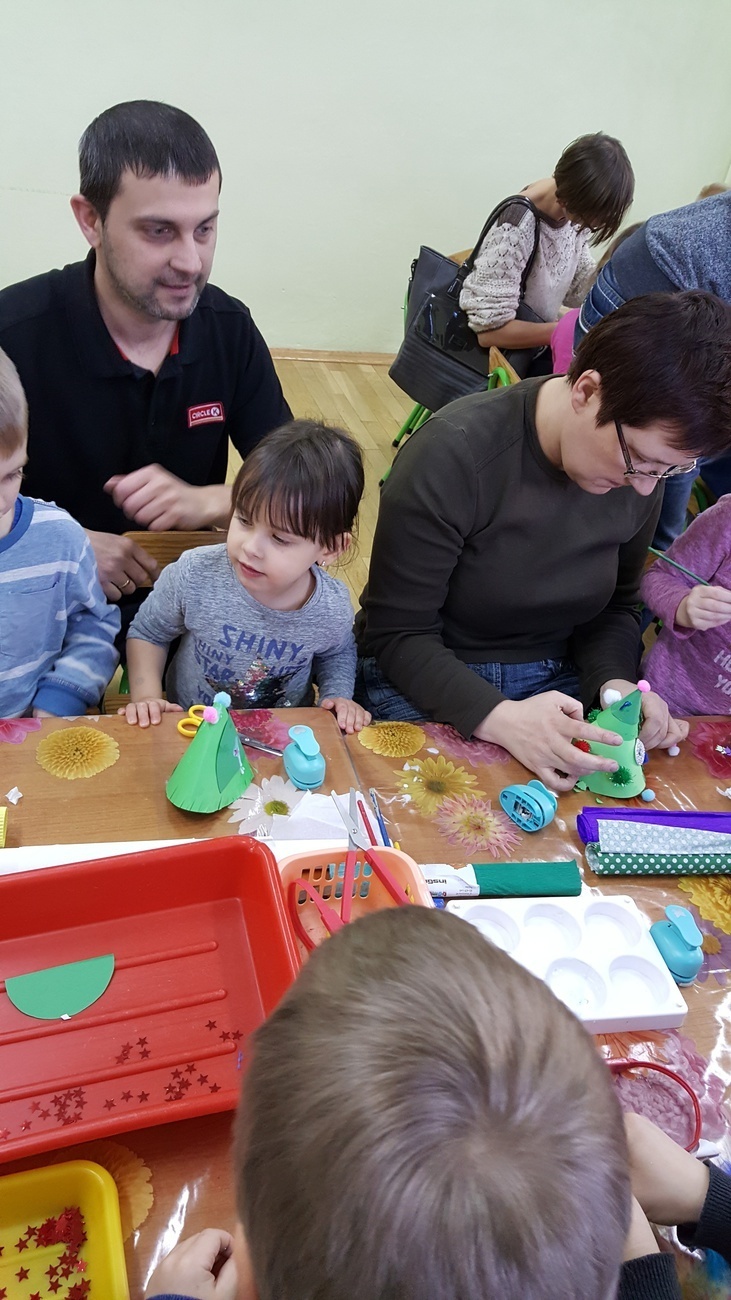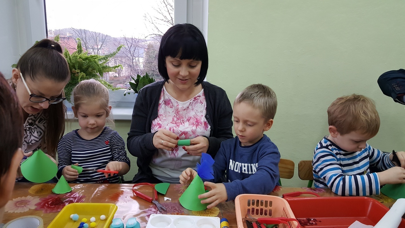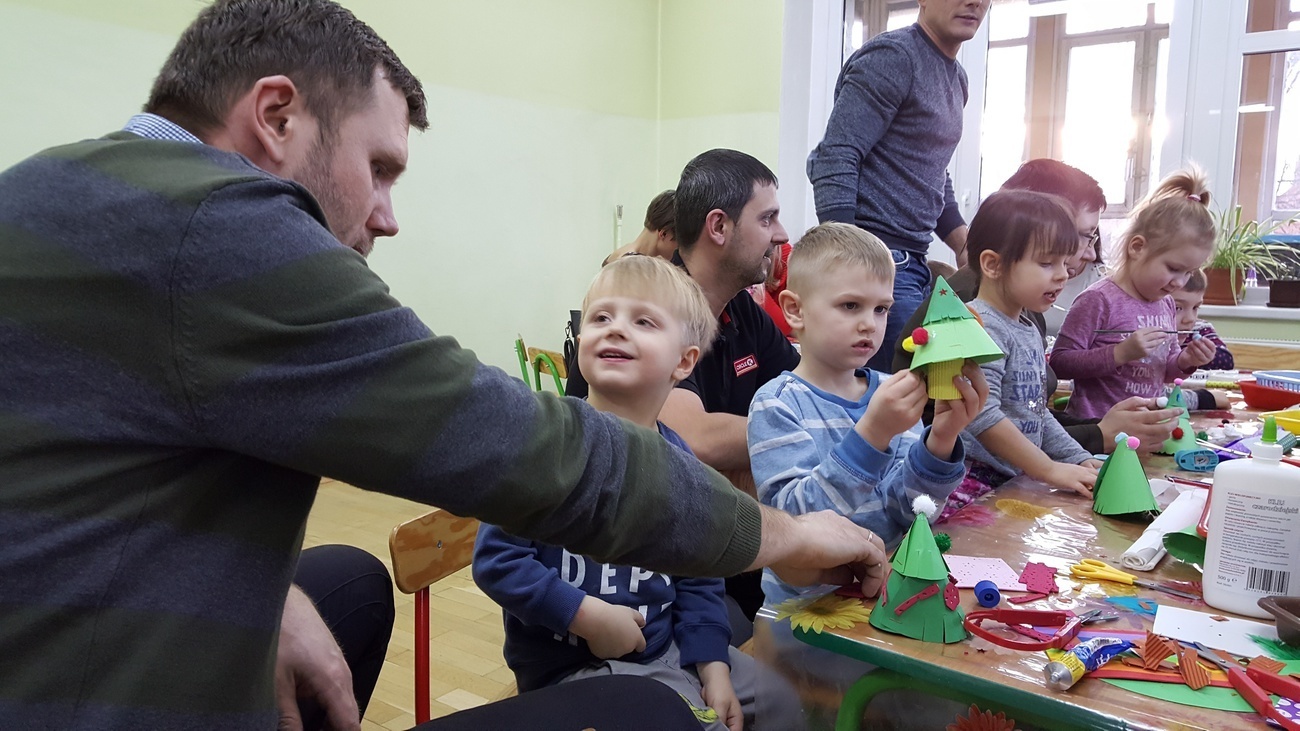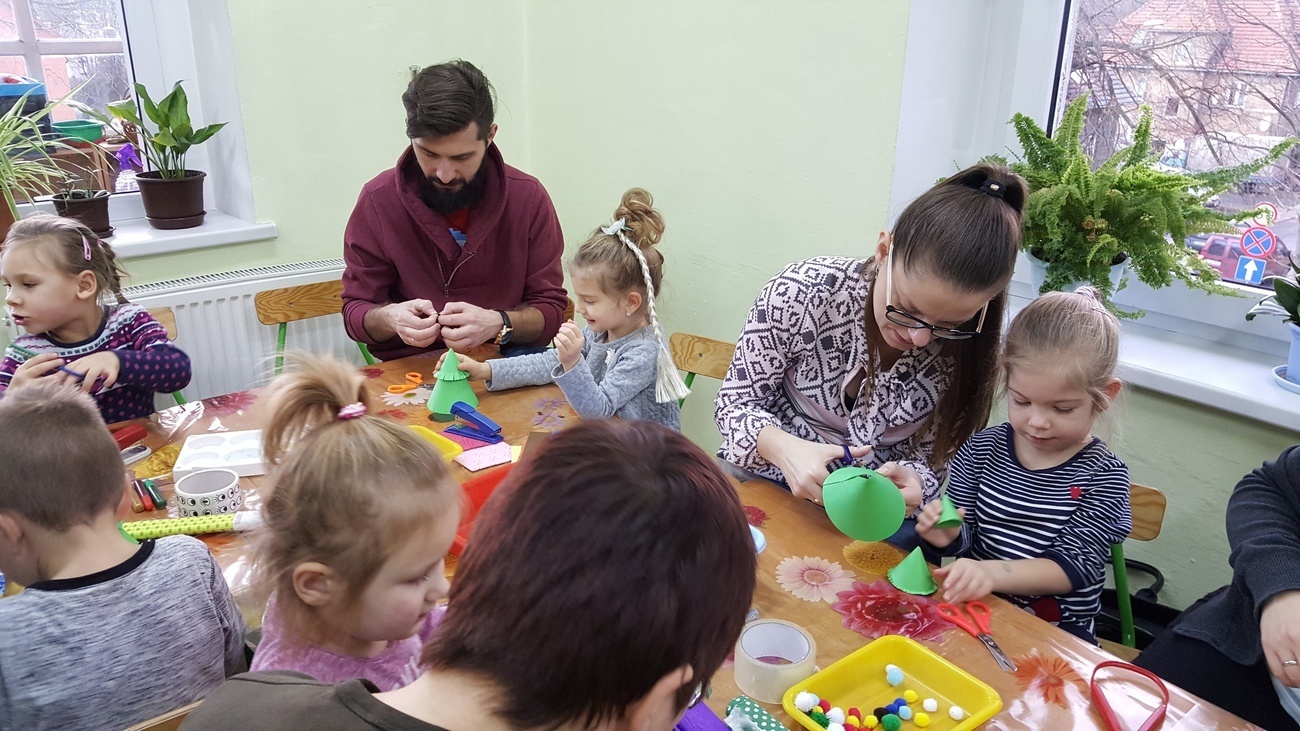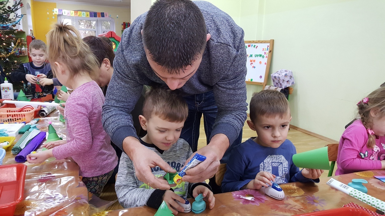 Wspólnie z rodzicami wykonywaliśmy dziś ozdoby choinkowe. Przy jednym stole pełnym przygotowanych wcześniej materiałów plastycznych zasiedliśmy by wykonać fantazyjne choinki i bombki. Efekt przerósł nasze oczekiwania. Dzięki pomocy rodziców powstało mnóstwo wspaniałych ozdób, które udekorowały naszą przedszkolną choinkę.
