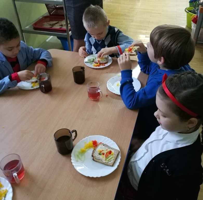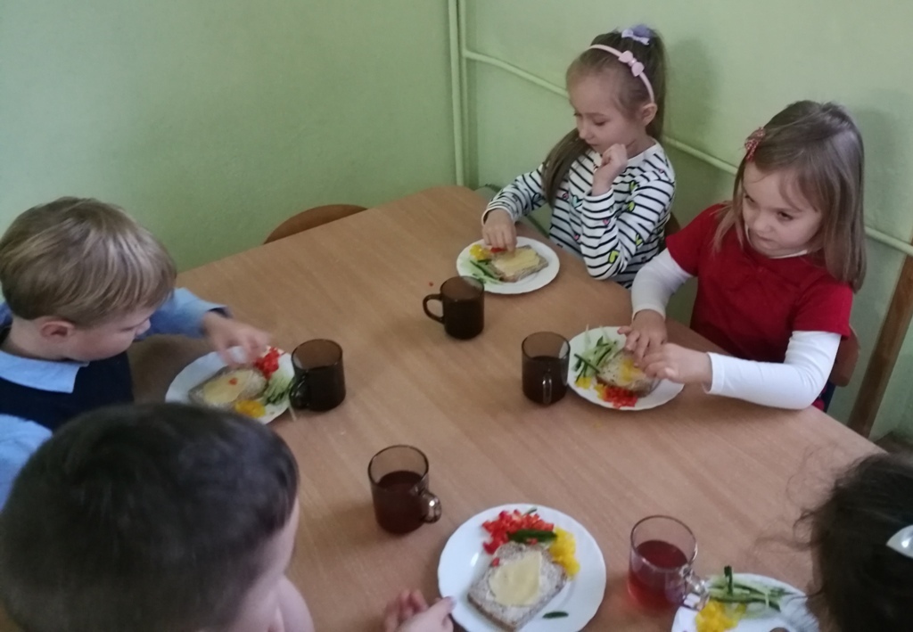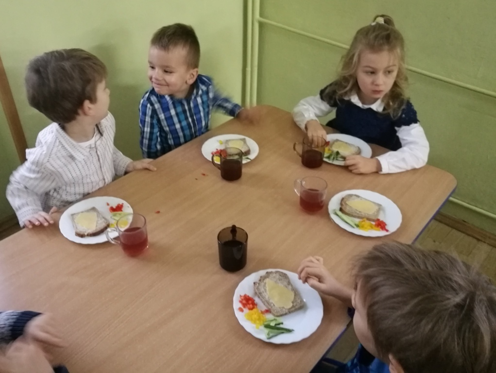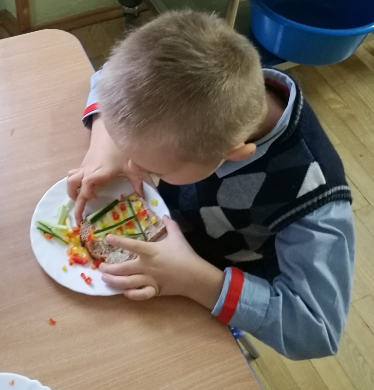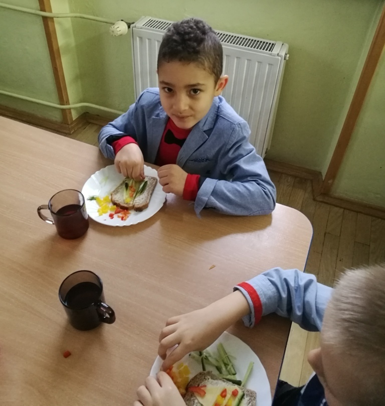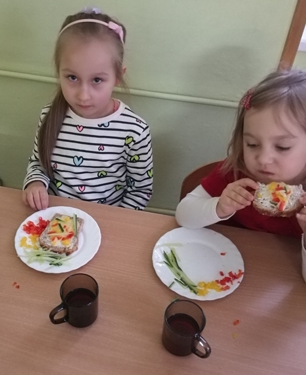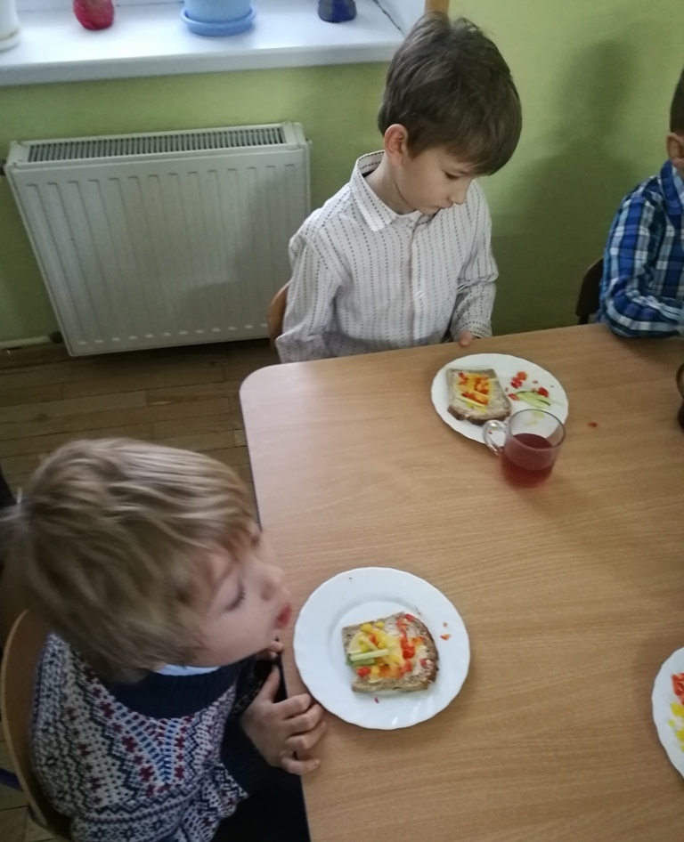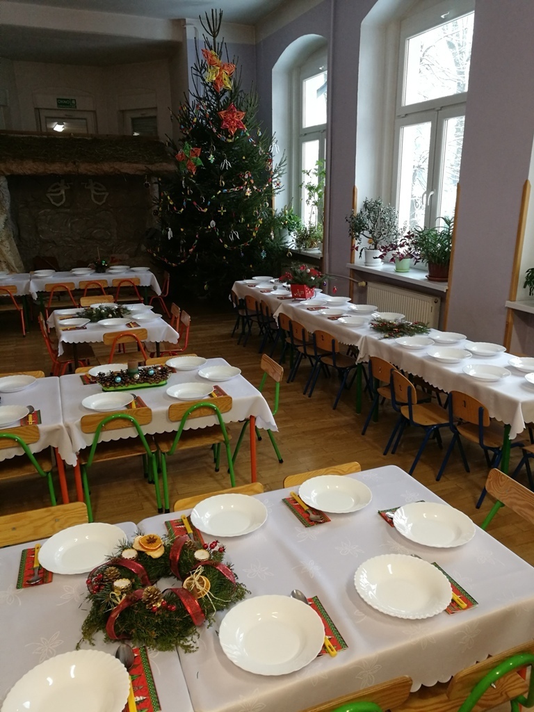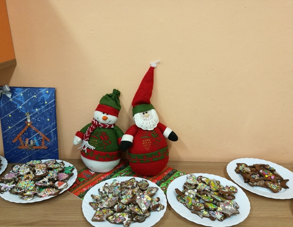 Wspólne chwile rozpoczęły się od podzielenia opłatkiem i życzenia sobie pomyślności oraz wesołych świąt. W dalszej części uroczystości dzieci spożywały obiad wigilijny, smaczny barszcz z uszkami, rybę po grecku i kompot z suszu. Na deser przedszkolaki częstowały się pierniczkami które wykonały i zdobiły własnoręcznie ze swymi wychowawczyniami.