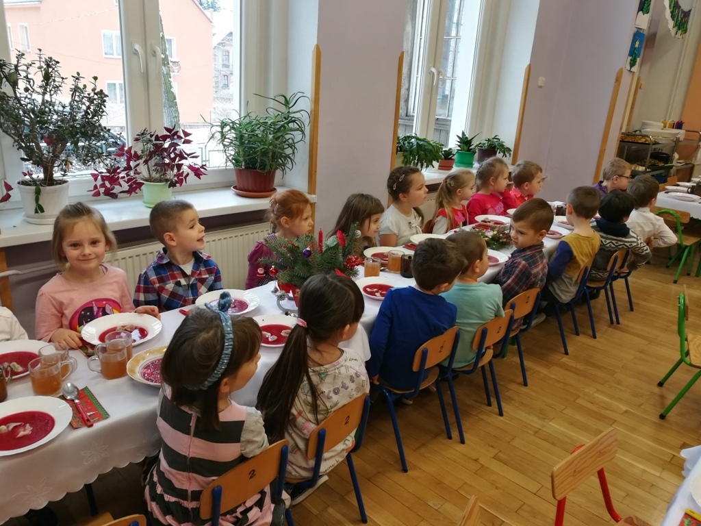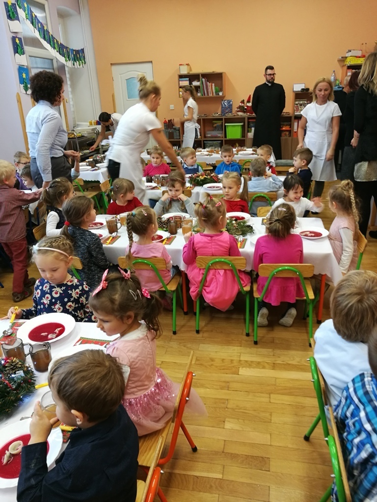 Kolejny raz przedszkolaki spotkały się przy wigilijnym stole. Tym razem uroczystość odbyła się 20.12.2017 r. i zebrała do wspólnego celebrowania świątecznego czasu liczne grono dzieci.