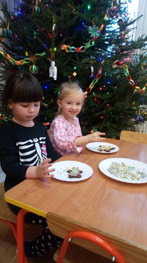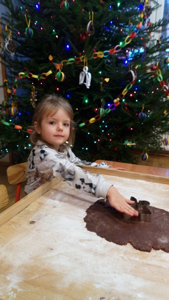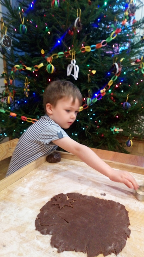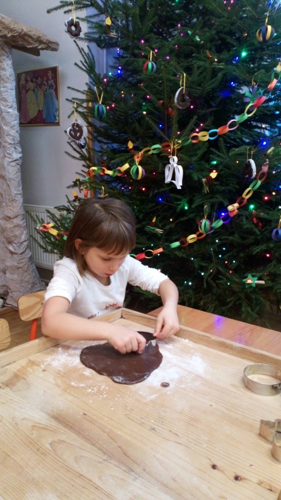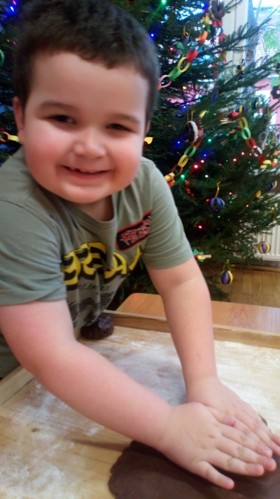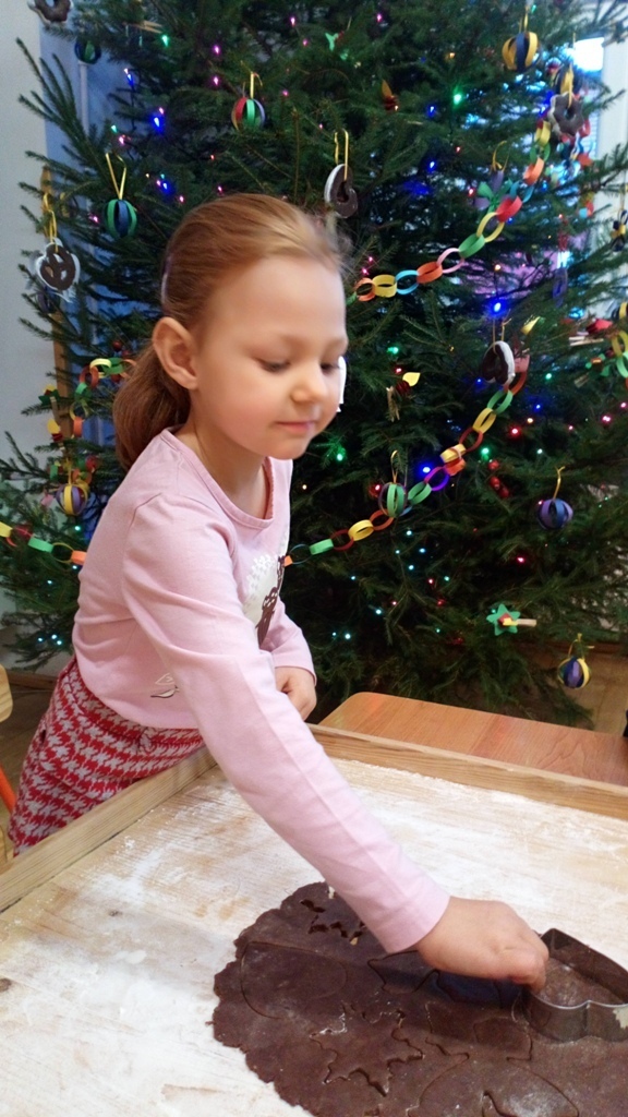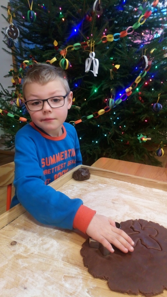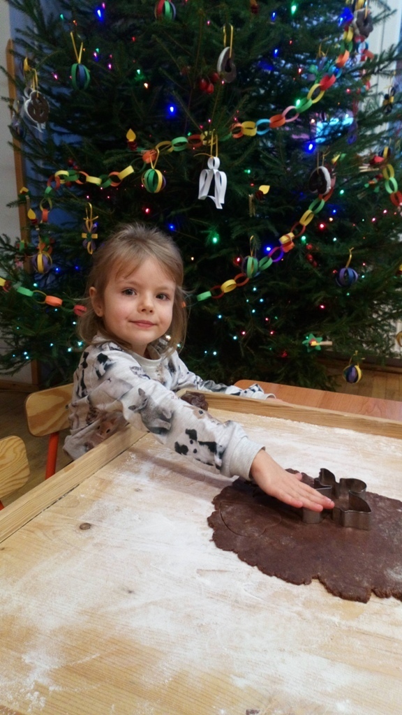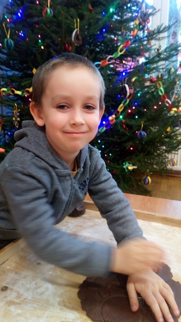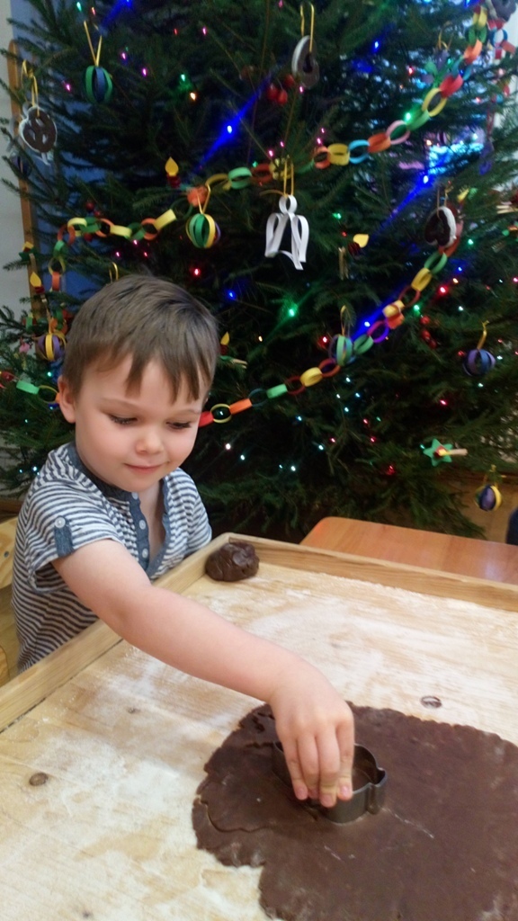 Tradycją już się stało w naszym przedszkolu, że przed wigilią pieczemy wspólnie pierniki. I w tym roku również podwinęliśmy rękawy i zabraliśmy się do pracy. Gdy wycięliśmy już wszystkie wzory zesłaliśmy nasze ciasteczka do kuchni. Nie musieliśmy długo czekać, aby całe przedszkole wypełniło się pysznym zapachem pierników. Szkoda, że nie mogliśmy ich od razu zjeść. Podczas dekorowania pierniczków było nam bardzo słodko i to nie prawda, że gwiazdki, choinki i śnieżynki cukrowe smakują tak samo. Już nie możemy doczekać się przedszkolnej wigilii, żeby je zjeść, nasze pierniczki.