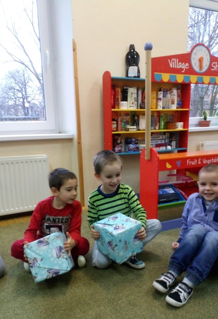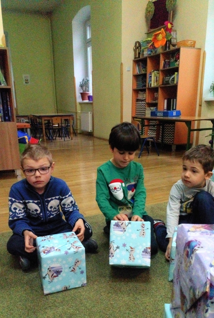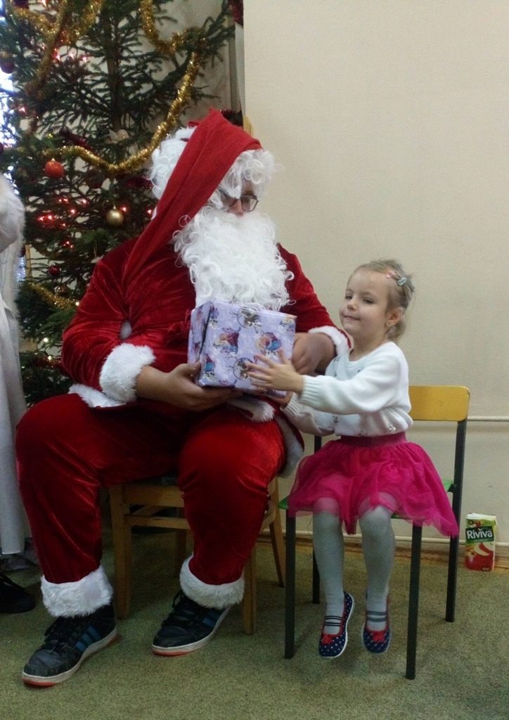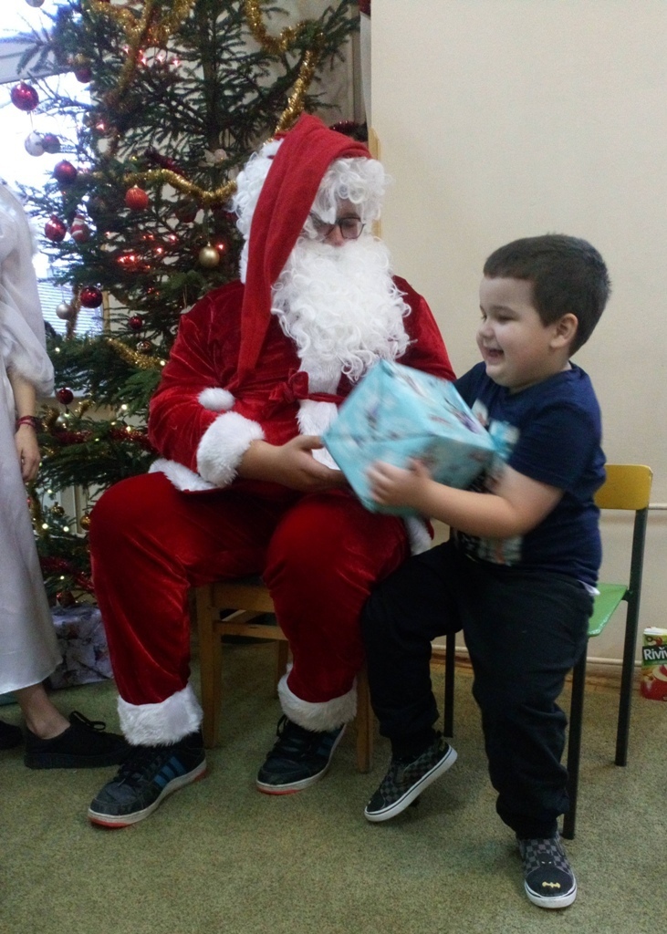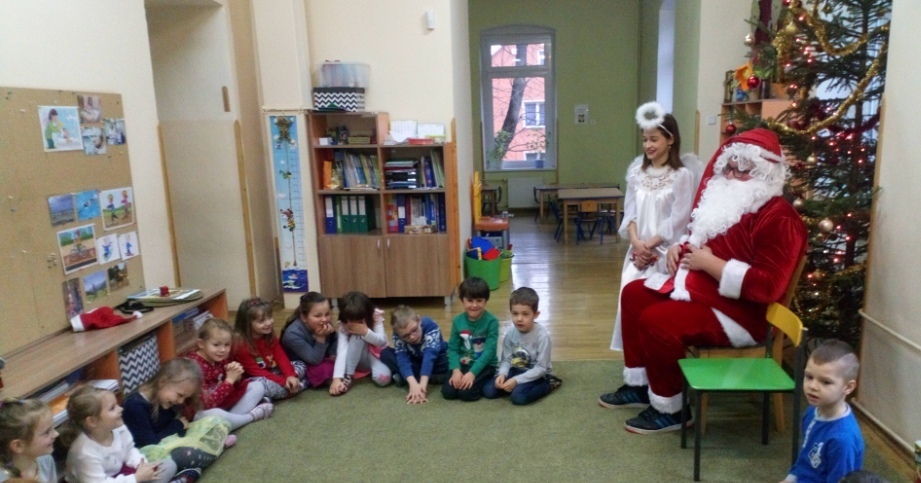 Dziś w przedszkolu mieliśmy wyjazdowego gościa. Odwiedził nas Św. Mikołaj, a towarzyszył mu Aniołek. Mikołaj był bardzo sympatyczny, miło się z nim rozmawiało. Dowiedzieliśmy się, ze bardzo mu smakowy ciasteczka , które zostawiliśmy. Nasz występ też musiał mu się spodobać, bo dostaliśmy po kolejnym prezencie. Pamiętaliśmy oczywiście, żeby podziękować za prezenty te co dostaliśmy w domu i te co w przedszkolu. Wizyta Mikołaja nie trwała zbyt długo, musieliśmy się przecież pożegnać. Przecież na Mikołaja czekają wszystkie dzieci. W tym dniu jest jest to chyba najbardziej zapracowana osoba na świecie.
