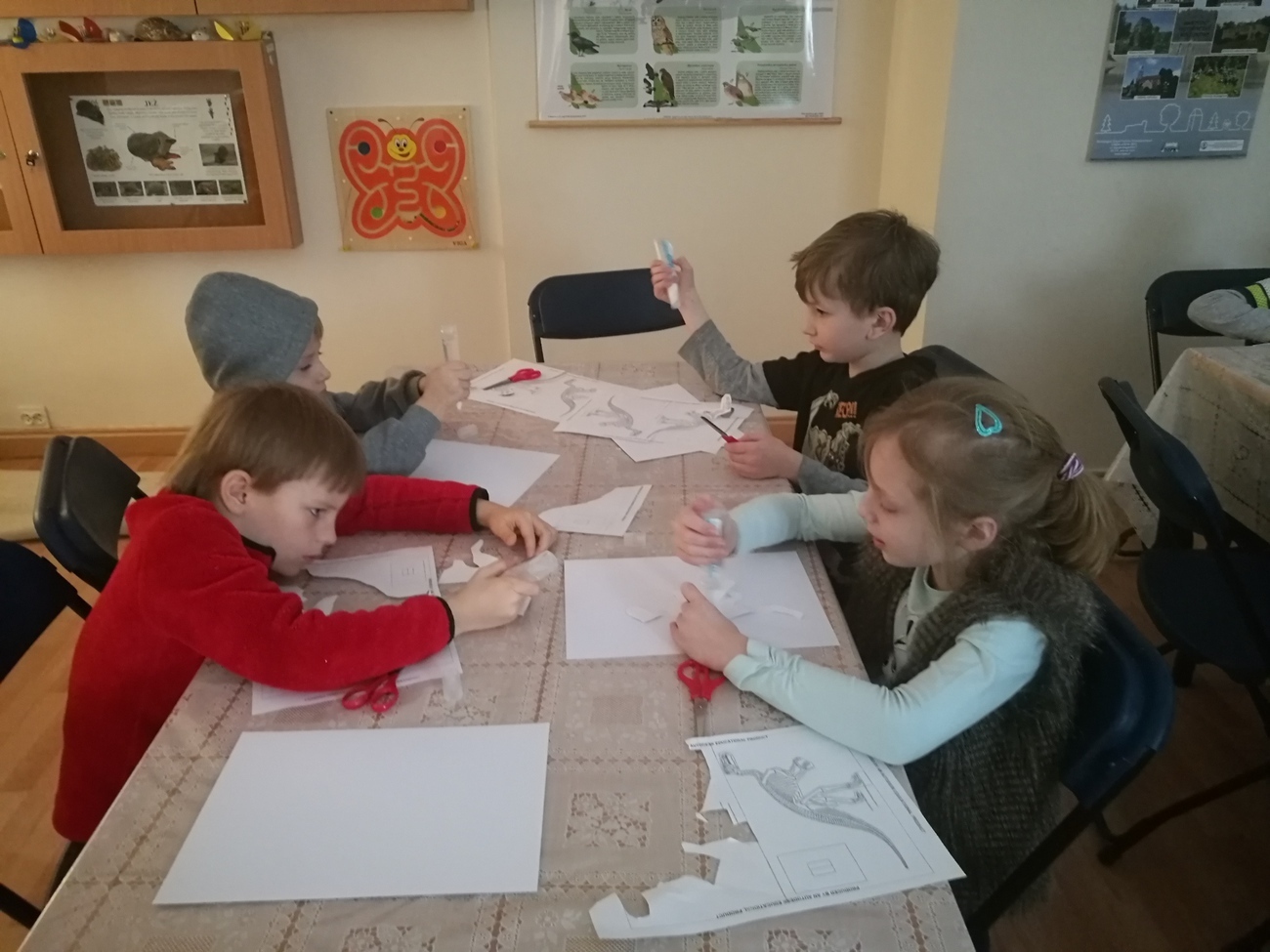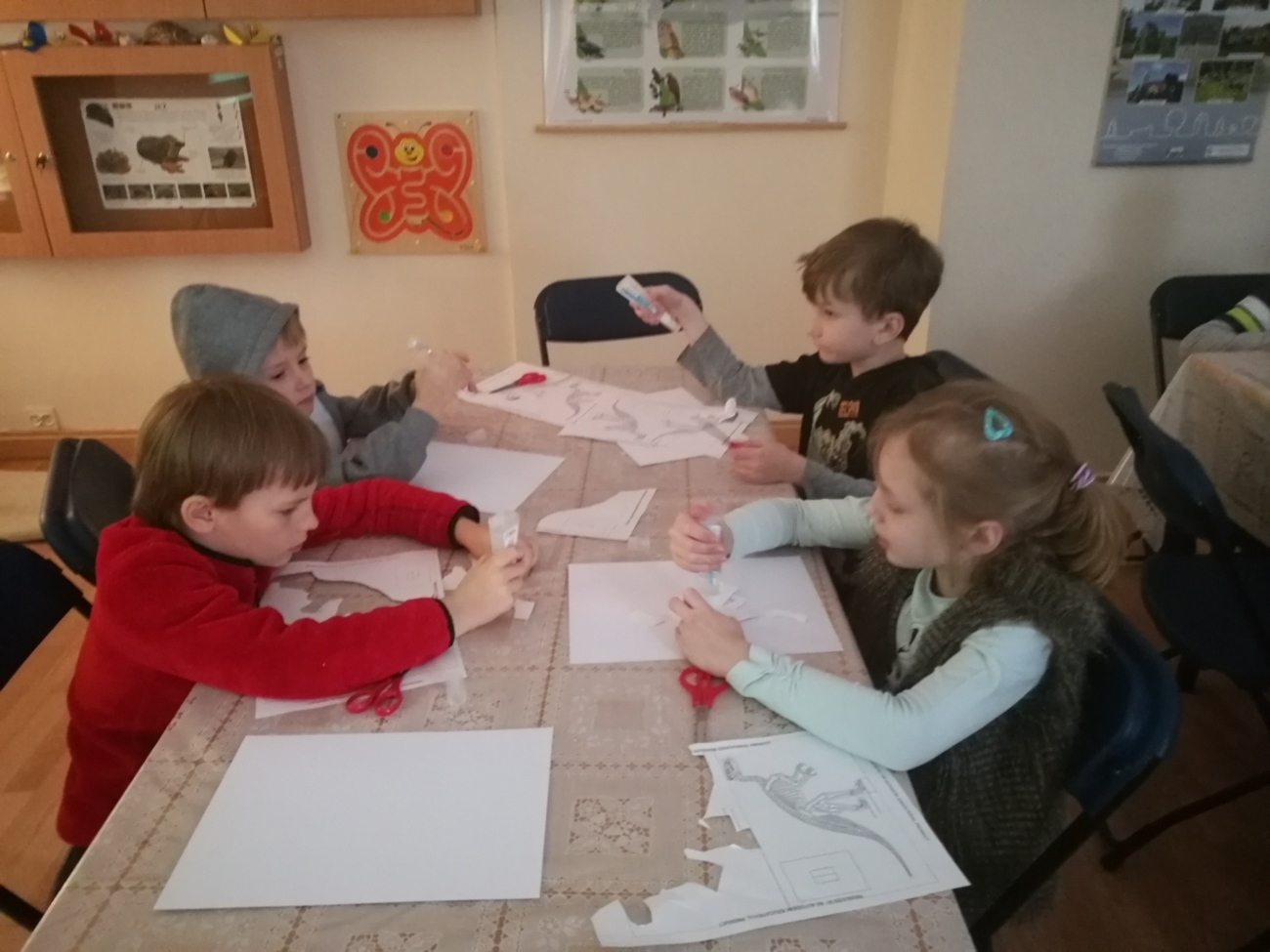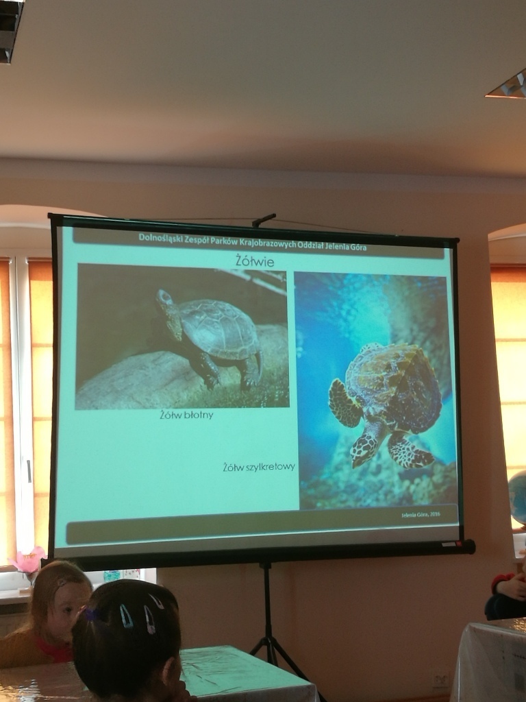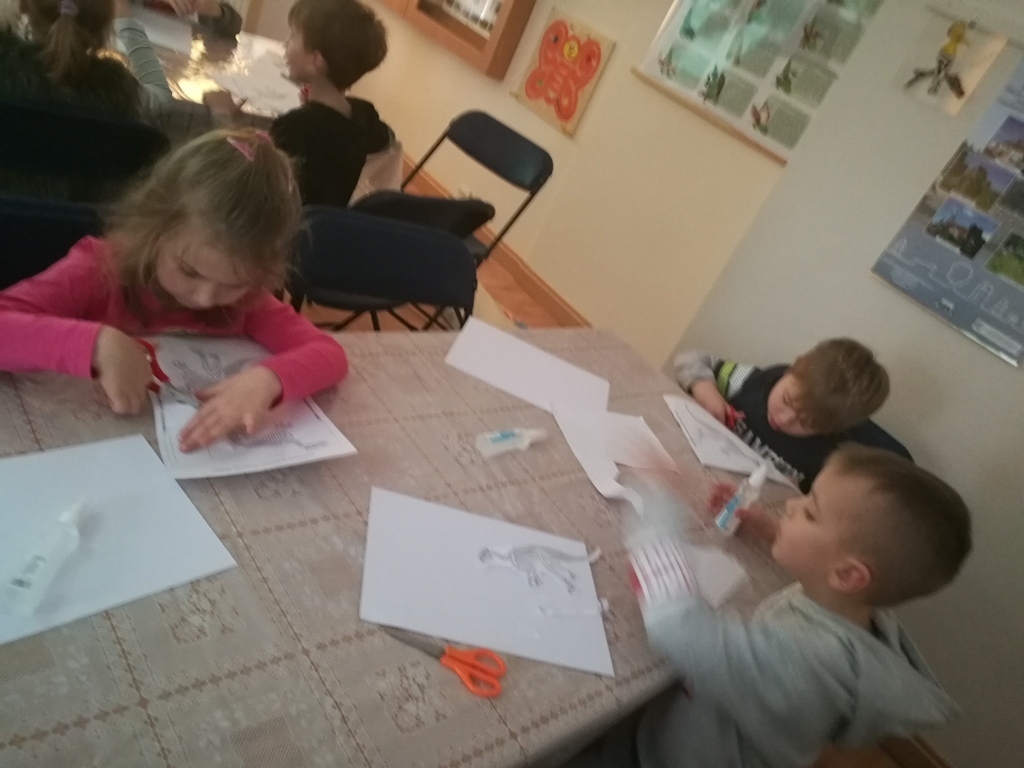 W ostatni piątek dzieci z grupy V brały udział w kolejnych zajęciach w Dolnośląskim Zespole Parków Krajobrazowych. Tematem zajęć były gady i jak przekonywał nas pan Adrian nie takie straszne jak się wydaje. Zajęcia rozpoczęliśmy od omówienia rożnych gatunków żółwi, następnie omówiliśmy: żmije, węże i jaszczurki. Mało kto z nas wiedział jak wiele zdolności mają te małe stworzenia. Gdy skończyliśmy temat gadów żyjących, przenieśliśmy się do tych, które już dawno nie chodzą po świecie. Dinozaury czyli ulubione zwierzęta starszaków, również należą do rodziny gadów i chociaż nikt z ludzi ich nigdy nie spotkał to przedszkolaki je dobrze znają i wiele mogą powiedzieć na ich temat. Na zakończenie zajęć czekała mała niespodzianka. Każdy starszak otrzymał do wykonania model dinozaura. Choć nie było to łatwe zadanie, wszyscy sobie z nim świetnie poradzili. Bardzo się nam te zajęcia podobały i rzeczywiście okazało się, że gad nie taki straszny.