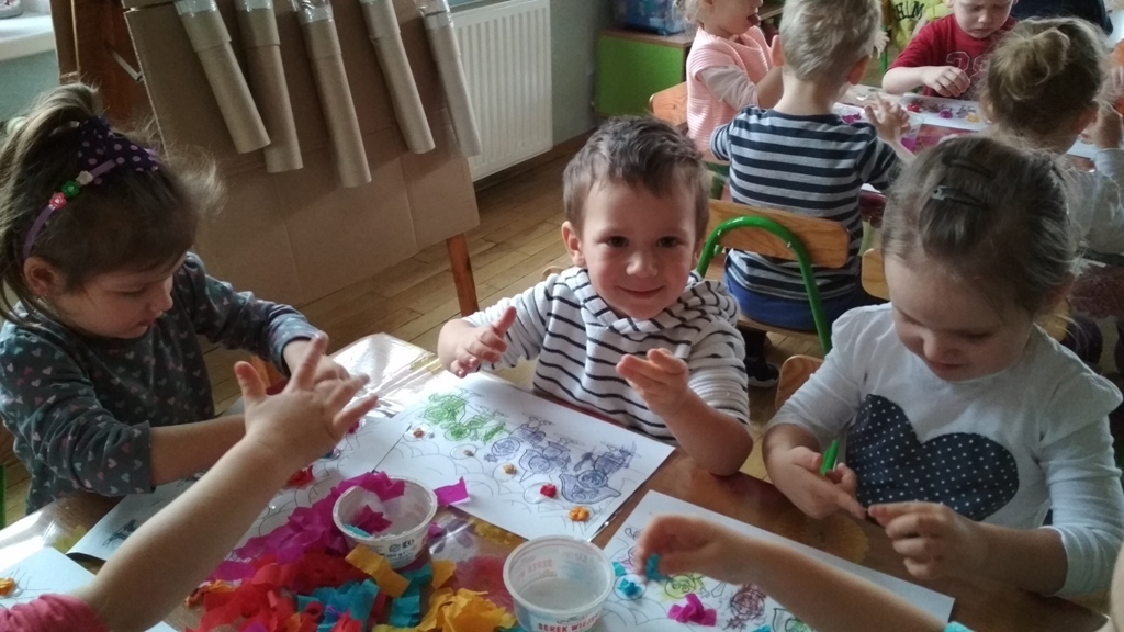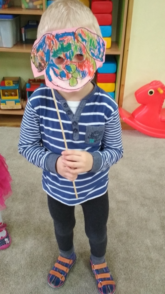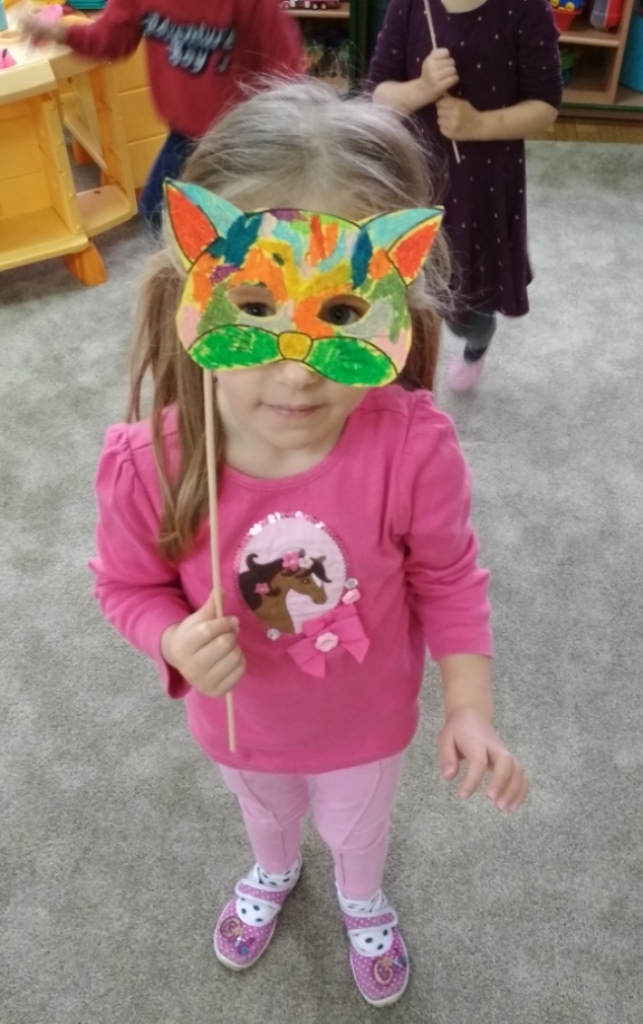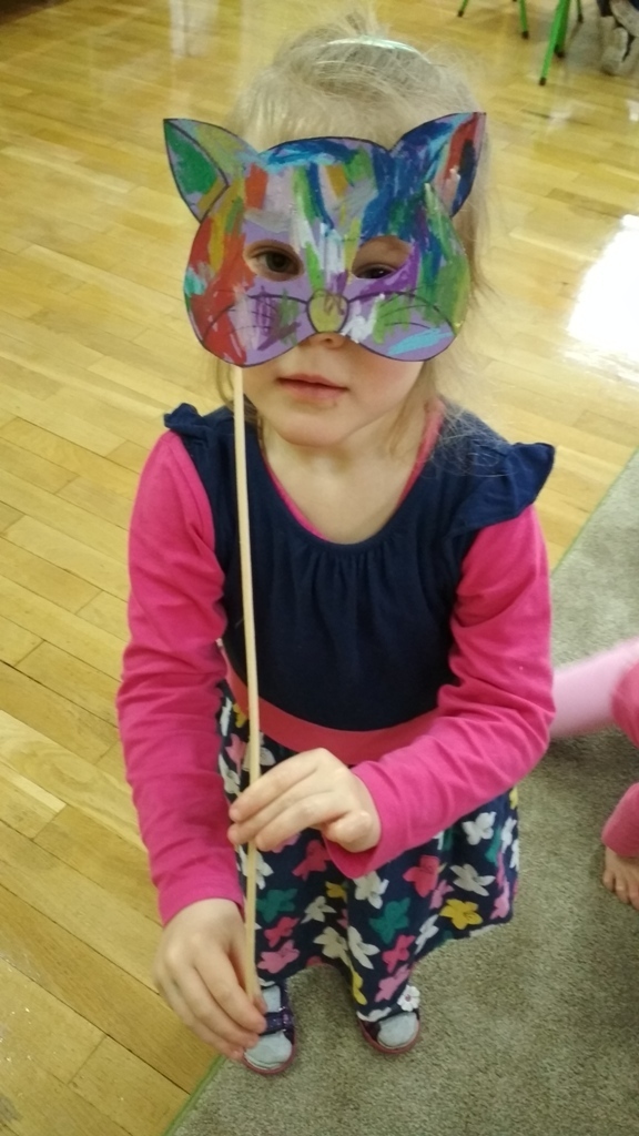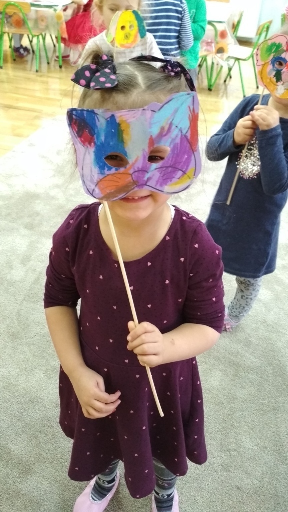 Karnawał trwa, a już jutro odbędzie się tak długo wyczekiwane przez nas bal karnawałowy, na sali balowej. Aby poczuć atmosferę czekającej nas zabawy samodzielnie wykonaliśmy piękne maski, w których wspólnie zatańczymy na dywanie do naszych ulubionych piosenek. To był przedsmak tego co czeka nas jutro...