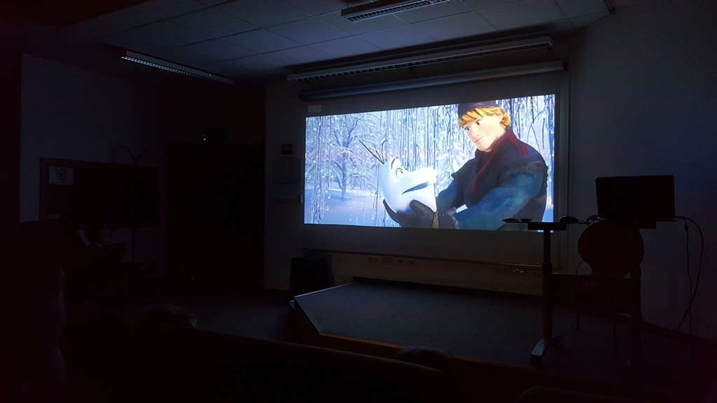 Większość z nas uwielbia bajkę pt. ”Kraina lodu” i oglądała ją już nie raz. Jednak dziś po raz pierwszy udało nam się obejrzeć ją wspólnie na dużym ekranie. Projekcja odbyła się w Książnicy Karkonoskiej w sali kinowej. Zabawa była fantastyczna, bo razem śpiewaliśmy piosenki z filmu, dopingowaliśmy bohaterów bajki w czasie przeżywanych przez nich licznych przygód. A po filmie omawialiśmy ulubione fragmenty, najśmieszniejsze sceny i dyskutowaliśmy o tym która z postaci z bajki jest najfajniejsza i najzabawniejsza.