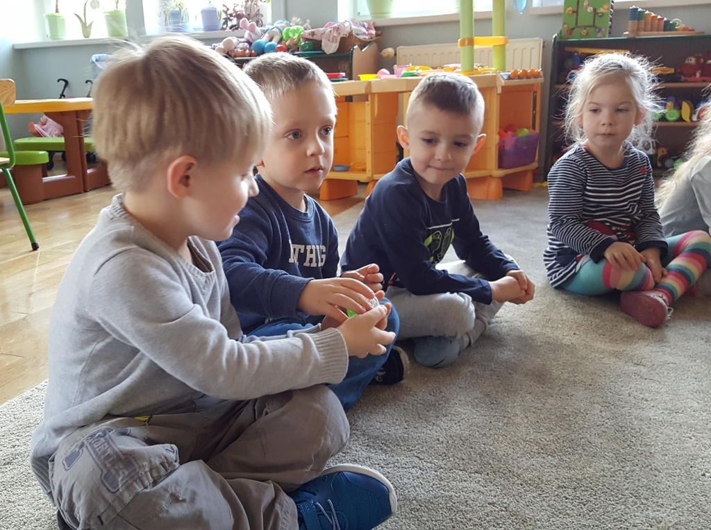 Co innego zbudować sobie wieżę z klocków a co innego robić to z przyjaciółmi. Każdy ma inny pomysł na jej kształt, kolor czy wielkość. Czasem nie sposób dojść do porozumienia. Bywa, że kłócimy się lub ktoś płacze. Niektórzy obrażają się, gdy ktoś w całości zniszczy całą budowle. Wspólna praca i wspólna zabawa to nie takie proste jakby mogło się wydawać. Przedszkolna pani psycholog postanowiła pomóc nam w tej sprawie. Wzięliśmy udział w pierwszych zajęciach poświęconych sztuce wspólnej zabawy, sposobom dogadywania się w spornych kwestiach i skutecznym realizowaniu postawionych przed nami zadań.