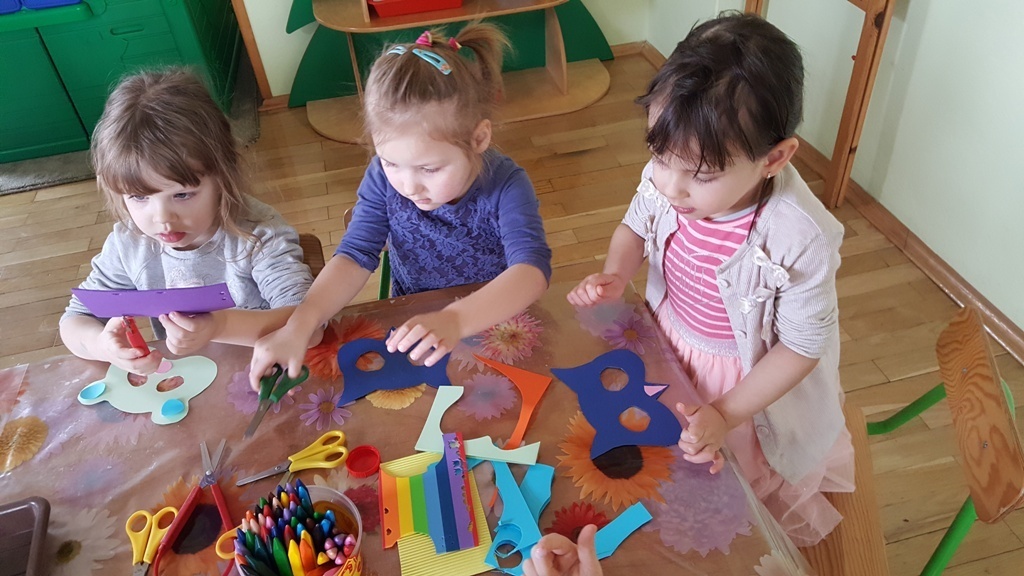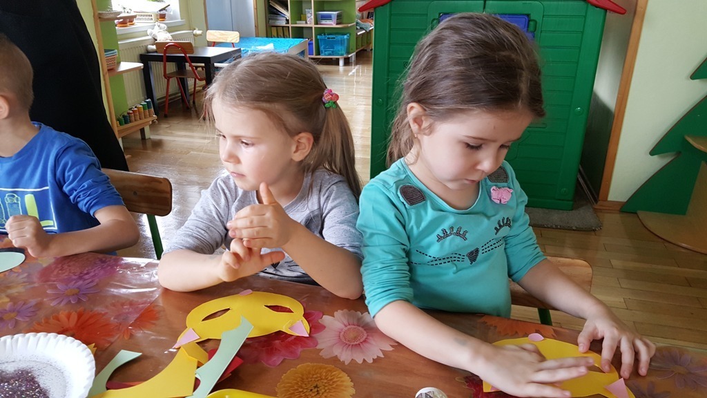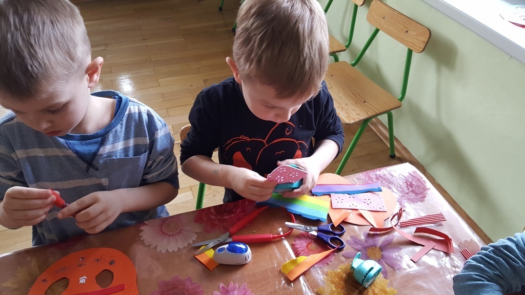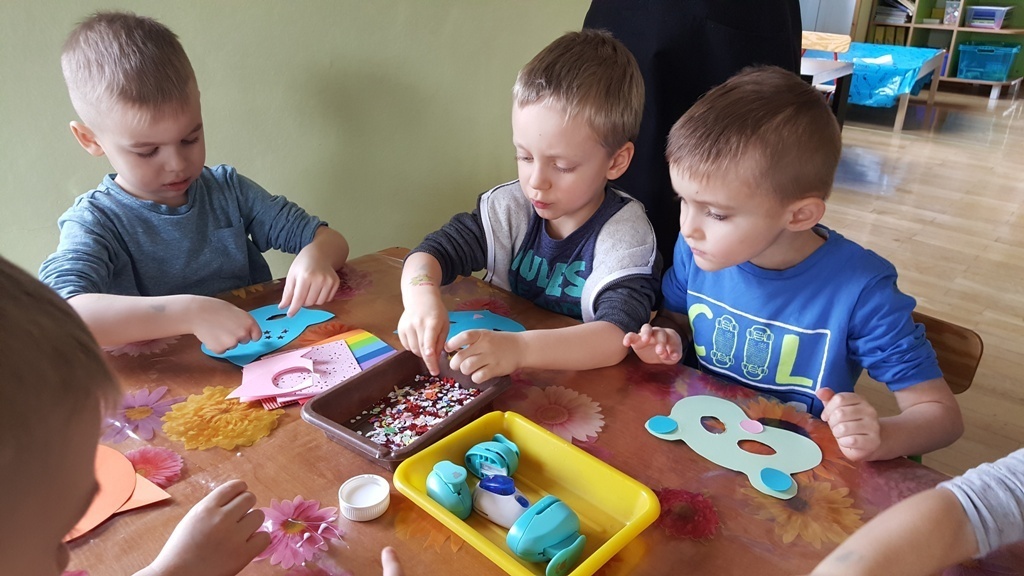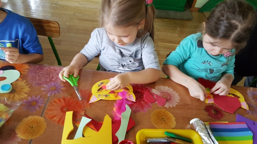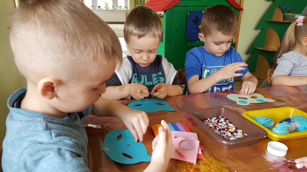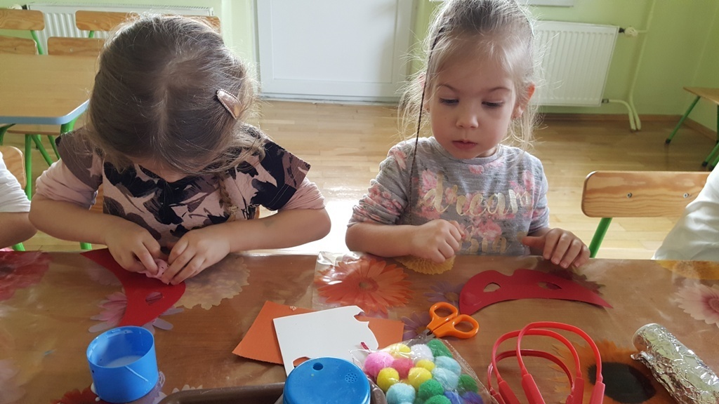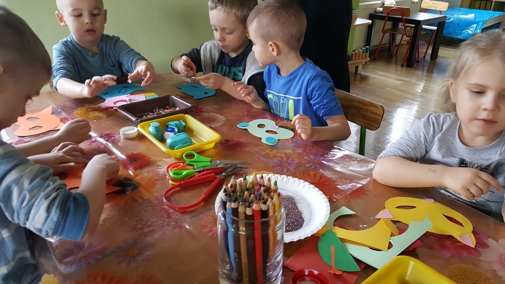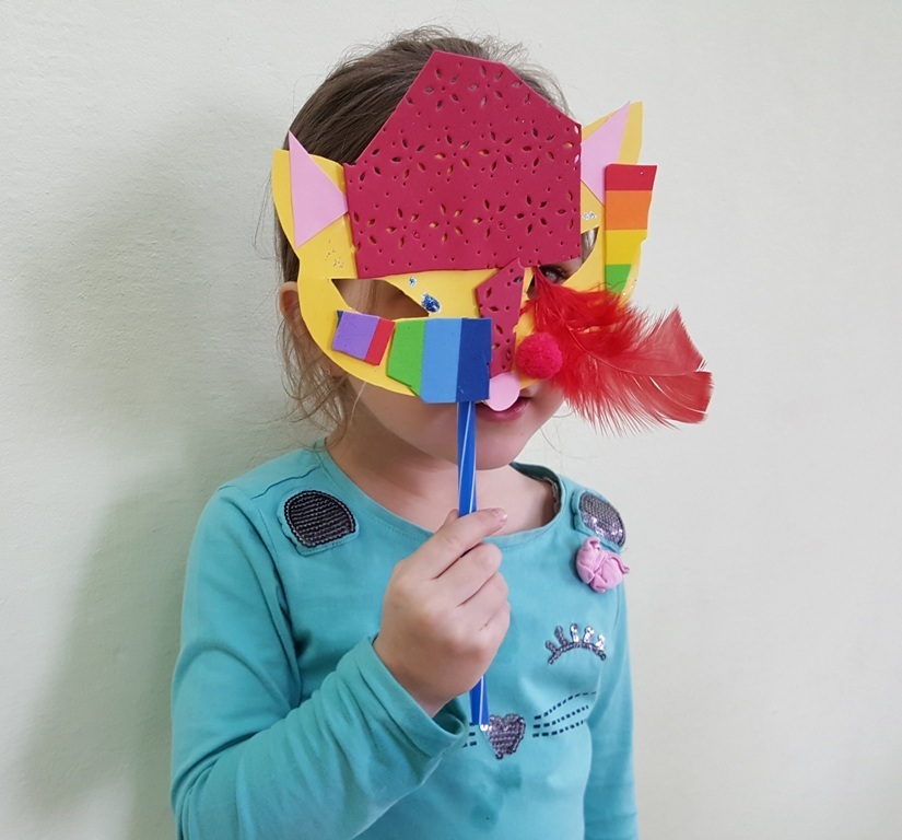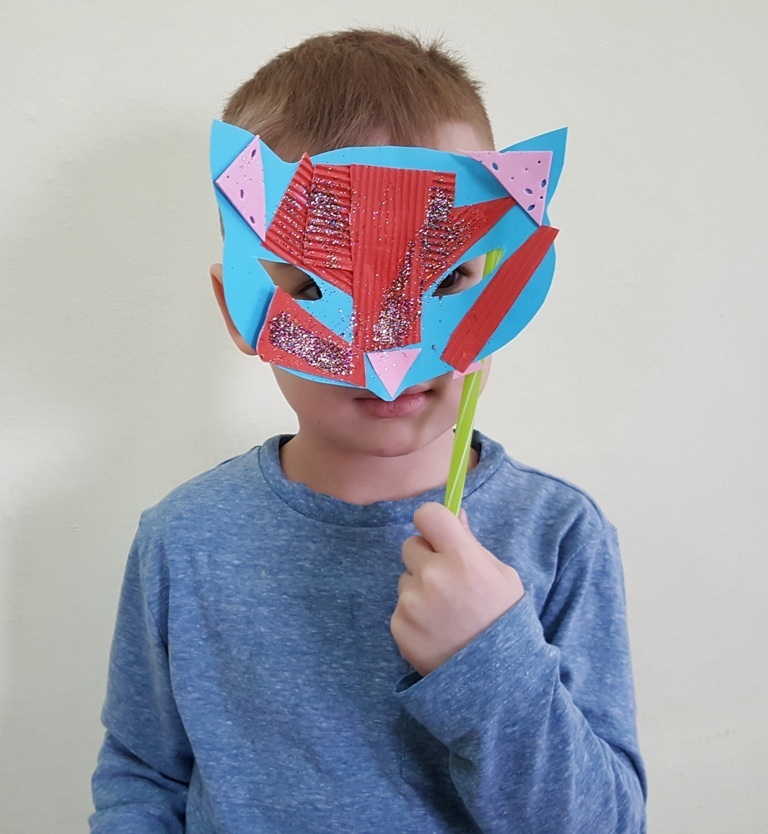Z wykorzystaniem dostępnych w przedszkolu materiałów plastycznych dzięki pomocy naszej Pani wykonaliśmy niezwykle i fantazyjne maski. Nie były to maski zwykłe, codzienne lecz karnawałowe - upstrzone błyszczącym rekinami, piórami, brokatem i przycięte w fantazyjne wzory.