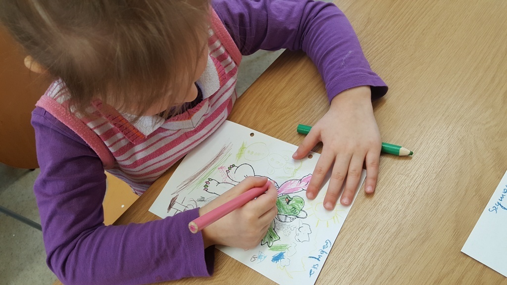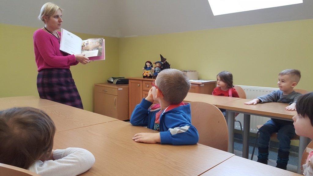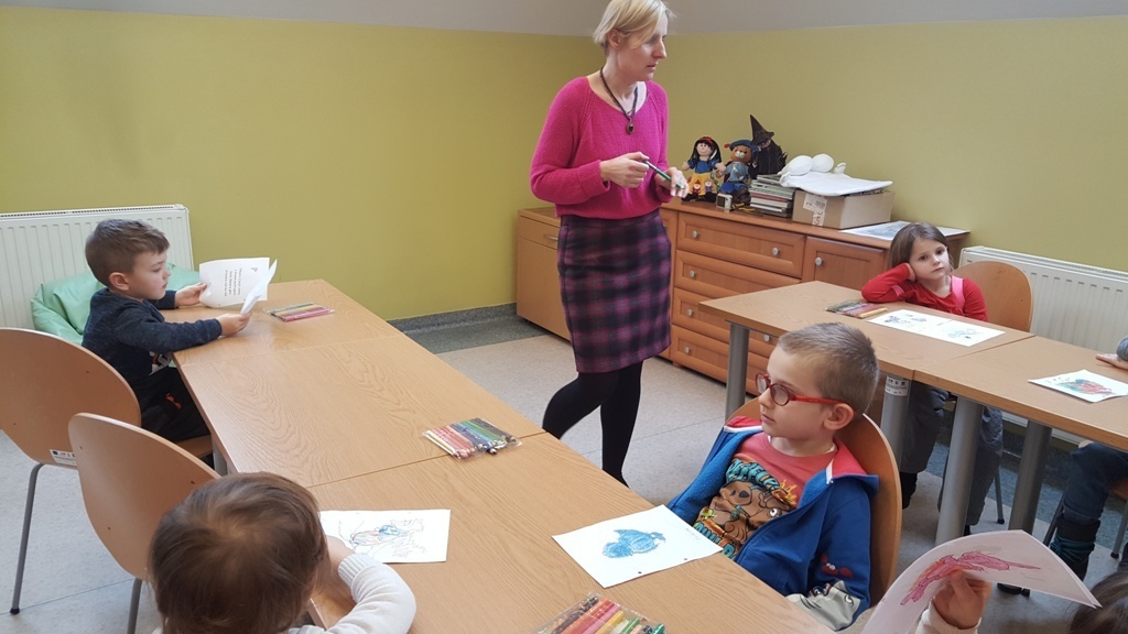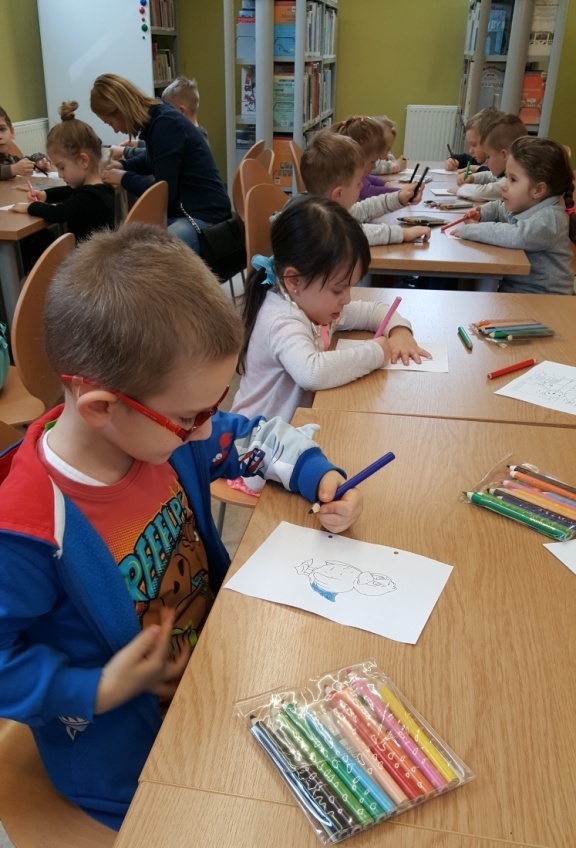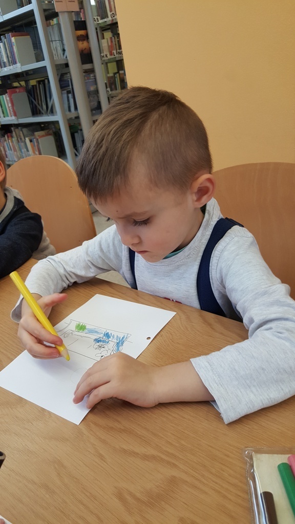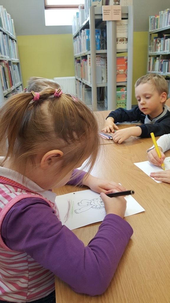Niby zwykła książka, niby każdy wie co to... Aż tu nagle okazuje się, że ma grzbiet, obwolutę, akapit w środku, jakieś strony, okładki, ilustracje-tyle nowych słów i pojęć. O wszystkich tych sprawach dowiedzieliśmy się podczas wizyty w bibliotece od pani bibliotekarki. Uzbrojeni w tę wiedzę pokusiliśmy się o wykonanie własnej książeczki. Wspólnymi siłami stworzyliśmy książkę, której bohaterami zostały postaci z naszych ulubionych bajek takie jak Miś Uszatek, Brzydkie kaczątko czy Królowa śniegu.