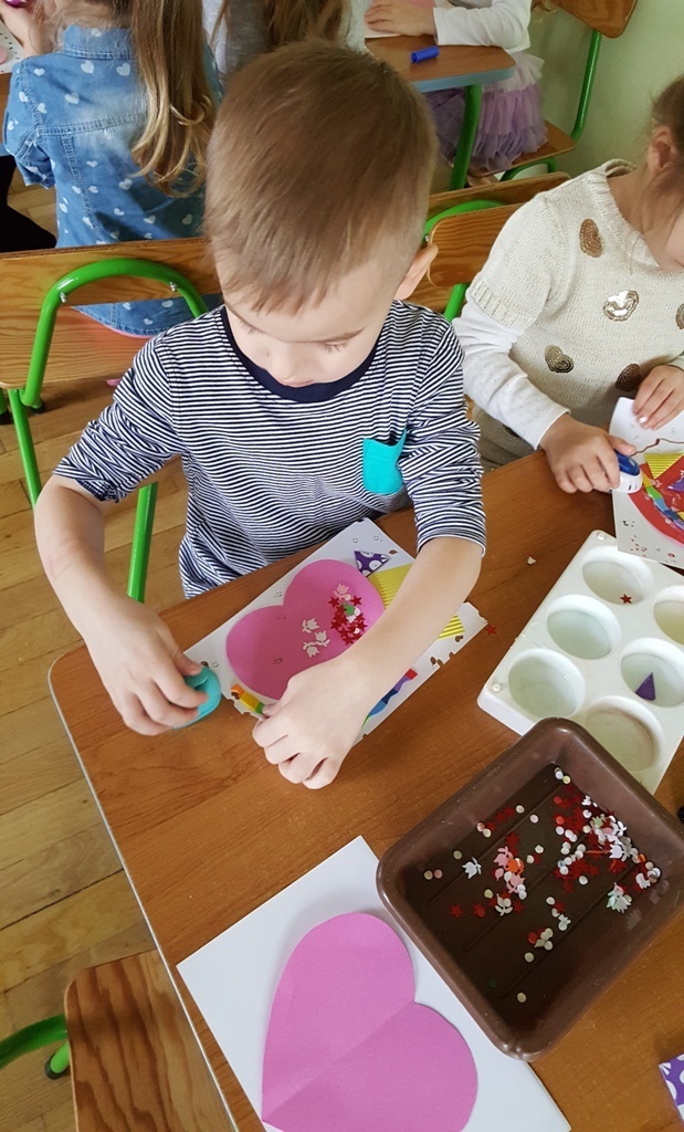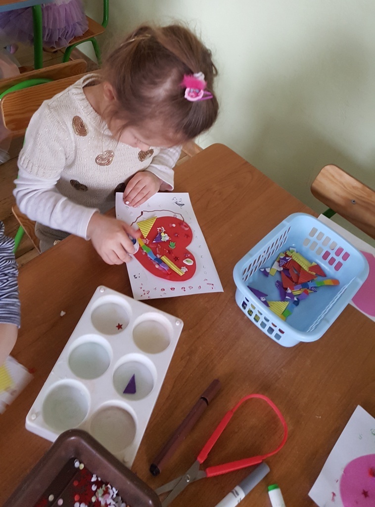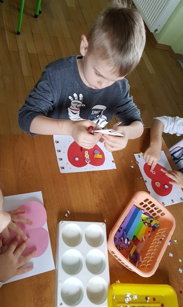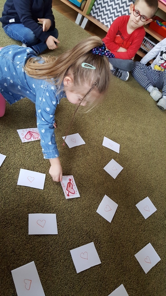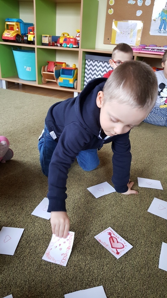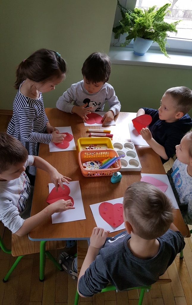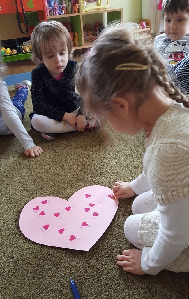 Walentynki to prawdziwy czerwony dzień miłości i przyjaźni. Dziś wzięliśmy udział w zabawach walentynkowych. Mieliśmy wykonać szereg zadań m.in. szukaliśmy drugiej połówki serca, rozwiązywaliśmy zagadki dotyczące bohaterów, bajek, bawiliśmy się przy muzyce. Nie zabrakło również zaduszkowych kolorowanek oraz pozytywnych emocji. Na koniec każdy z nas otrzymał walentynkę: pysznego lizaka od naszej pani. Był to dzień pełen wrażeń i dobrej zabawy.