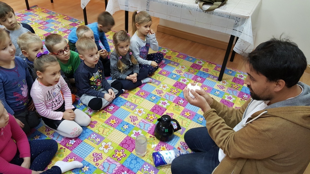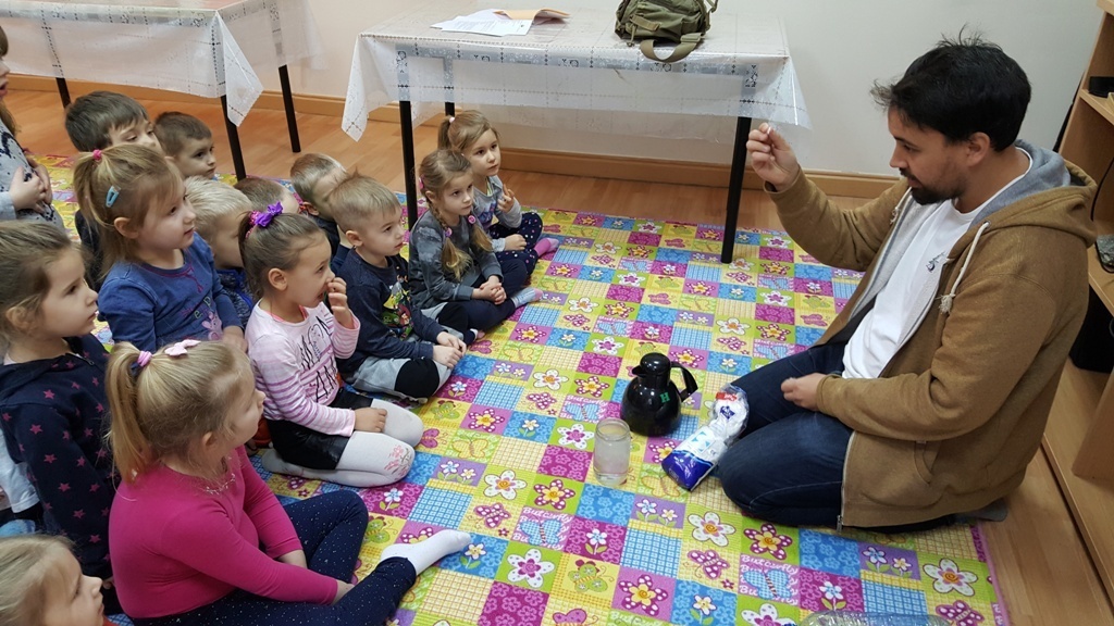 Cumulusy, stratusy, cirrusy, to nie straszne magiczne zaklęcia lecz nazwy chmur. Czasem cieszą oko, czasem zwiastują burzę a czasem wręcz przeciwnie - dobrą pogodę. Znając ich rodzaje można zaplanować wycieczkę nie narażając się na zmoknięcie. Dziś pan Wiktor, który jest meteorologiem i wie wszystko o chmurach, zna ich nazwy i zwyczaje, podzielił się z nami swoją wiedzą i wykonaliśmy wspólnie doświadczenie. Okazuje się, że chmurę można zrobić nawet w domu, co więcej większość naszych mam robi to codziennie, gotując dla nas obiad. Bo jest to nic innego jak woda, która zmienia stan skupienia z ciekłego na lotny.