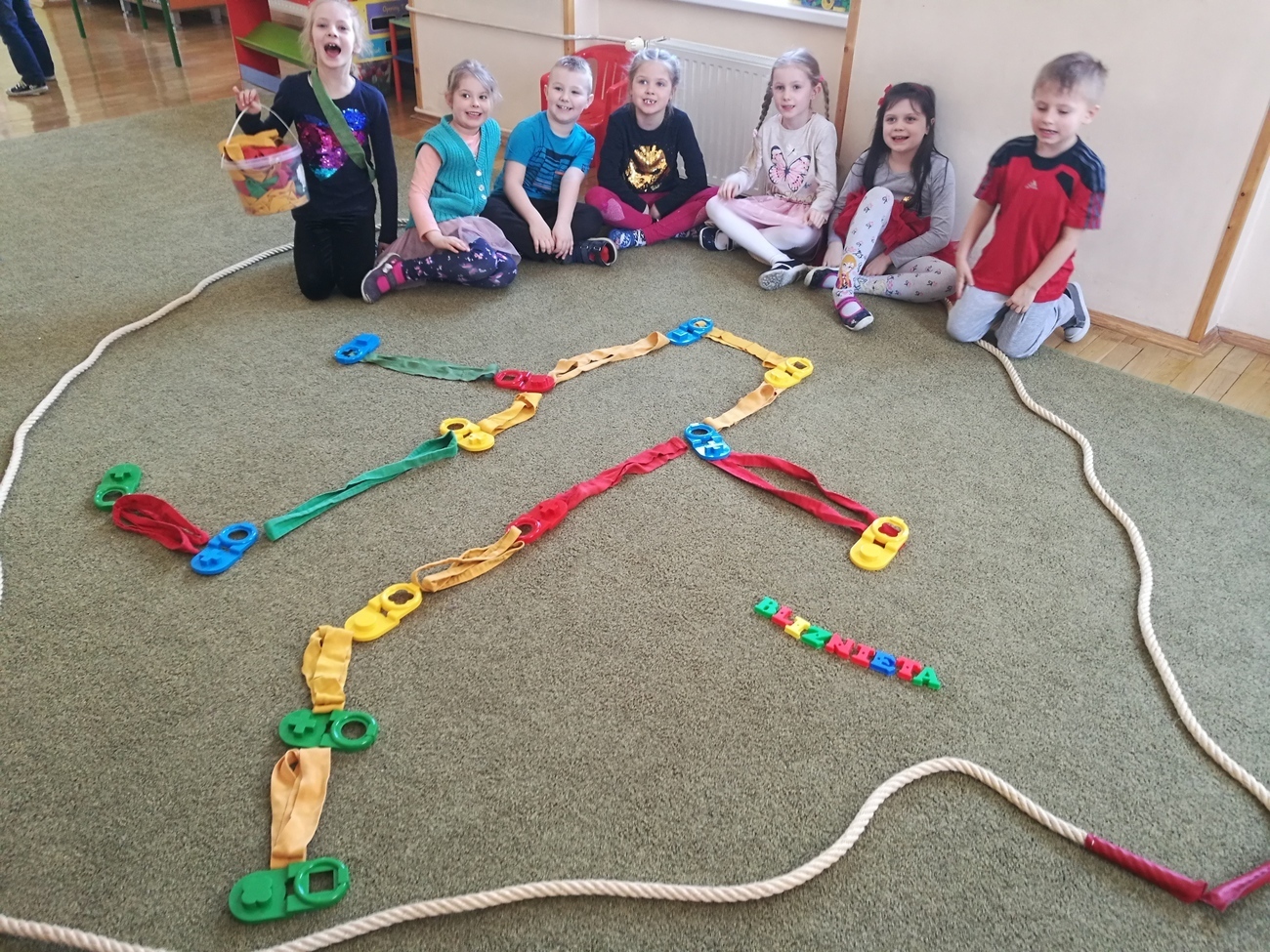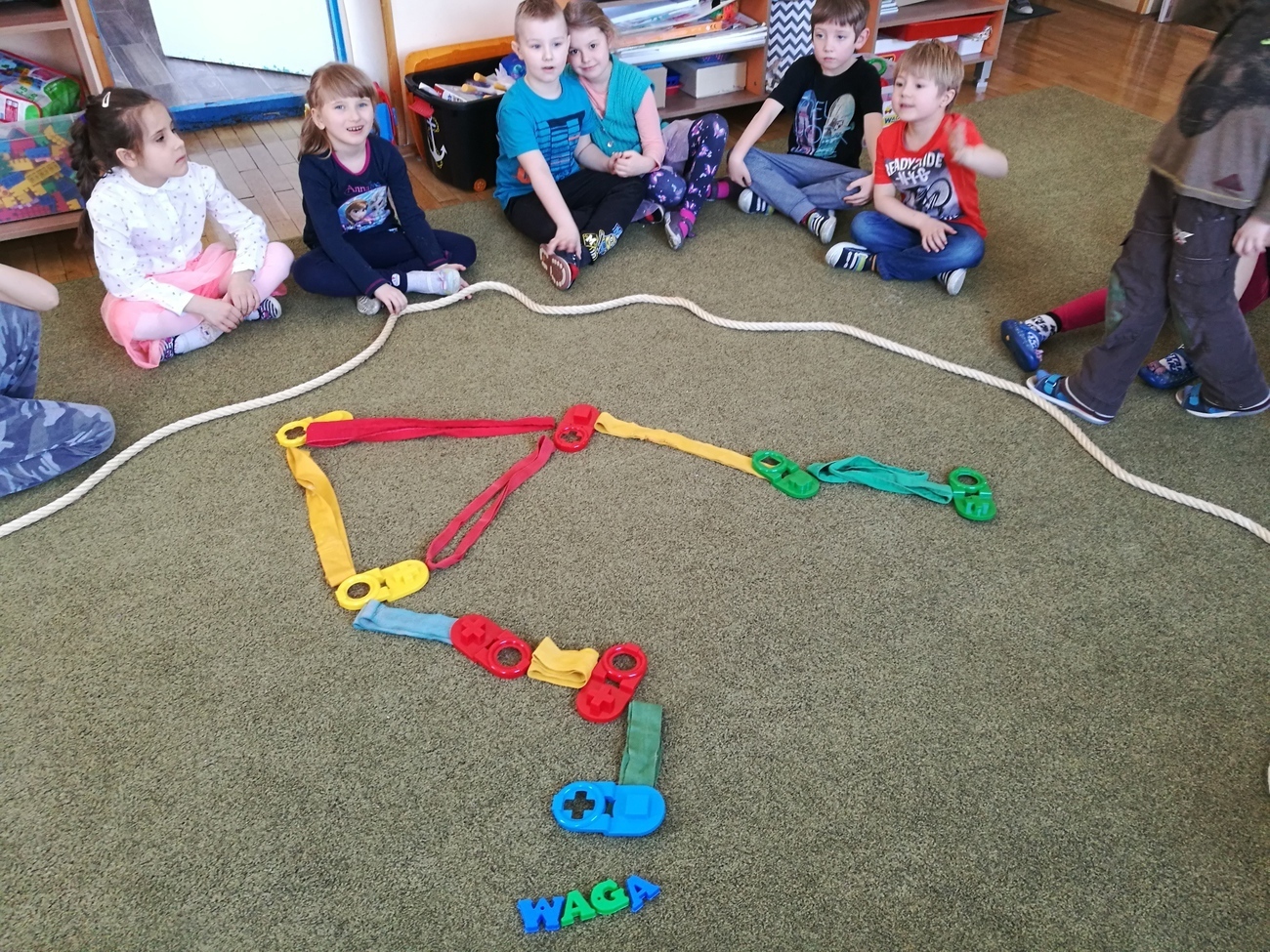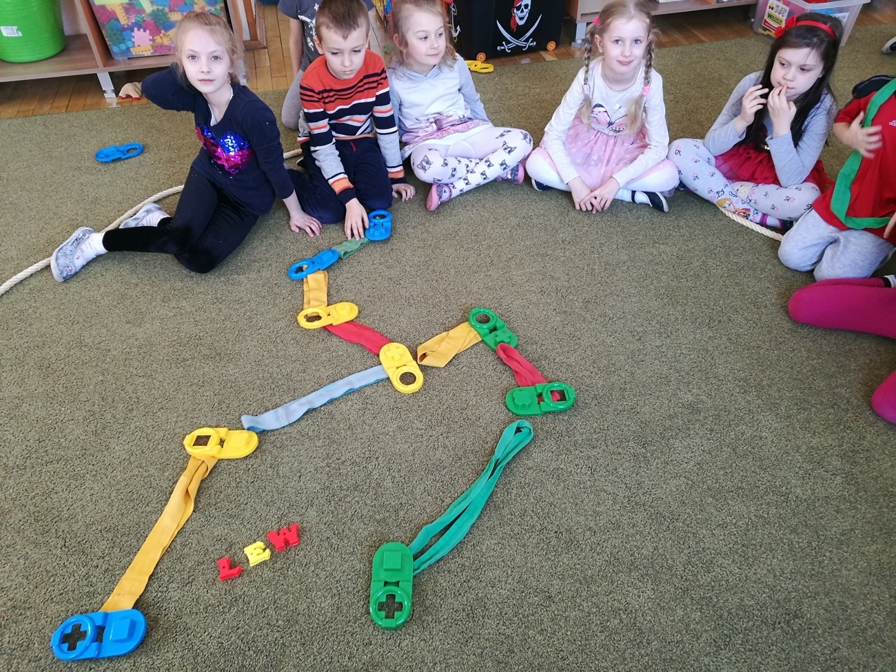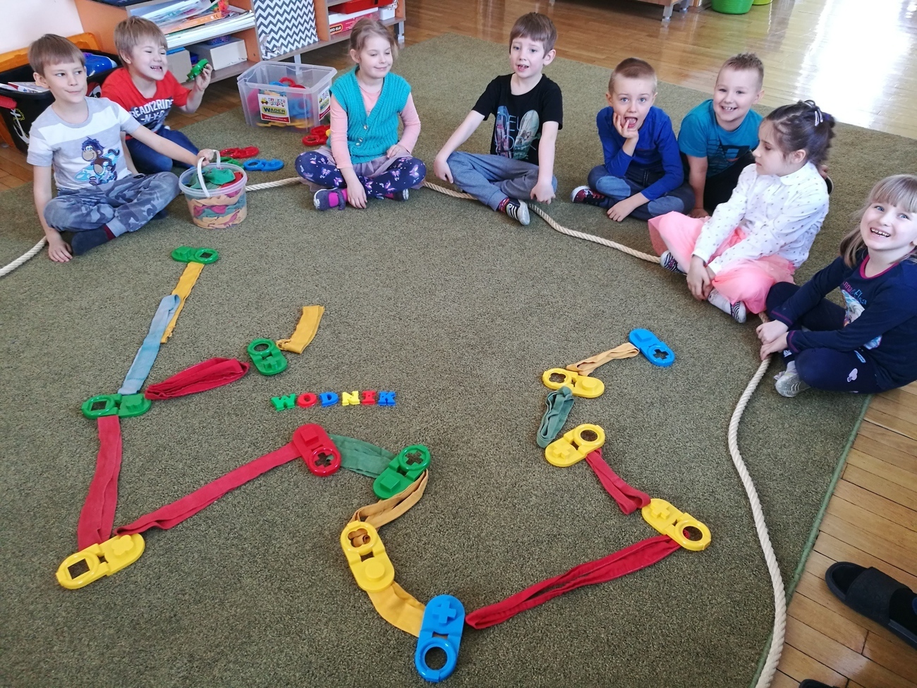 W naszej grupie obchodziliśmy Dzień Astrologii. Zajęcia rozpoczęliśmy na wyjaśnieniu tego słowa. Wiemy już, że astrologia to pseudonauka polegająca na próbach przewidywania przyszłości na podstawie ciał niebieskich. Gdy wyjaśniliśmy już na czym to polega i czym są układane horoskopy, przeszliśmy do ciekawszego tematu, do ciał niebieskich ułożonych w rożnych konstelacjach tzw. znakach zodiaku. Byk, Baran, Waga, Panna, Rak, to tylko niektóre z nich. Dzieci chętnie oglądały jak wyglądają te znaki ułożone w zbiory gwiazd na naszym niebie. Postanowiliśmy, że odwzorujemy wszystkie gwiezdne znaki za pomocą klocków i szarf. Było to bardzo trudne zadanie, gdyż niektóre konstelacje np. Strzelec, czy Koziorożec są skomplikowane, ale starszaki i z tym zadaniem sobie świetnie poradziły. Na załączonych zdjęciach można zobaczyć nasze dokonania.