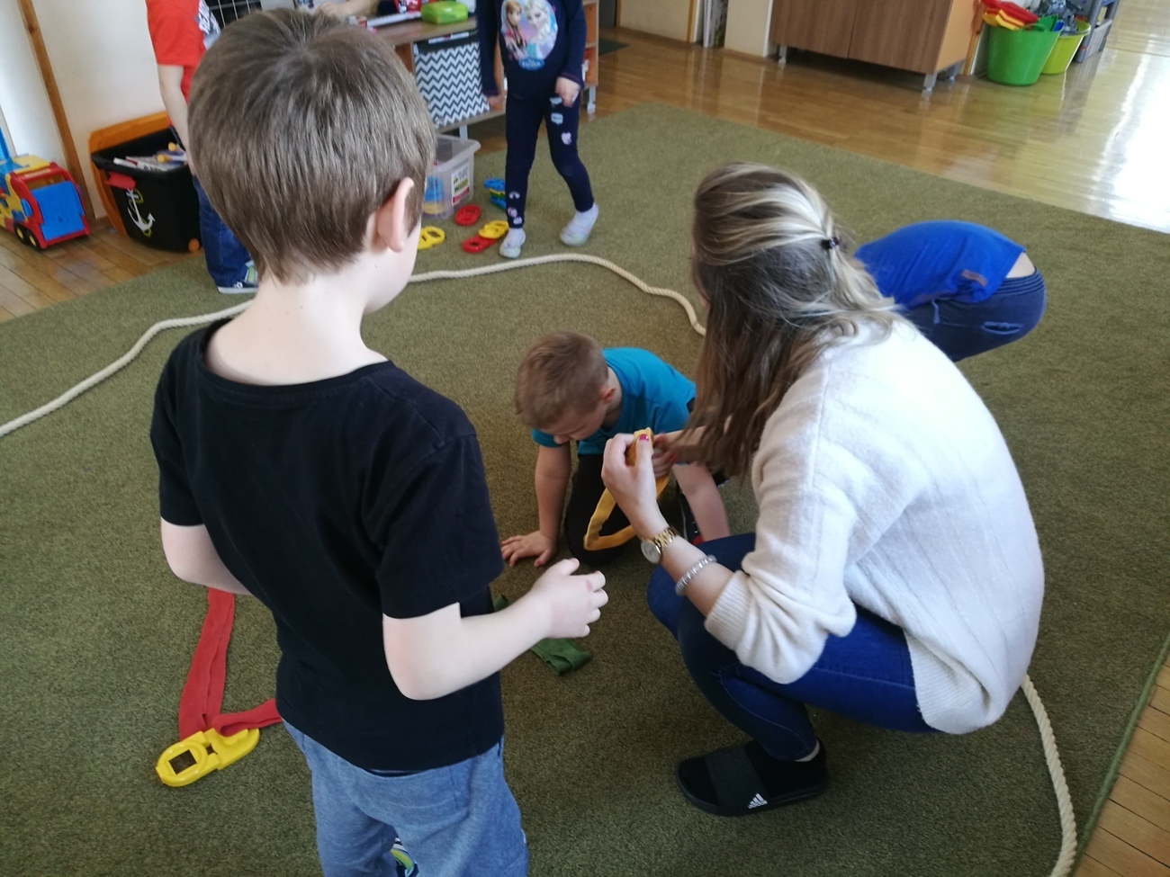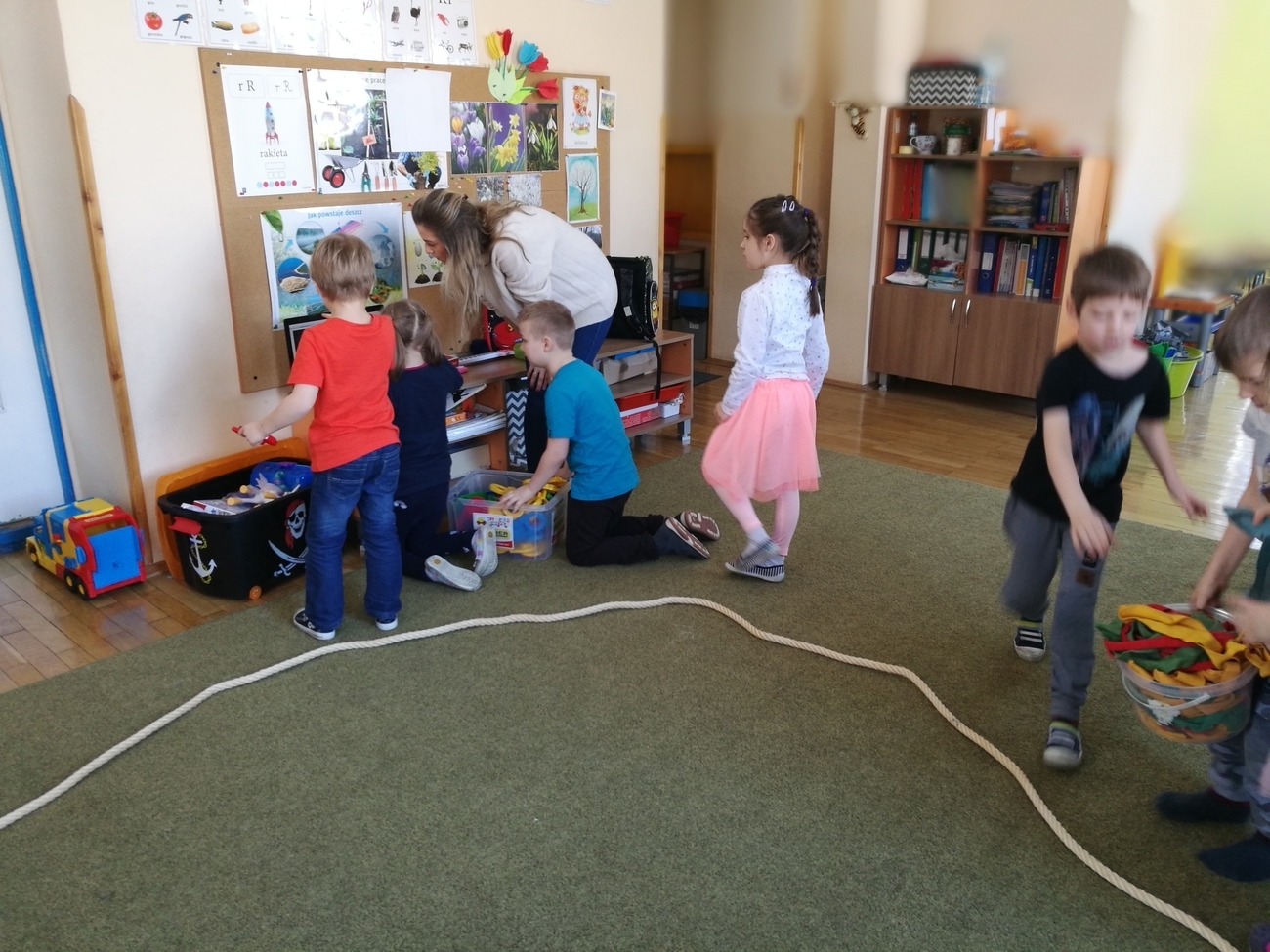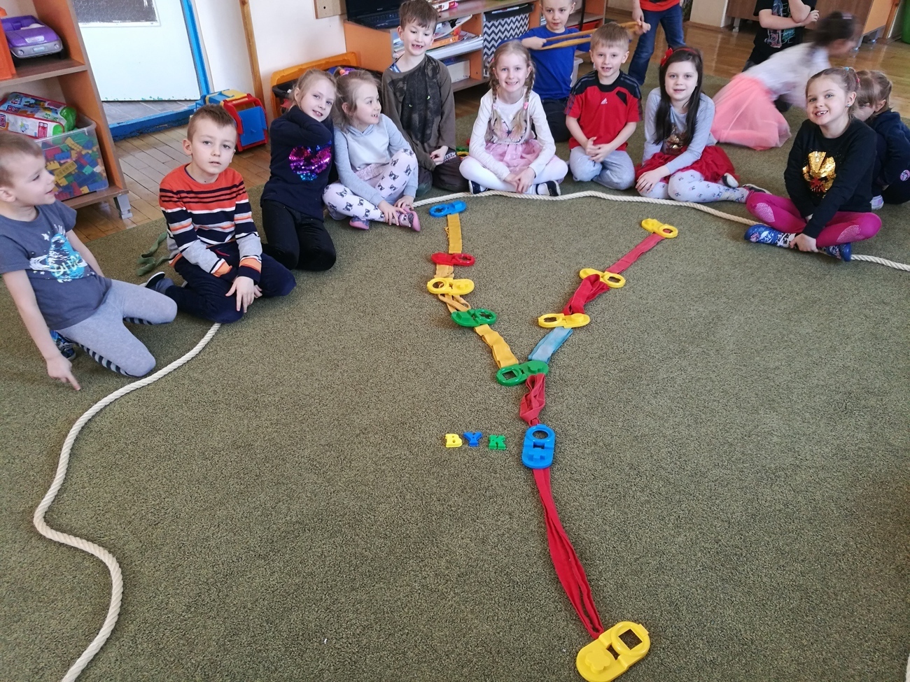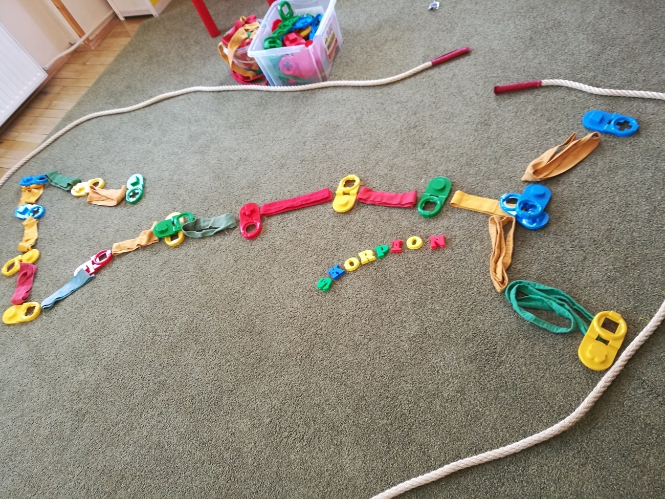 W naszej grupie obchodziliśmy Dzień Astrologii. Zajęcia rozpoczęliśmy na wyjaśnieniu tego słowa. Wiemy już, że astrologia to pseudonauka polegająca na próbach przewidywania przyszłości na podstawie ciał niebieskich. Gdy wyjaśniliśmy już na czym to polega i czym są układane horoskopy, przeszliśmy do ciekawszego tematu, do ciał niebieskich ułożonych w rożnych konstelacjach tzw. znakach zodiaku. Byk, Baran, Waga, Panna, Rak, to tylko niektóre z nich. Dzieci chętnie oglądały jak wyglądają te znaki ułożone w zbiory gwiazd na naszym niebie. Postanowiliśmy, że odwzorujemy wszystkie gwiezdne znaki za pomocą klocków i szarf. Było to bardzo trudne zadanie, gdyż niektóre konstelacje np. Strzelec, czy Koziorożec są skomplikowane, ale starszaki i z tym zadaniem sobie świetnie poradziły. Na załączonych zdjęciach można zobaczyć nasze dokonania.