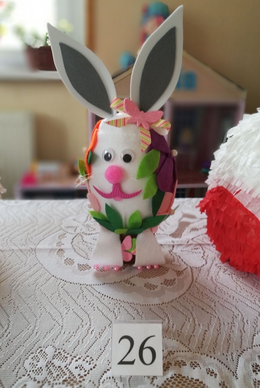 Wszyscy uczestnicy wykazali się ogromną kreatywnością - tuptusiowe pisanaki przybrały przeróżne formy, rozmiary oraz kolory. Każdy Konkursowicz został nagrodzony dyplomem oraz książką edukacyjną. Wzięcie udziału w konkursie miało na celu kultywowanie tradycji związanych ze Świętami Wielkanocnymi, pobudzenie aktywności twórczej wśród dzieci, radość ze wspólnego tworzenia oraz prezentację zdolności dziecięcej.