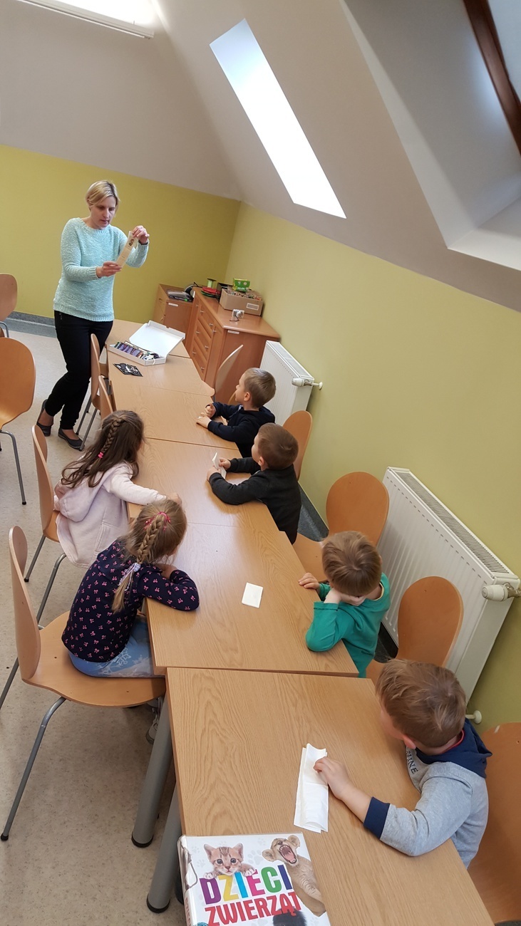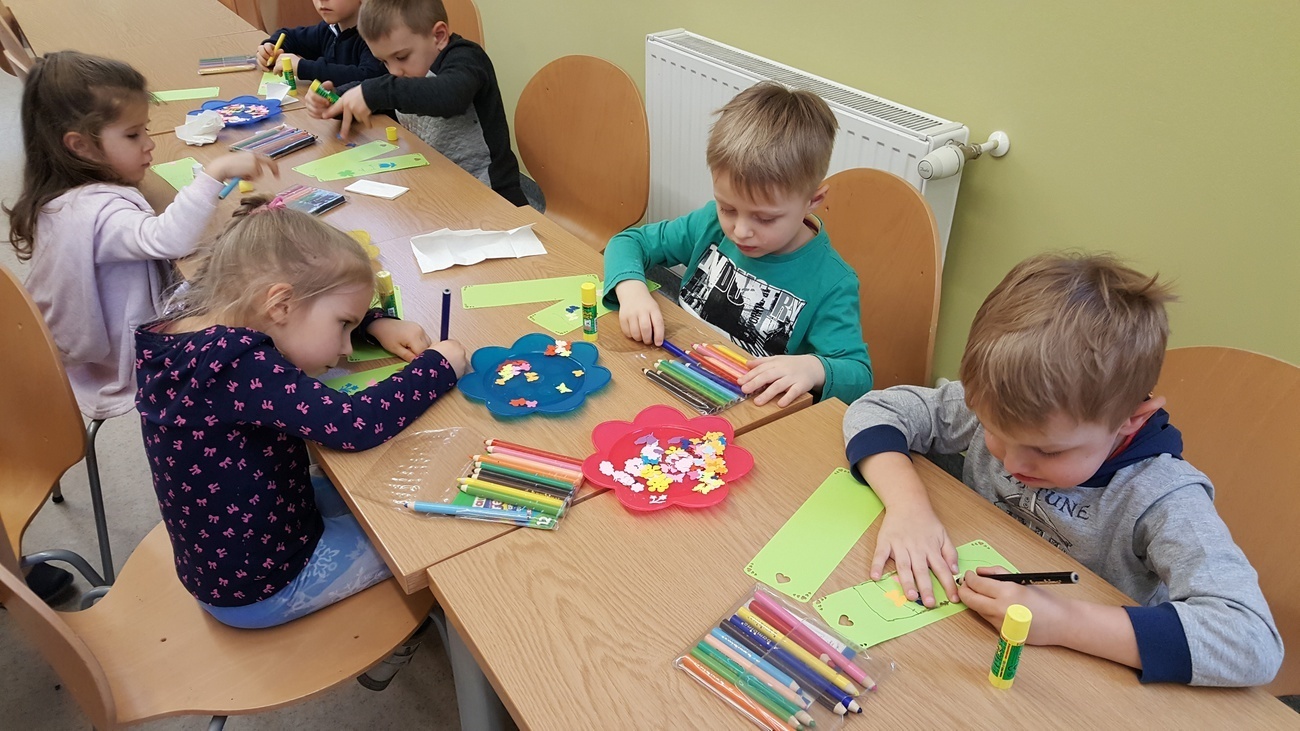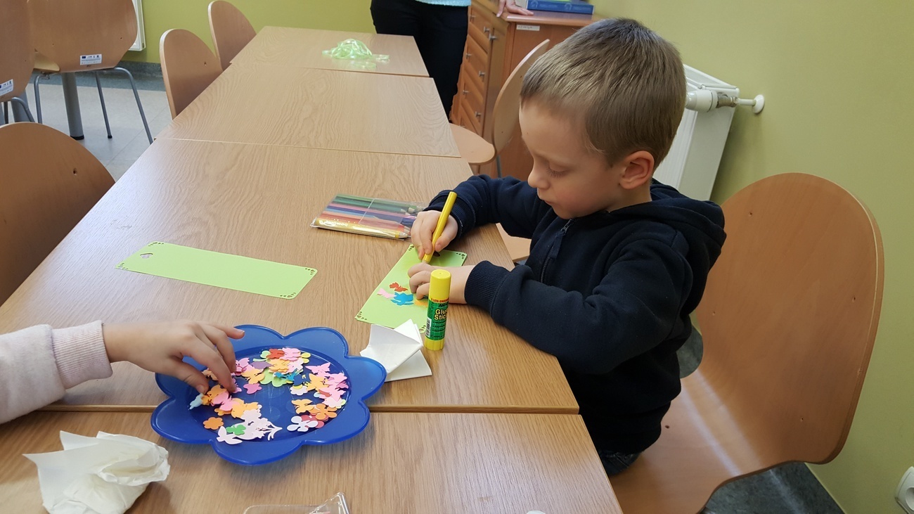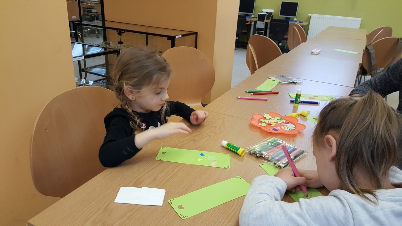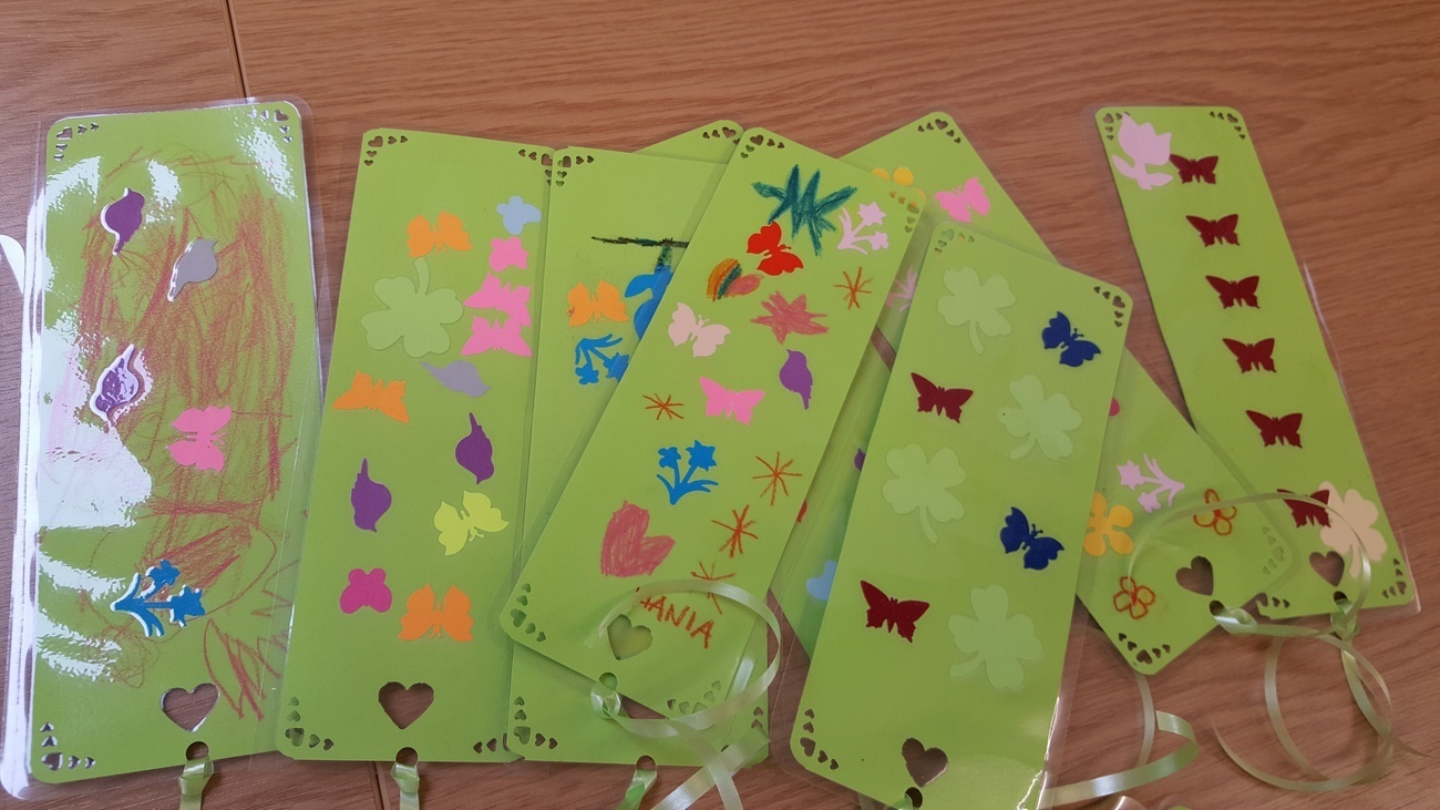 Gdy coś niespodzianie przerwie czytanie książki, wcale nie trzeba pamiętać, na której stronie przestało się czytać. Wystarczy mieć zakładkę. Ale skąd wziąć taką zakładkę... Dla nas to nie problem! Potrafimy zrobić ją sami. Wystarczy kawałek kolorowego kartonu, kredki, klej, sznurek i kolorowe pisaki. Dziś wspólnie z panią bibliotekarką każdy z nas wykonał taką zakładkę jako prezent dla swojej mamy.
