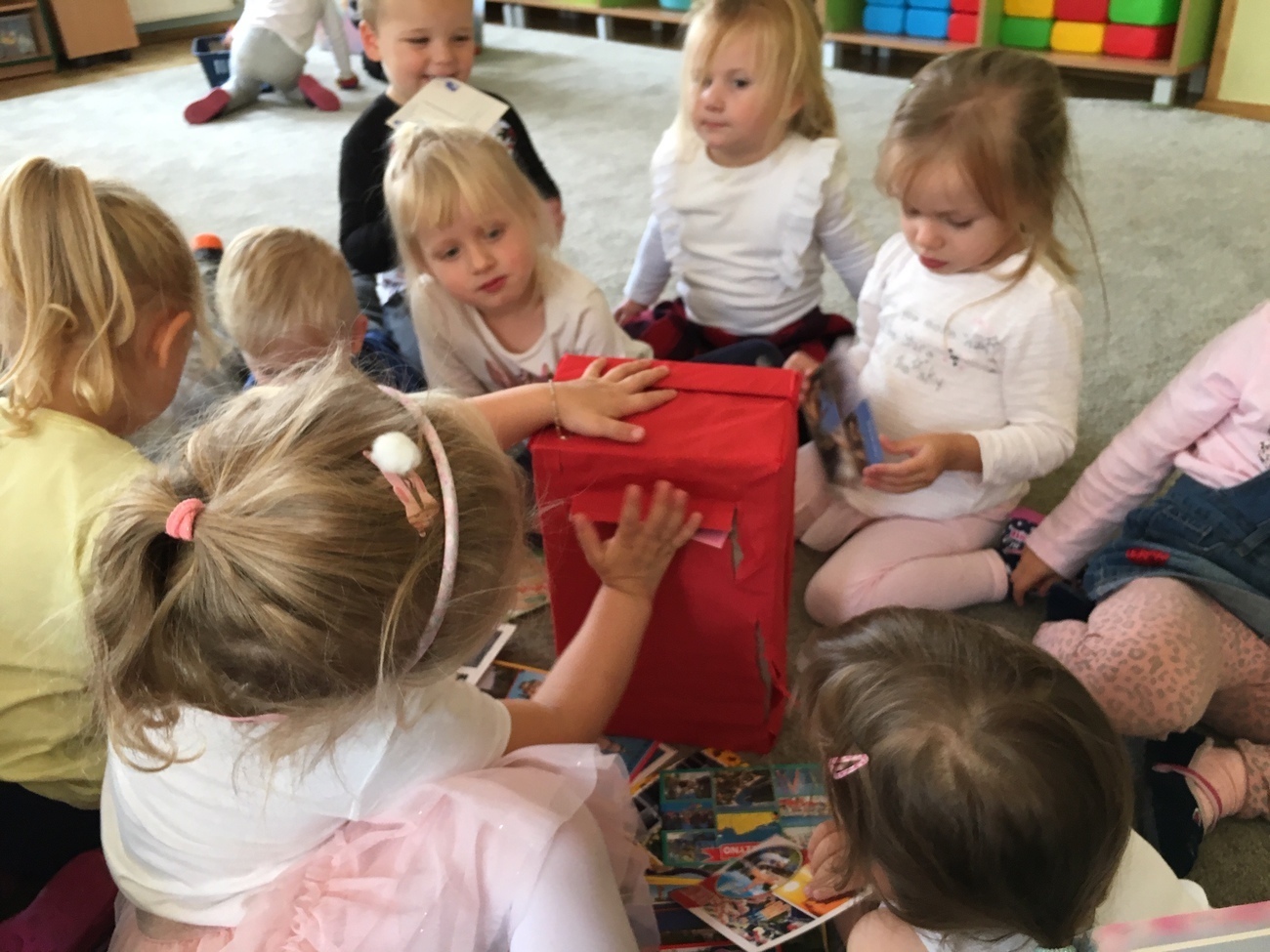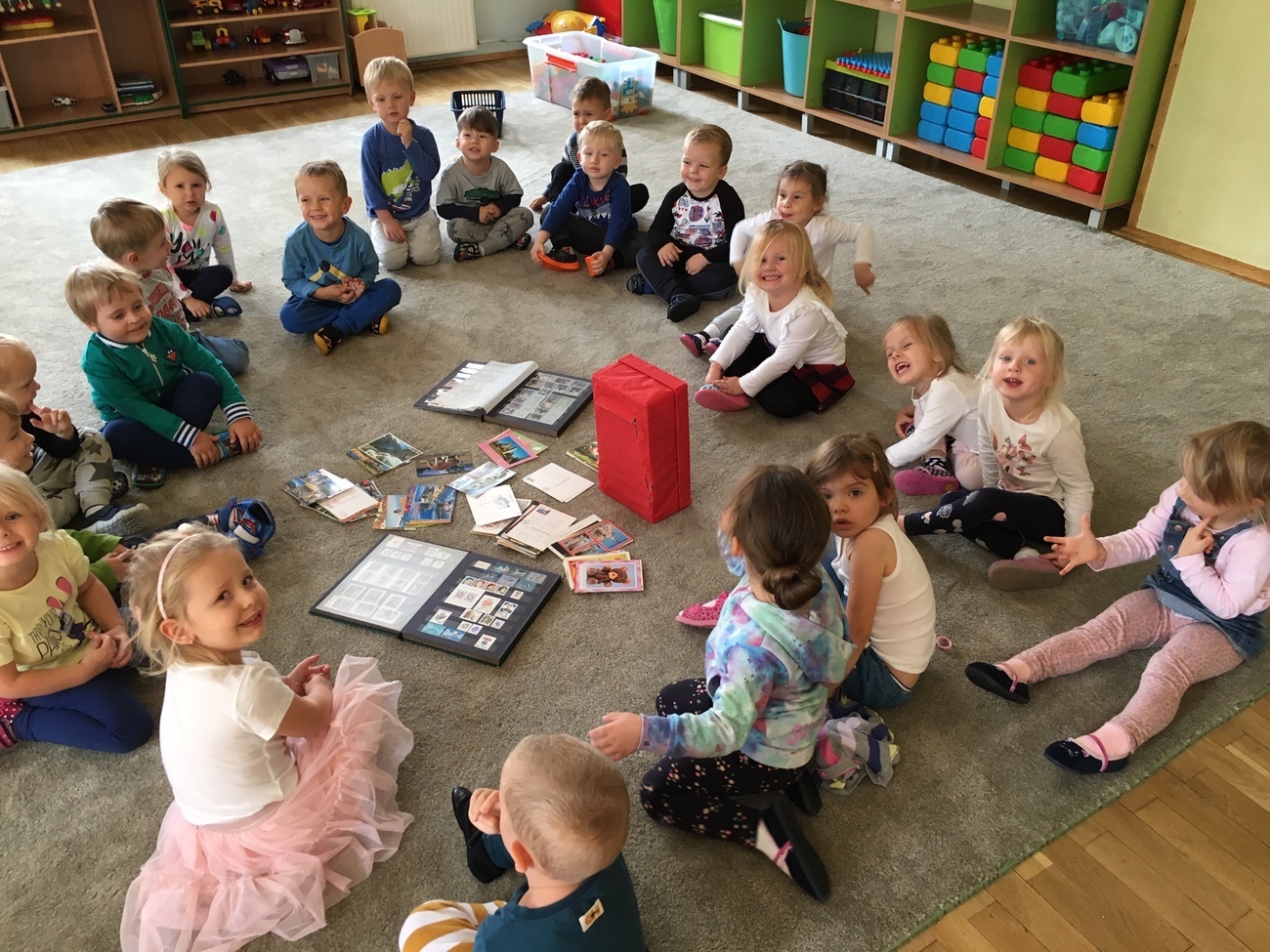 9 października Smerfy poznały pracę poczty oraz wykonywały swój znaczek pocztowy. Mogły obejrzeć klasery ze znaczkami, niektóre z nich miały nawet 57 lat. Pani Ola i pani Kasia przyniosły dla nas pocztówki z różnych zakątków naszego kraju oraz zagranicy. Jedne przedstawiały miasta, inne krajobrazy, a jeszcze inne śmieszne obrazki czy zwierzęta. Do specjalnej skrzynki pocztowej, która była koloru czerwonego. Przedszkolaki wrzucały pocztówki tak aby w późniejszym etapie mogły trafić do naszych kolegów i koleżanek z innych przedszkoli.