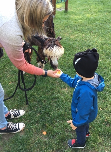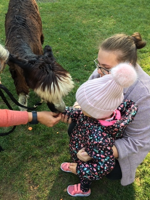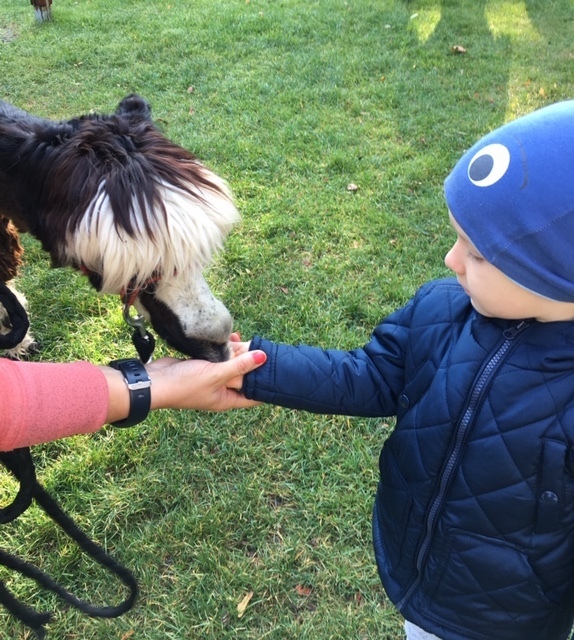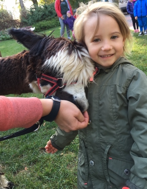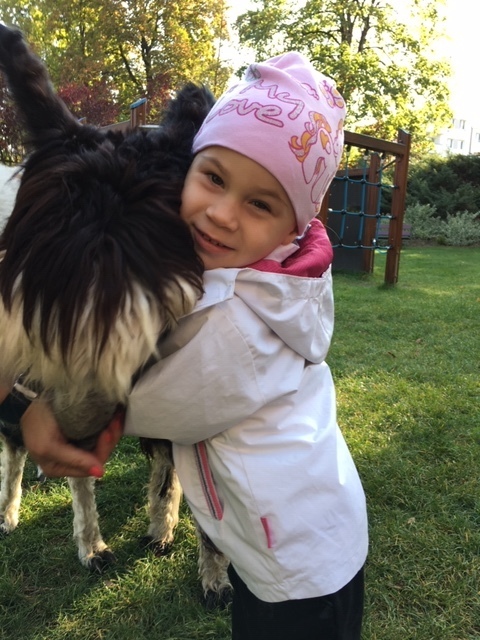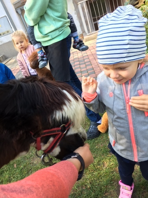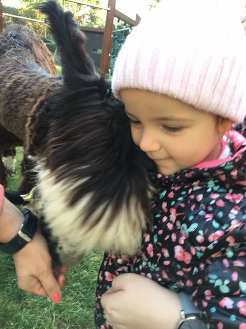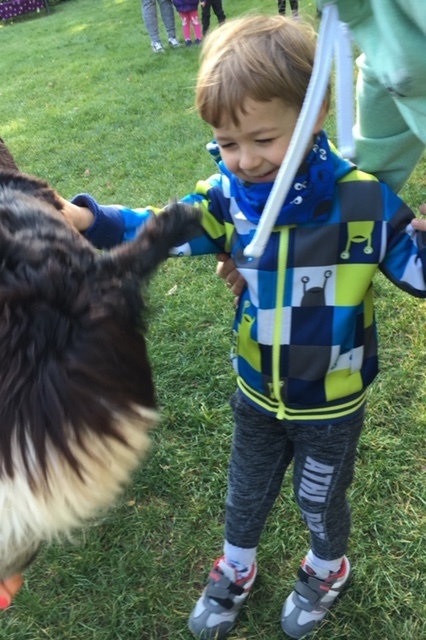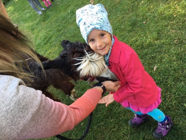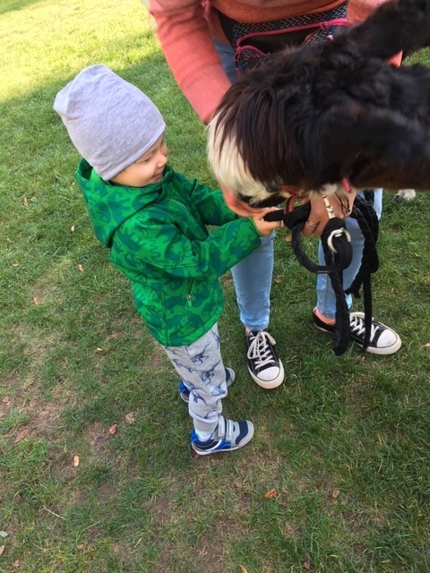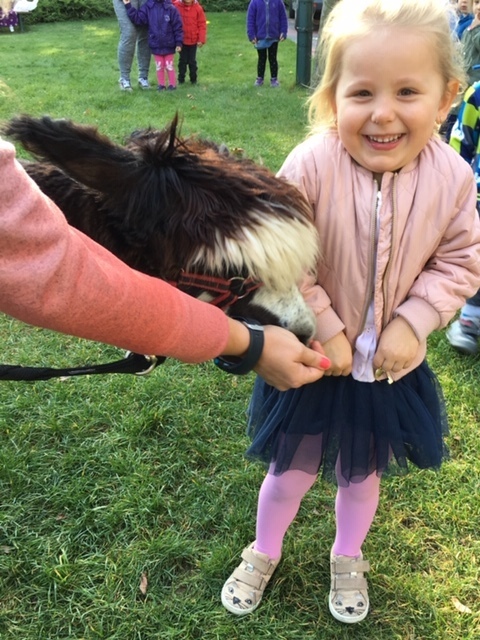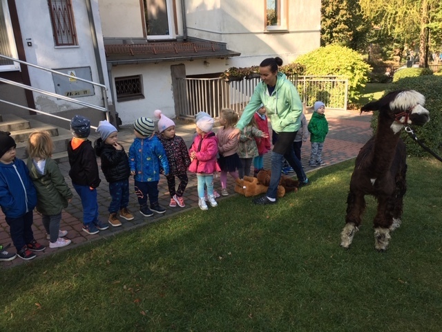 Kiedy przyszliśmy w piątek 28 września do przedszkola nie wiedzieliśmy, że będzie czekać na nas niespodzianka. Odwiedziły na alpaki: Klusek i Miki. Wyszliśmy do nich do p[przedszkolnego ogrodu i obserwowaliśmy jak skubią trawę. Pani Marta przedstawiła nam zwierzęta, po czym każdy z nas mógł nakarmić Kluska i Mikiego marchewką. Po tak pysznym śniadanku obie alpaki pozwalały się głaskać a nawet same si e do nas przytulały. To było niesamowite przezycie. Już się nie możemy doczekać kolejnego spotkania.