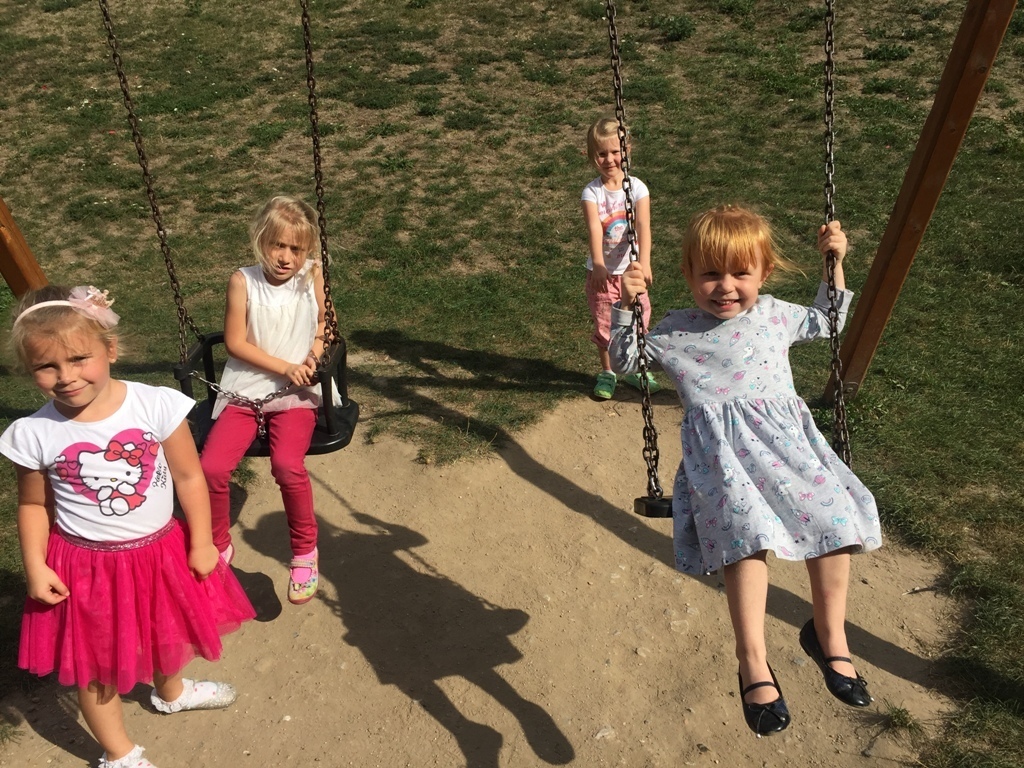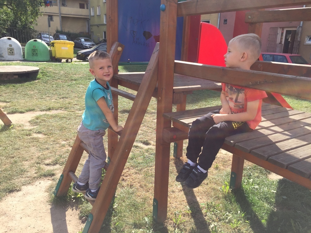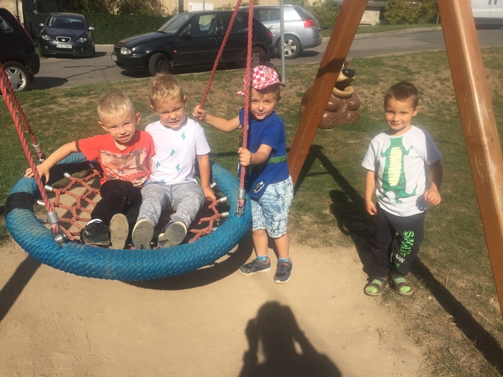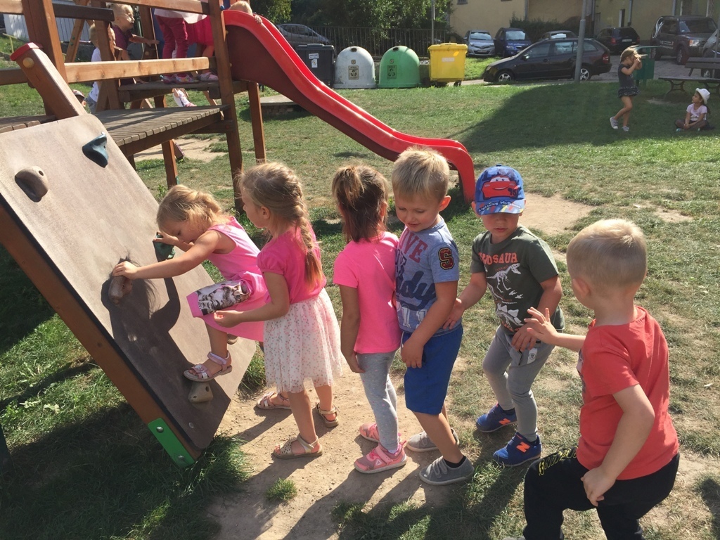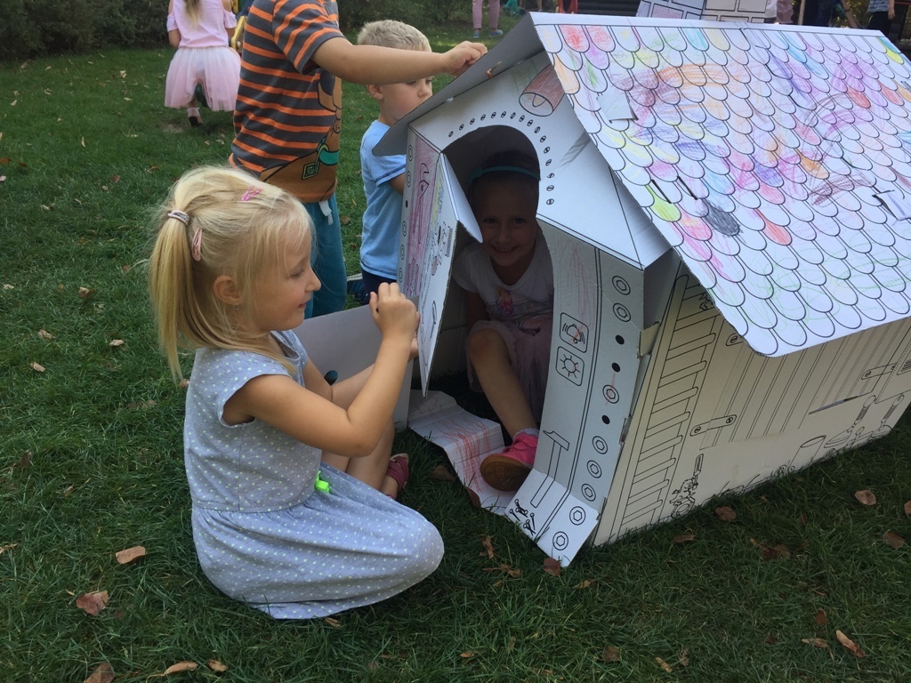 We wrzesniu pogoda nas bardzo rozpieszczaa, a my wykorzystalismy kazdy dzień bawiąc sie na przedszkolnym podwórku lub wychodząc na spcery i poznając nasza okolicę. Wspaniałą zabawa było wspolne kolorowabnie duzego papierowego dopmku, który przyniósł dla nas Filip. Uwielbiamy takie zabawy.