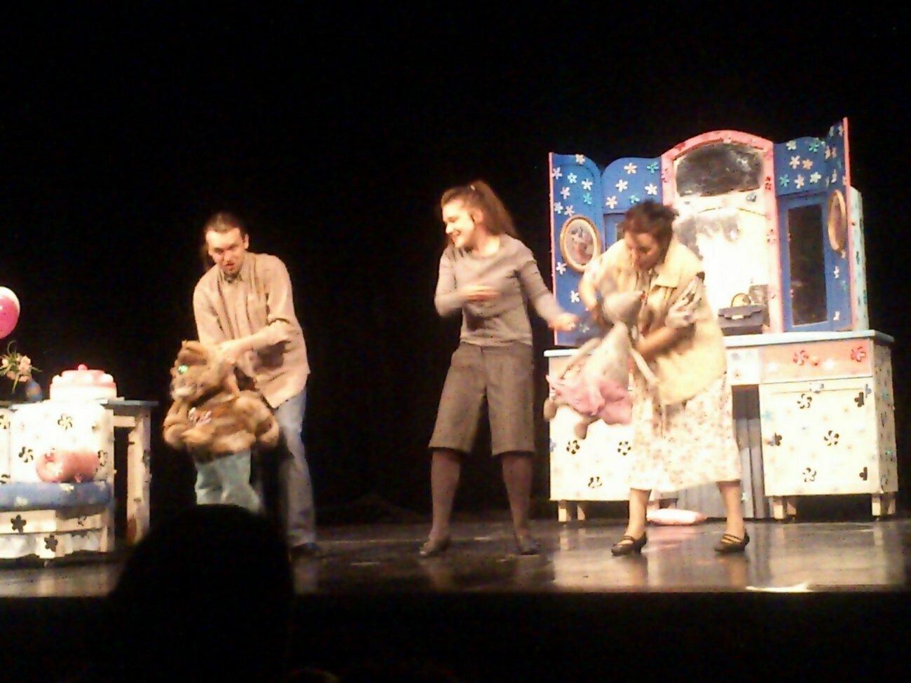 Przedstawienie należało do tych bardzo wesołych: gonitwy Kota i Myszy po scenie, piski cioteczki Maryni na widok Mysi oraz całkowite zamieszanie rozbawiało wszystkie Tuptusie (i ich wychowawczynie:)) niemal do łez!