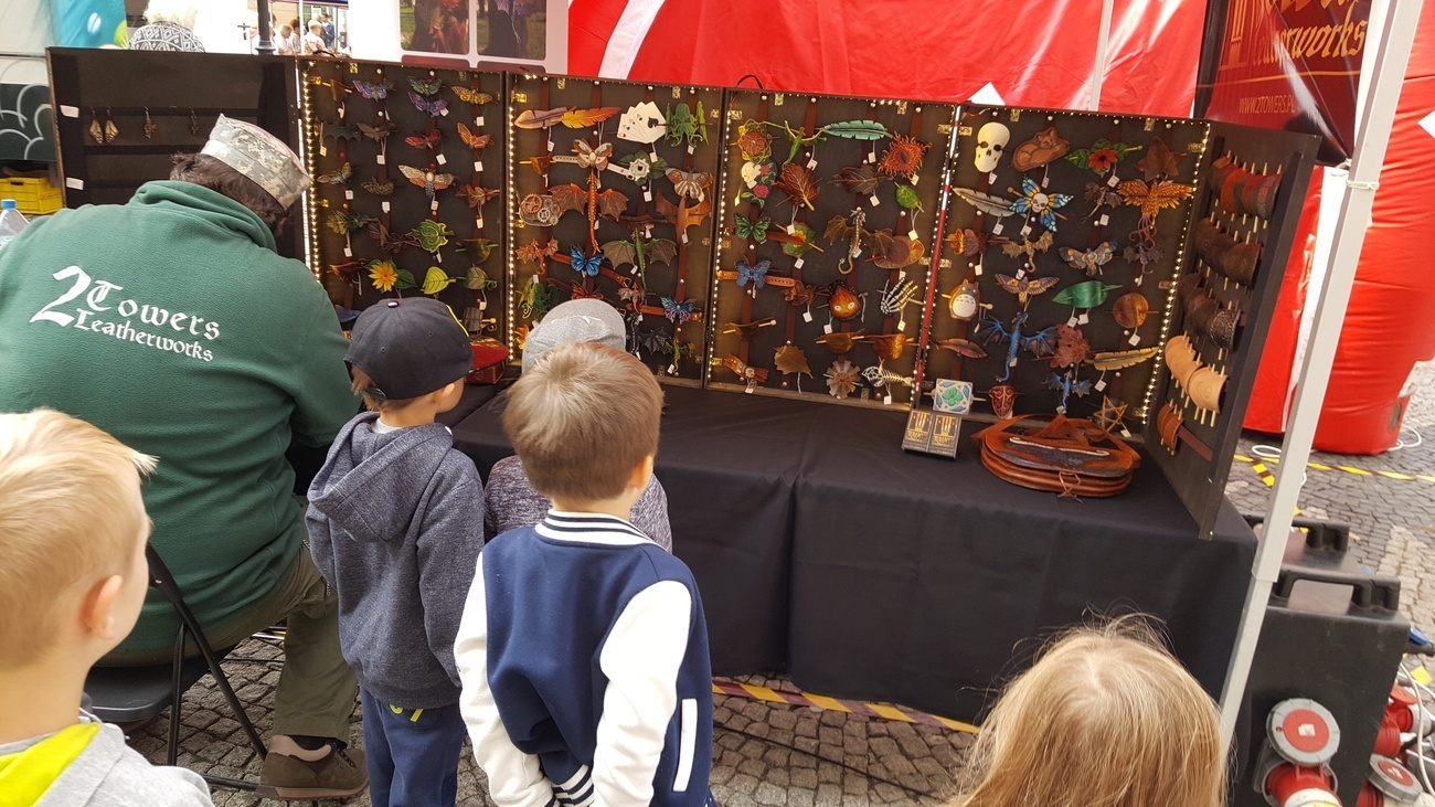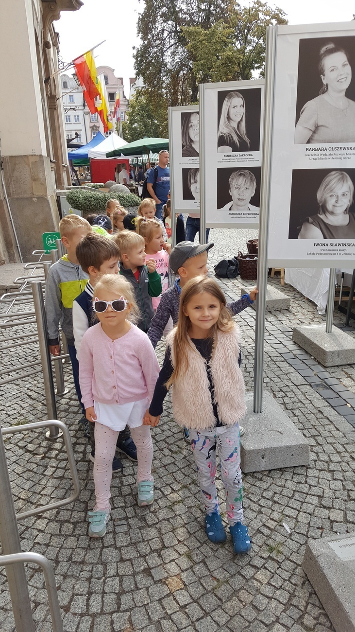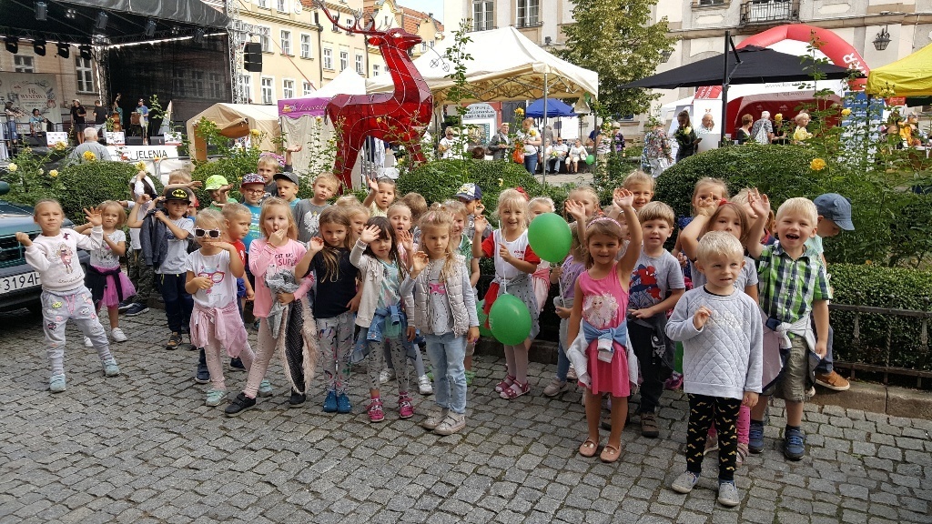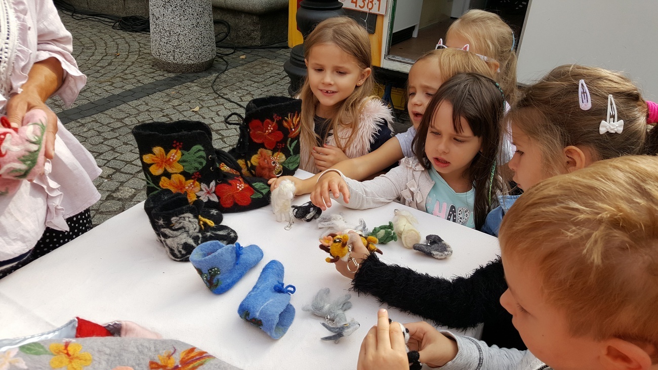 Byliśmy dziś na Jeleniogórskim Rynku, gdzie odbywała się impreza o nazwie „Wystawa produktów regionalnych - Wyprodukowano pod Śnieżką”. Na licznych stoiskach eksponowano przeróżne regionalne wyroby i specjały. Były wśród nich: wyhodowane przez lokalnych hodowców warzywa, miody z dolnośląskich pasiek, ręcznie utkane swetry z owczej wełny, wykonywana przez miejscowych artystów biżuteria. Spotkaliśmy tam również naszą znajomą panią Henię, która prezentowała zrobione własnoręcznie wełniane cudeńka. Na koniec wysłuchaliśmy koncertu ludowej kapeli wystawionego na wielkiej scenie.