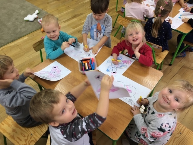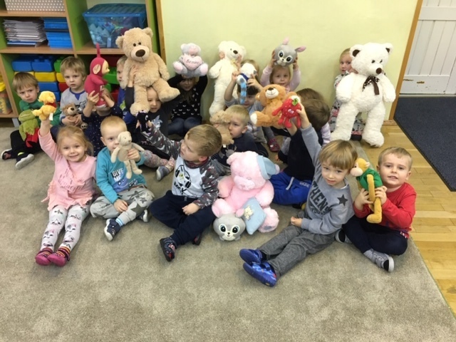 Smerfy w tym roku bardzo szczególnie obchodziły Dzień Pluszowego Misia. Tego dnia każde dziecko przyniosło do przedszkola swego ulubionego misia. Dzień rozpoczęliśmy od przywitania wszystkich misiów w smerfnej sali, po czym bawiliśmy się przy misiowych przebojach. Każdy Smerf mógł zrobić sobie zdjęcie w misiowej foto budce. Cały dzień bawiliśmy się swoimi misiami.