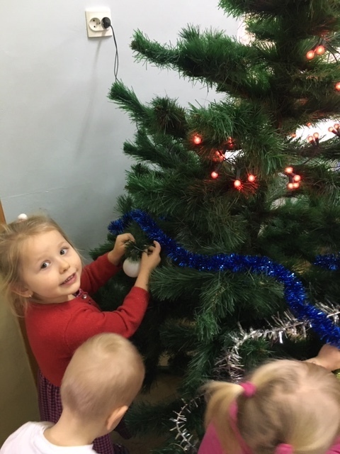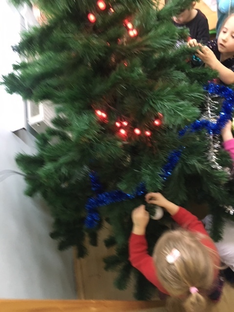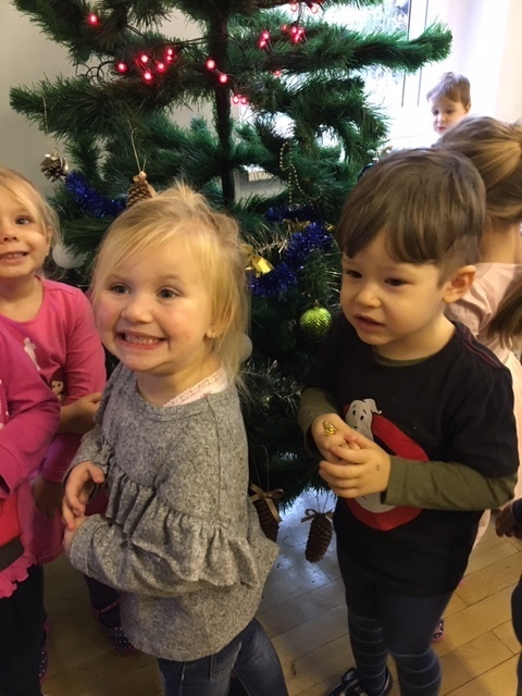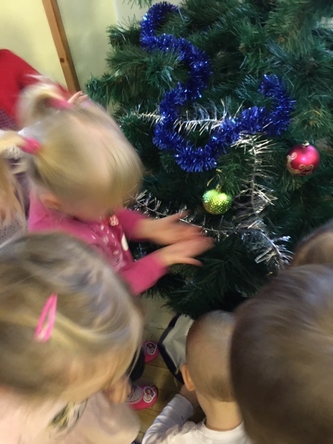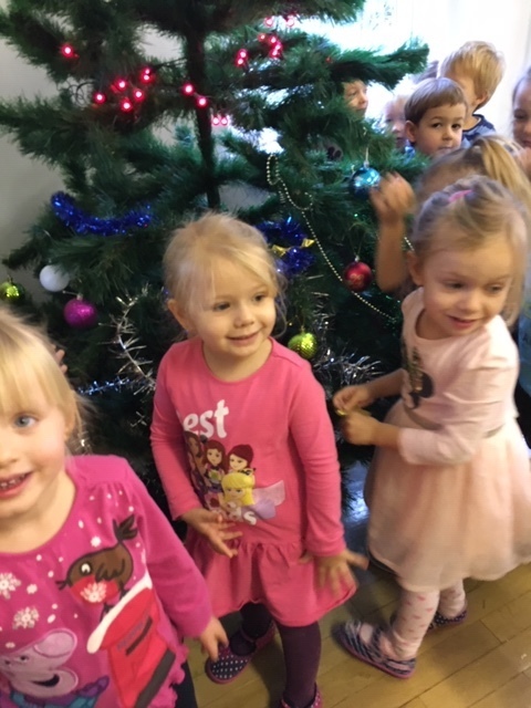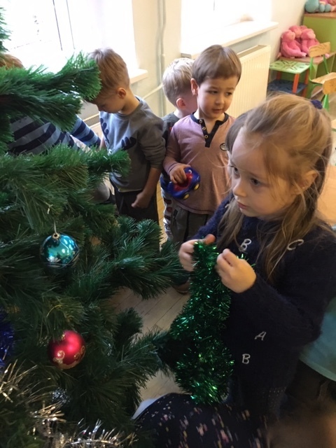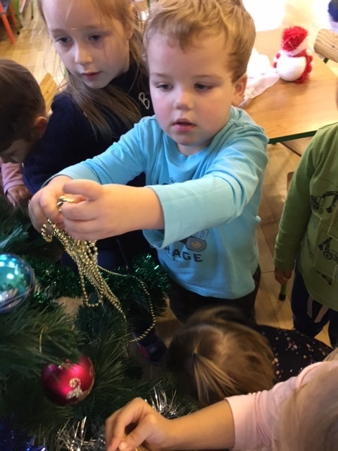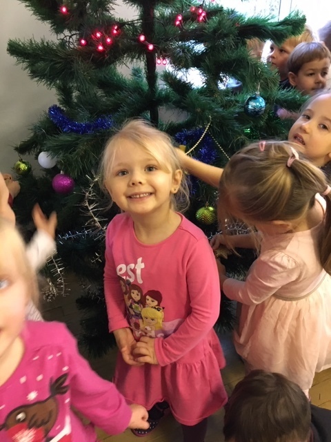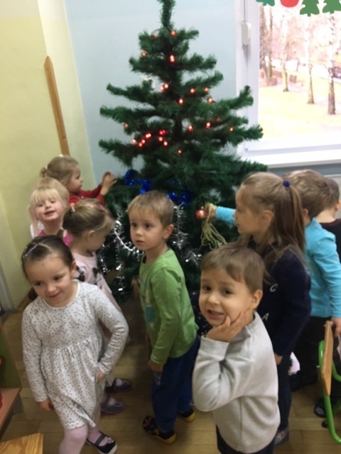 3 grudnia Smerfy przywitały w sali choinkę. Dzieci nie mogły się doczekać kiedy będą stroić zielone drzewko. Każdy Smerf przywiesił swoje bombki, które przyniósł by choinka wyglądała pięknie. Na koniec pani Renia włączyła lampki, by oświetlić nasze smerfne świąteczne drzewko.