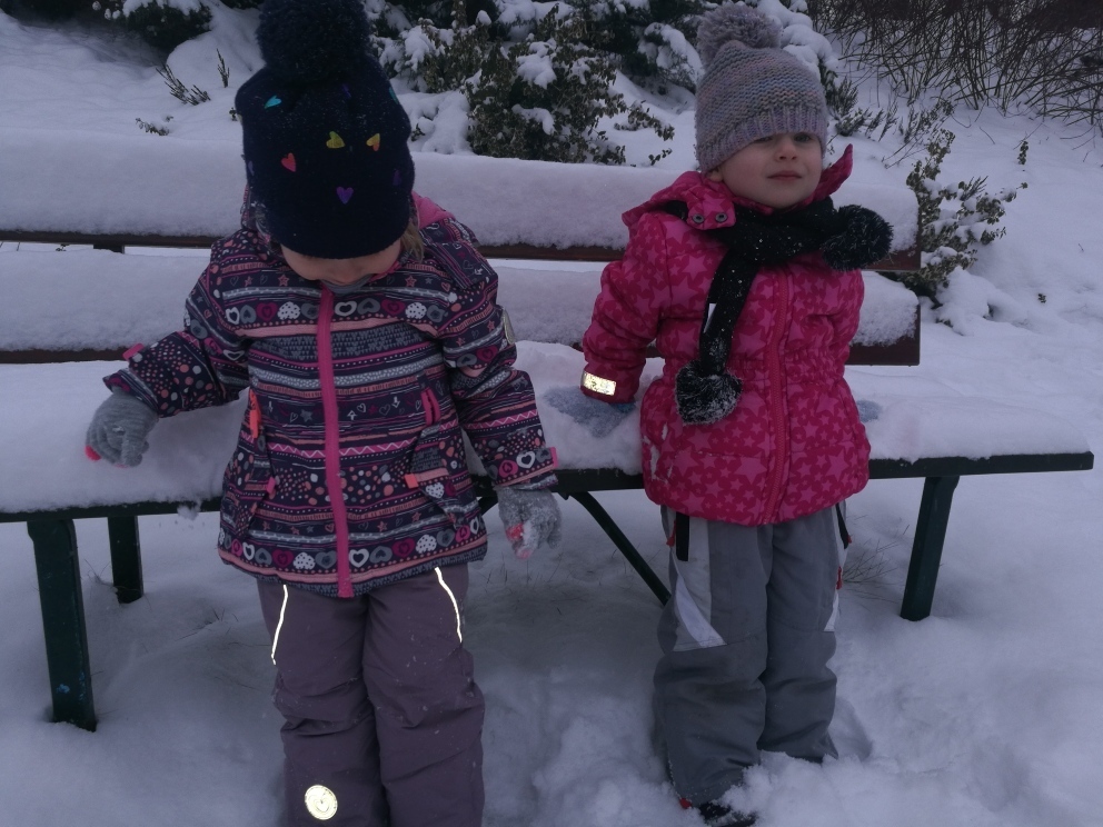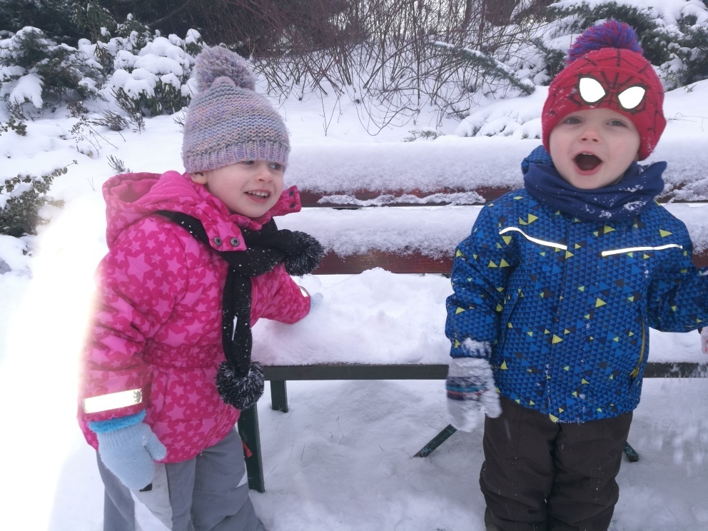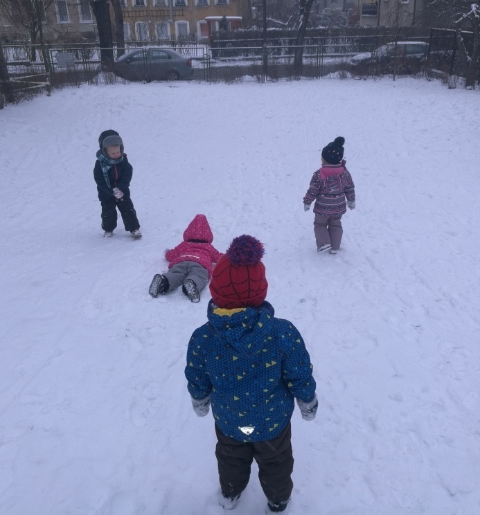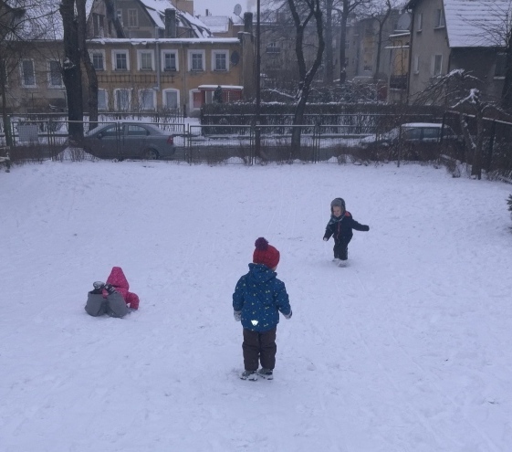 Możemy powiedzieć, ze nareszcie przyszła do nas zima. Gdy przyklejeni do szyby obserwowaliśmy padający śnieg, od razu przyszedł nam do głowy pomysł, by pobawić się na naszym podwórku. Ciepło ubrani w czapki, szaliki i rękawiczki chcieliśmy ulepić bałwanka. Niestety śnieg, który dopiero co spadł nie chciał się lepić, więc zostały nam zabawy śnieżkami. Było bardzo wesoło a piękna zimowa aura sprawiła, ze czuliśmy się wyjątkowo. Uśmiechnięci, trochę zmęczeni wróciliśmy do przedszkola na ciepłą zupkę - tak, tego nam było trzeba. Ach co to był za dzień!