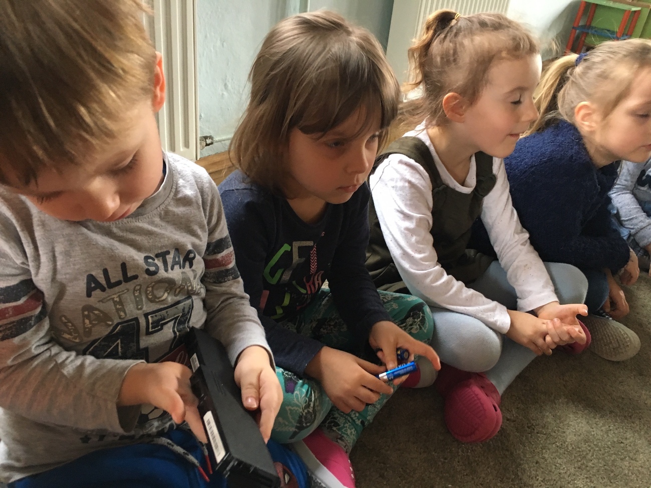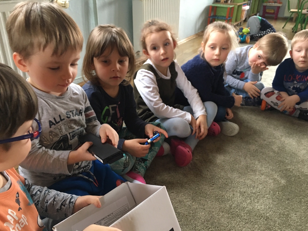 Wspólnie wykonaliśmy pudełko na zużyte baterie (zachęcamy do zbiórki - sala Smerfów). Pani Renia pokazała nam,