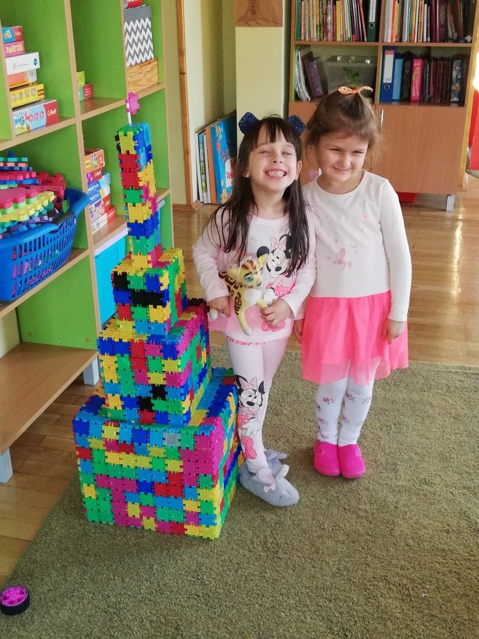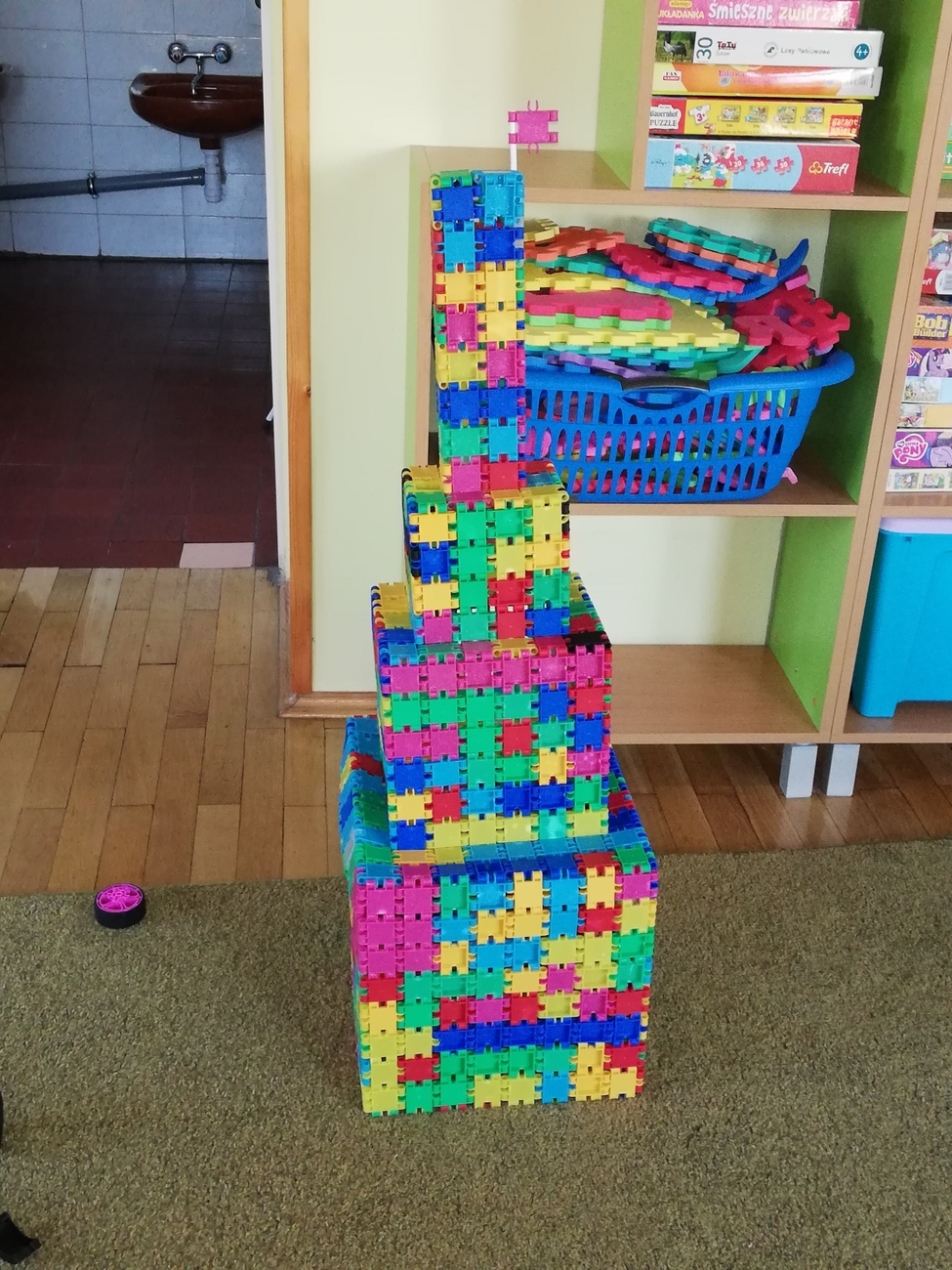 wraz z panią Kasią świetnie się bawili tworząc budowle z klocków. Dzieci zgadywały jakiej wielkości
