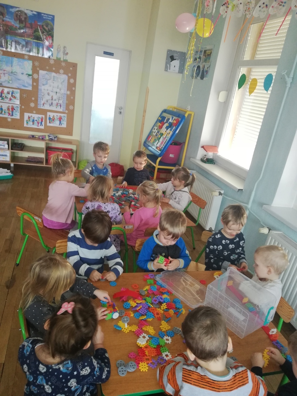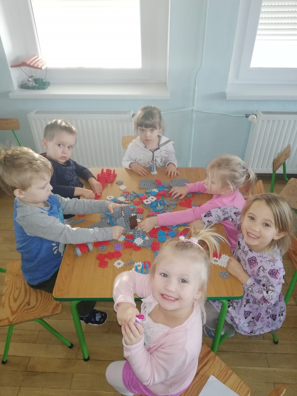 Przez cały tydzień wchodząc do sali przedszkolnej zmienialiśmy się w księżniczki i rycerzy. Poznawaliśmy zamkowe zwyczaje, wysłuchaliśmy wierszy i piosenek o zamkach. Wykonywaliśmy prace plastyczne- tworząc swój własny magiczny zamek oraz maskę na bal przebierańców u Królewny Śnieżki. Z klocków również powstawały wieże zamkowe, a nawet zamki. Czy te mniejsze czy większe wszystkie były wspaniałe. Odbył się również bal u Kopciuszka. Dzieci bawiły się na nim chustą animacyjną. Balony na balu wirowały w powietrzu i uciekały z chusty więc trzeba było je szybko łapać. Dzieci tańczyły w parach i pojedynczo w tan muzyki. Pięknie wskazywały kolory jakie wypowiadała Pani Kasia. Na koniec dzieci wysłuchały opowieści o smerfnym rycerzu.