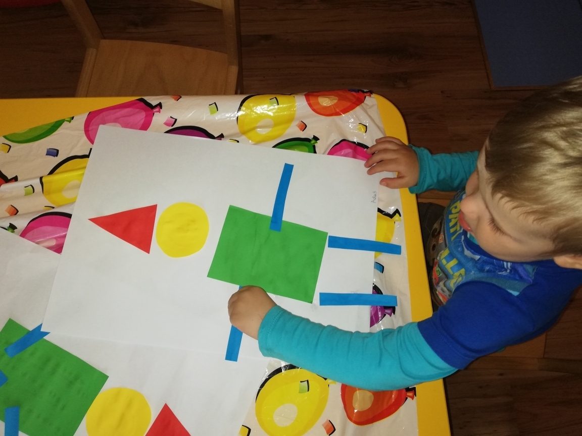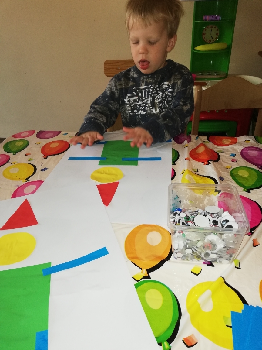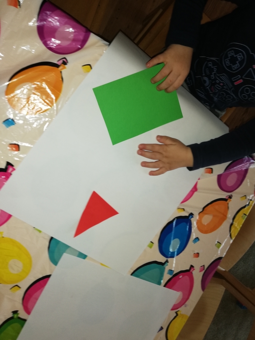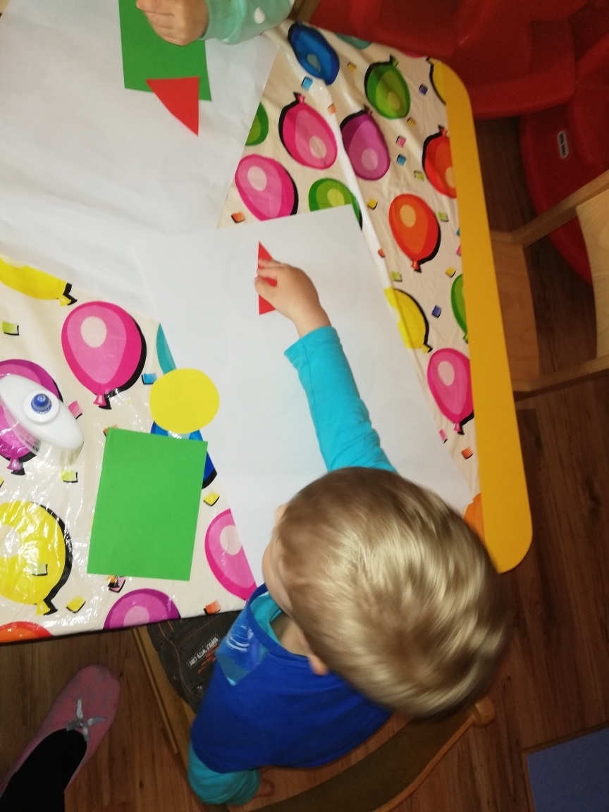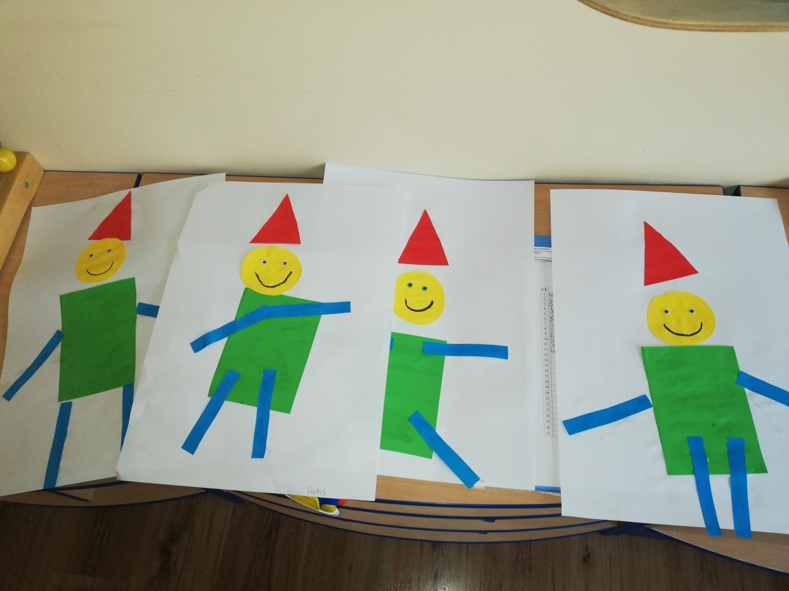 ich kolor. Kończąc zajęcia wykonalismy pajacyki z figur geometrycznych.