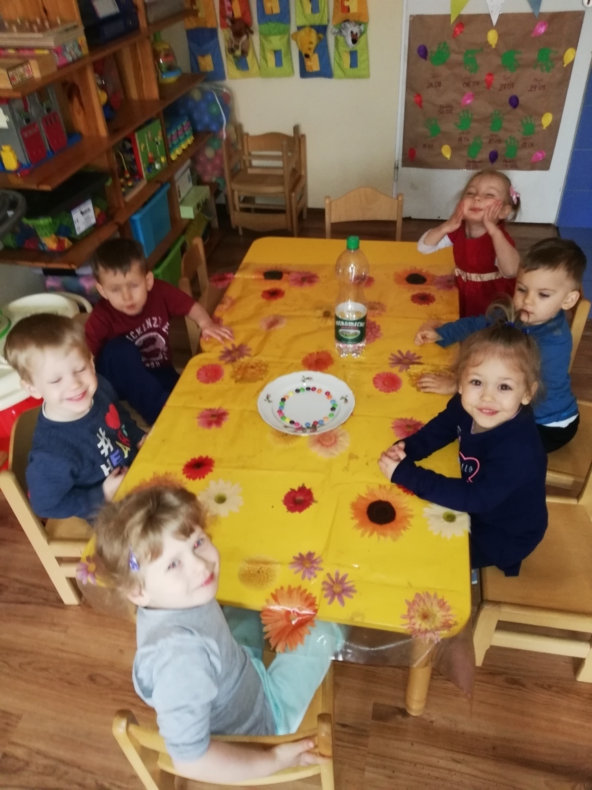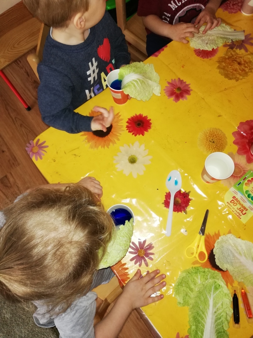 obejrzeliśmy o niej bajkę. Dzielne Skarby wykonały również dwa doświadczenia, aby zabarwić troszkę świat.