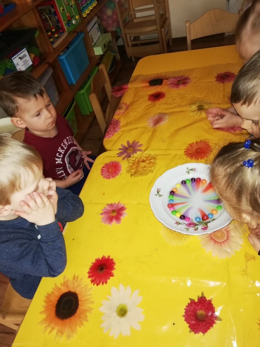 Tęczę każdy zna i widział, jednak jakie kolory ma? Na takie pytanie starały się odpowiedzieć dzieciaczki z grupy I.