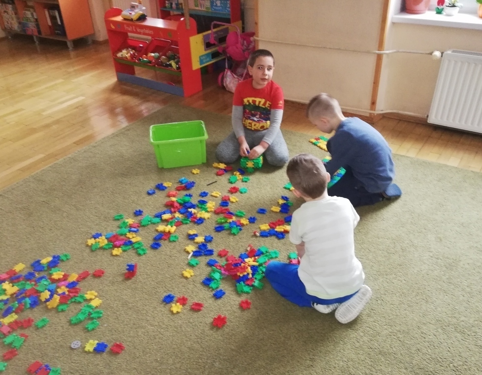 uczestniczyły w zajęciach, kibicując sobie wzajemnie. Kolejnym zadaniem dla dzieci była współpraca przy