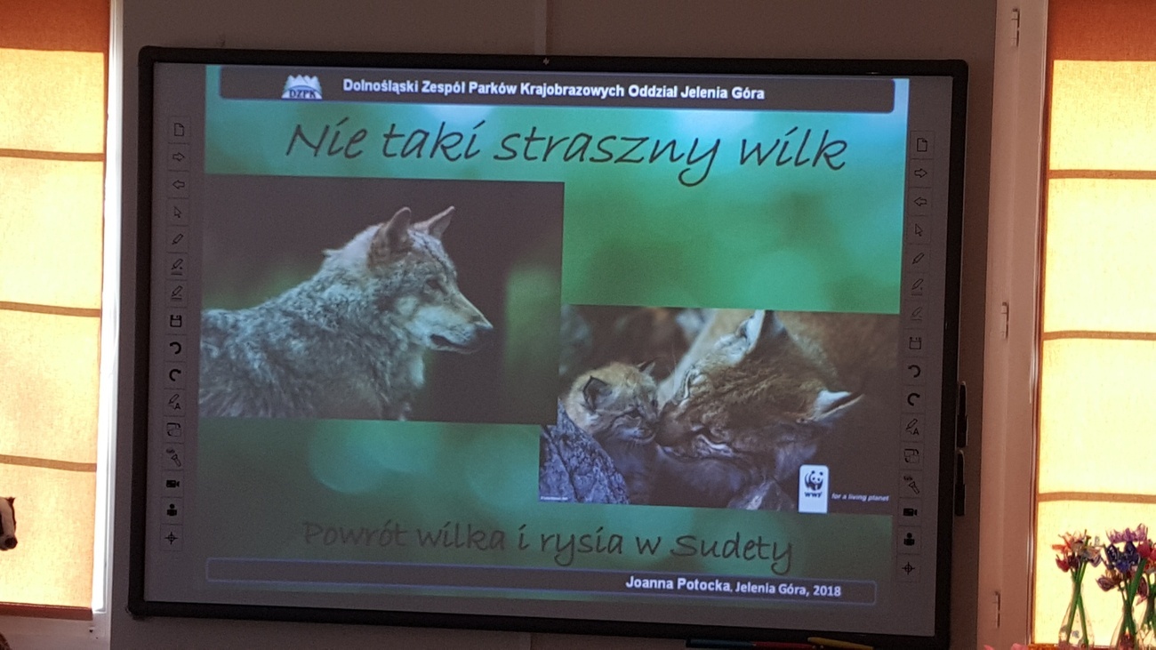 Wilki są bardzo niegrzeczne, lepiej z nimi nie rozmawiać, mogą nas ugryźć albo połknąć, gdy je spotkamy na swej drodze… to bajka, bo w rzeczywistości są to zwierzęta bardzo płochliwe i skryte. Podobnie jak my żyją w dużych rodzinach zwanych watahami. Wprawdzie są zwierzętami mięsożernymi, ale polują głównie na mniejsze od siebie ssaki i prawie nigdy nie stanowią zagrożenia dla ludzi, których starają się unikać jak tylko mogą. Najnowsze doniesienia pracowników KPN mówią o powrocie tych szlachetnych zwierząt w nasze karkonoskie lasy. Podobno nocami znów można usłyszeć jak nawołują się między sobą i wyją do księżyca.