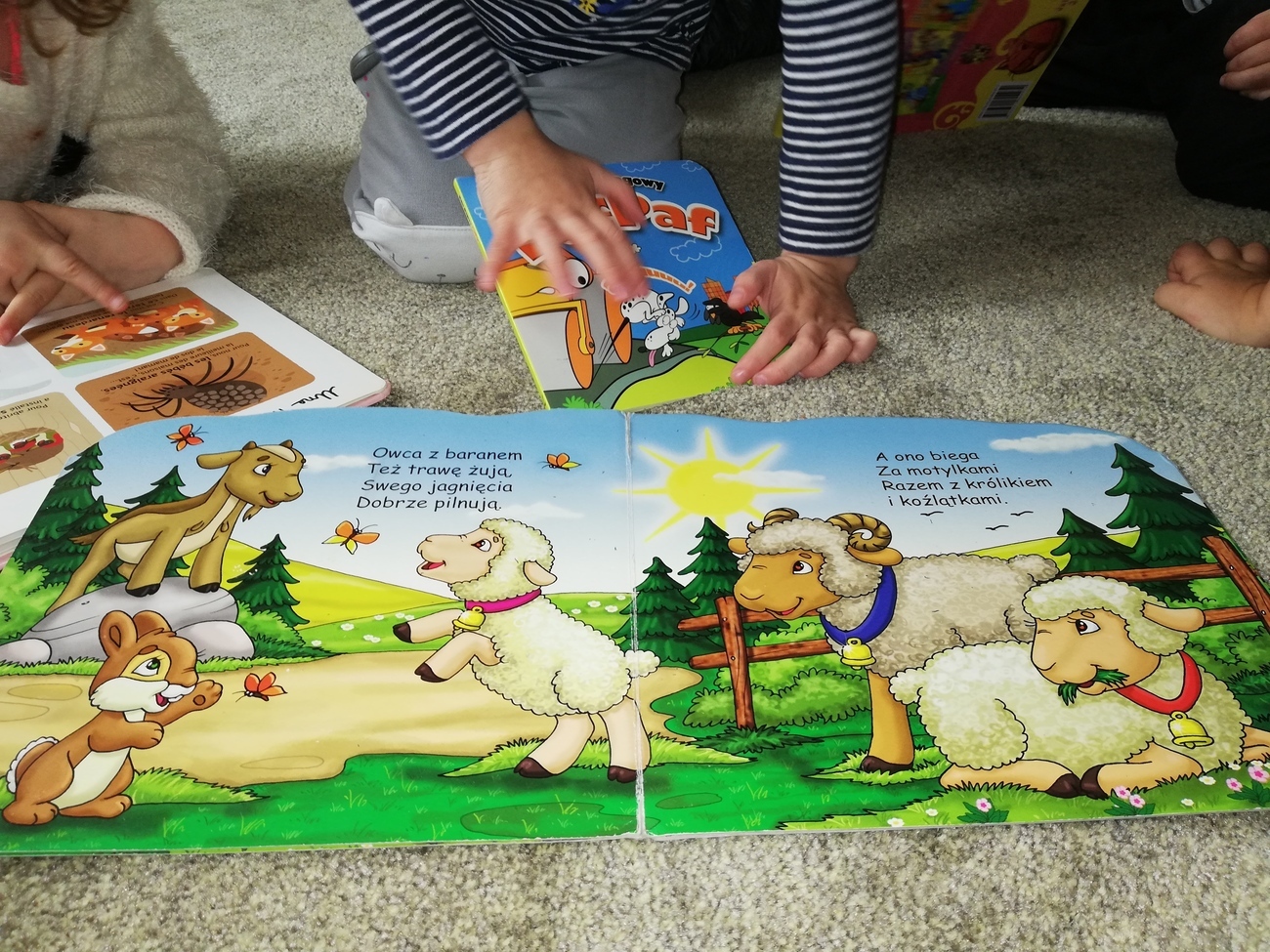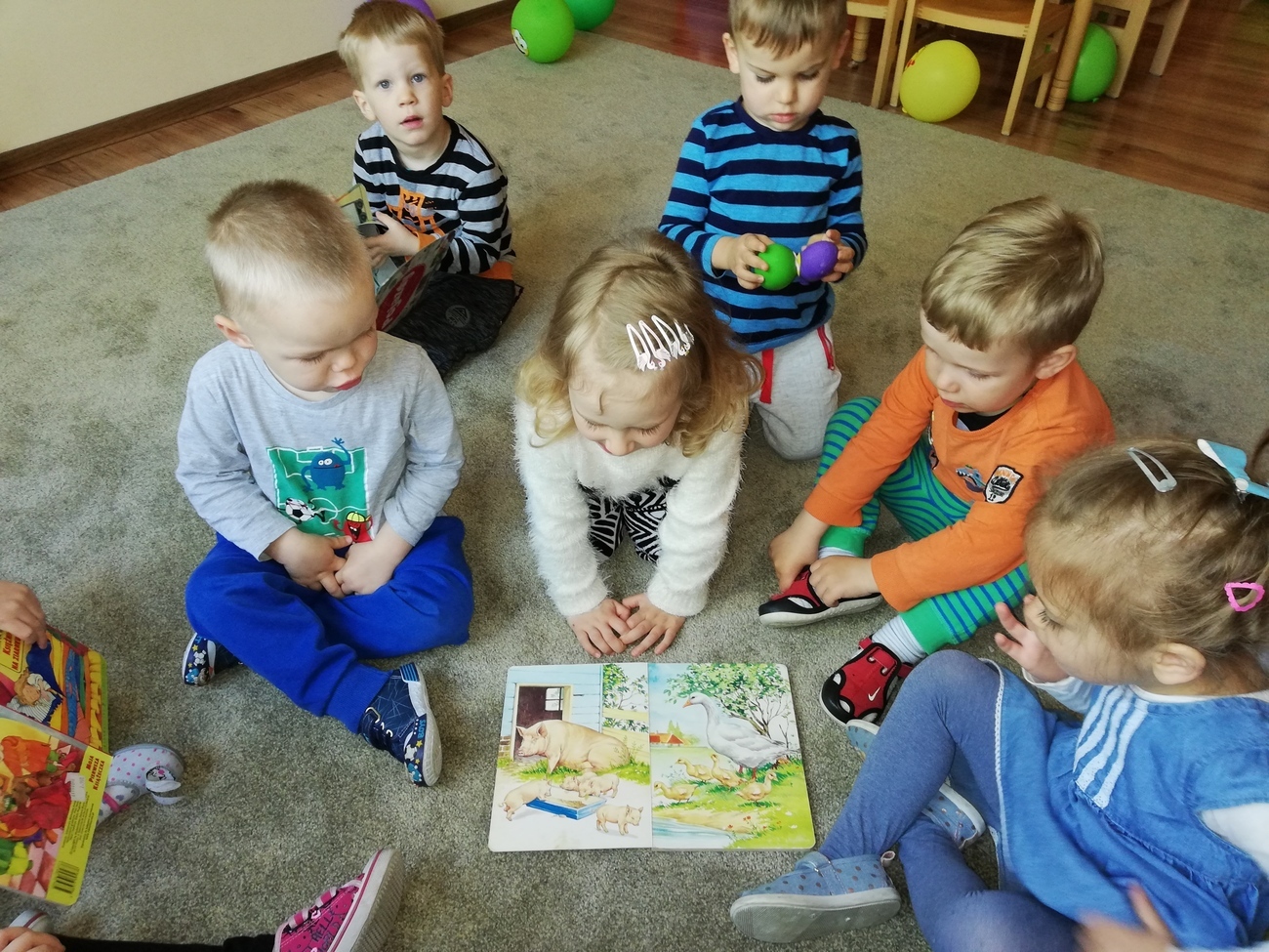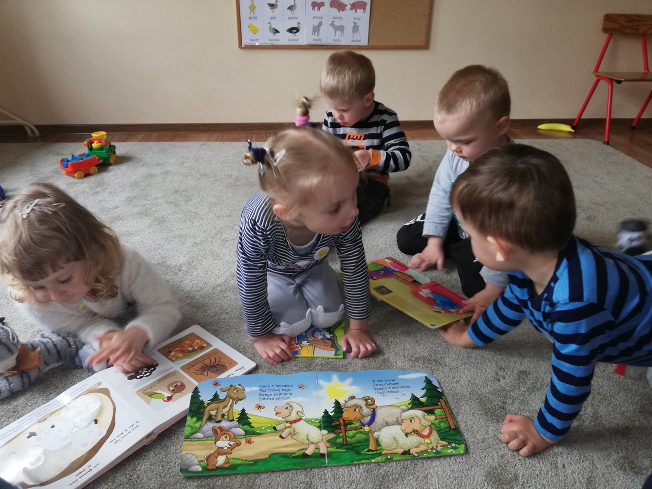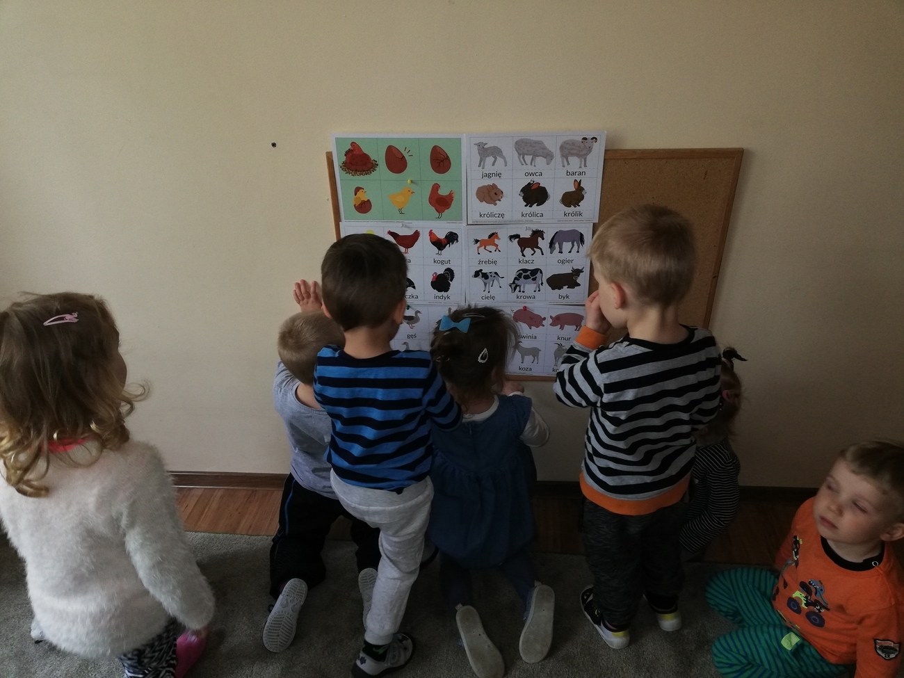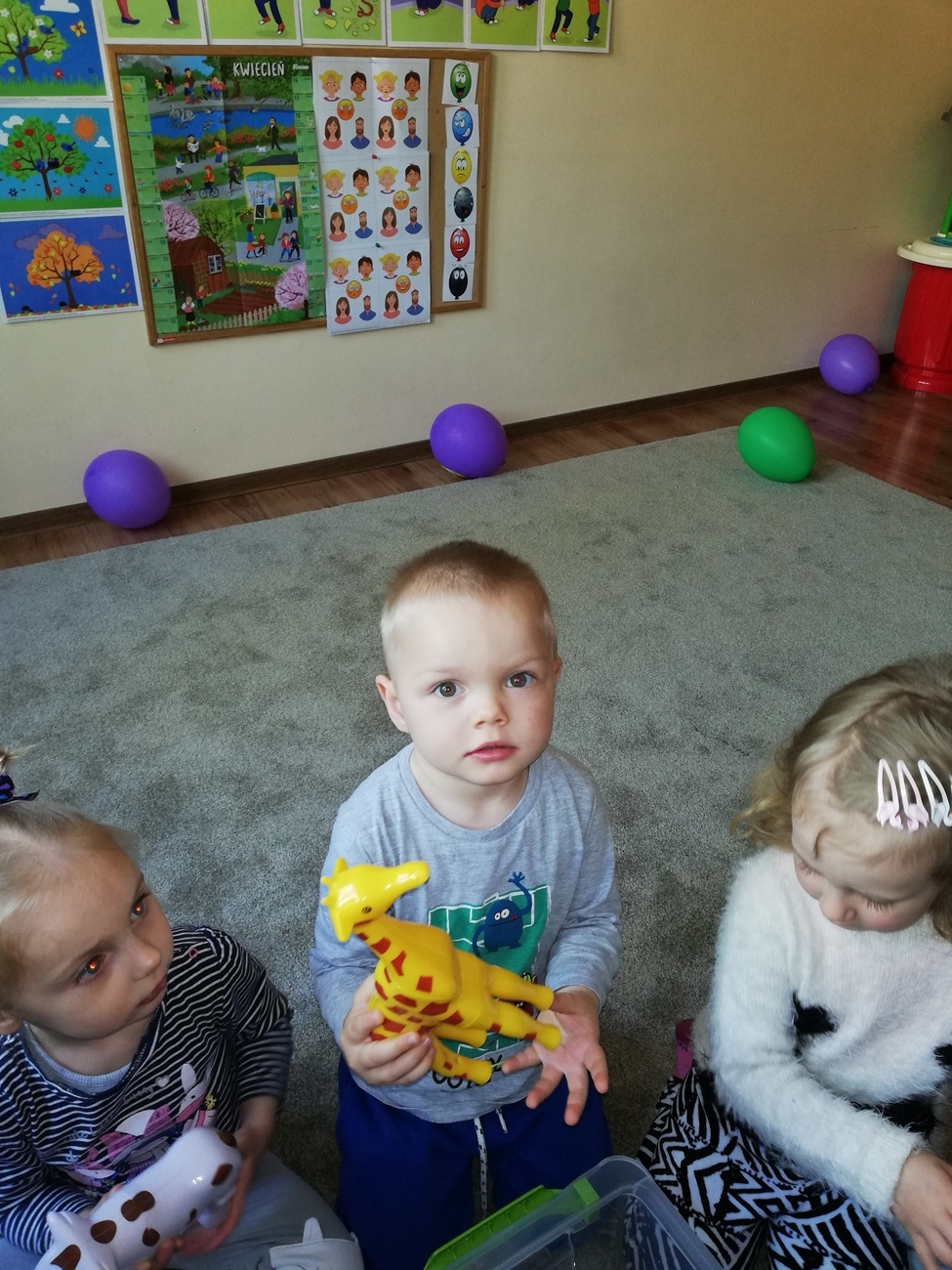 Tego dnia maluszki poznawaly zwierzątka te duże i te małe. Starały się odpowiedzieć na pytanie - czy małe zwierzątko będzie kiedyś duże? Skarby nazywały również zwierzątka na fotografii, które znają oraz poznawały nazwy tych jeszcze nieznanych. Nie mogło zabraknąć liczenia oraz klasyfikowania zwierząt. Nasza tablica również się zmieniła, pojawiły się na niej specjalne karty, które przyniosła dla nas pani Kasia byśmy mogli poznać wszystkie nazwy zwierząt nawet te trudne. Na koniec ze specjalnych klocków budowaliśmy nasze ulubione zwierzęta.