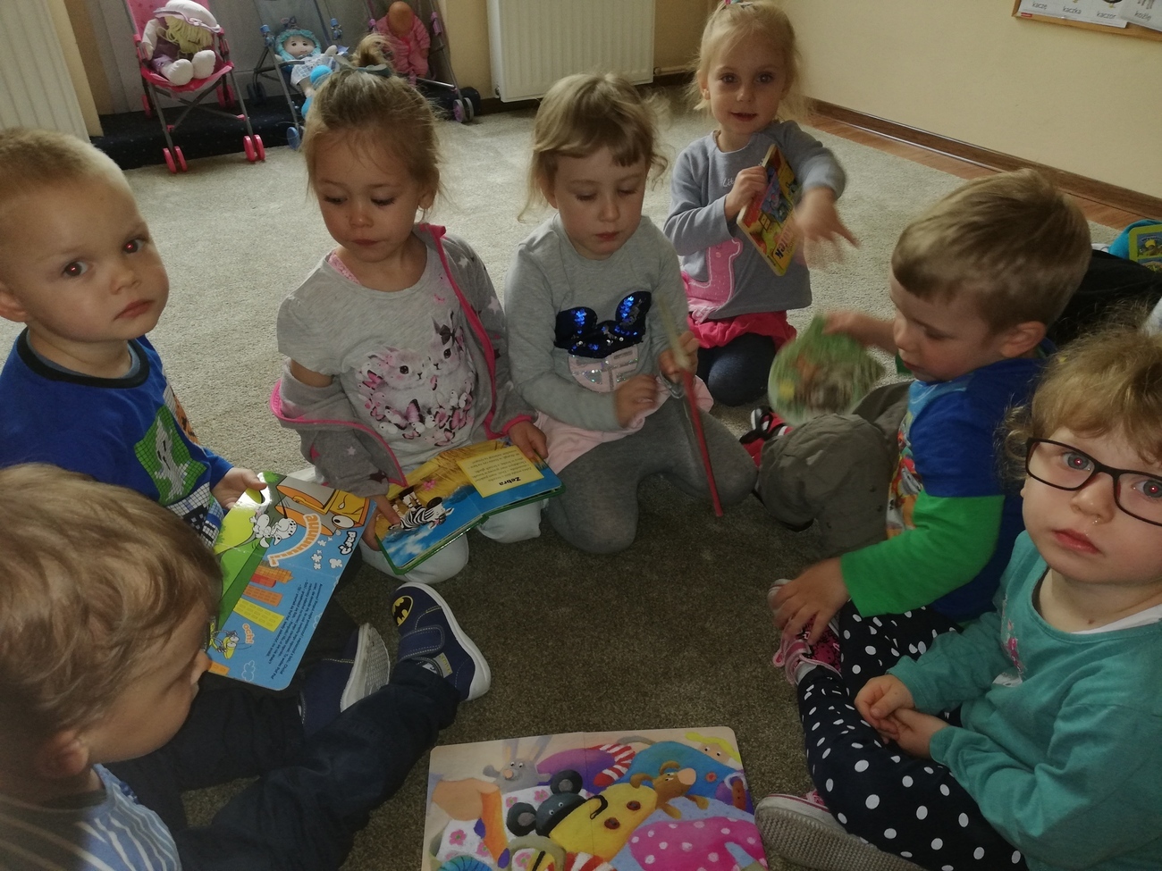 Na samym początku dnia wysłuchaliśmy bajki o przygodach Tomcia Paluszka. Następnie pani Kasia wytłumaczyła nam jak należy dbać o książki by długo nam służyły. Mogliśmy wybrać bajki które czytała nam pani.