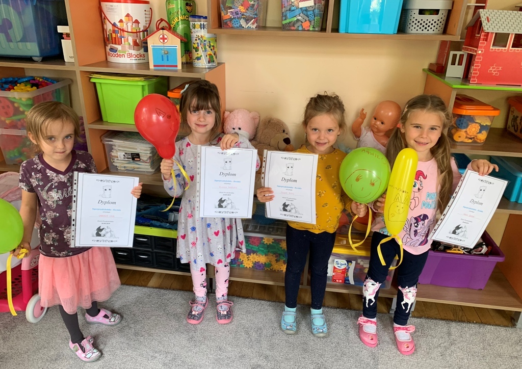 20.09.2019 r. grupa Kociaków obchodziła Ogólnopolski Dzień Przedszkolaka. W ten radosny czas nie zabrakło zabaw i śpiewu. Dzieci uczestniczyły w zajęciach z chustą animacyjną, koncercie życzeń oraz zabawach tanecznych w parach. W ten wyjątkowy dzień Kociaki wraz z Paniami udały się do parku na spacer, a później pobawiły się również na placu zabaw. Na zakończenie tego wyjątkowego dnia dzieci otrzymały dyplomy Super przedszkolaka – Kociaka oraz własnoręcznie ozdobiony balon. Wrażeń było co niemiara!