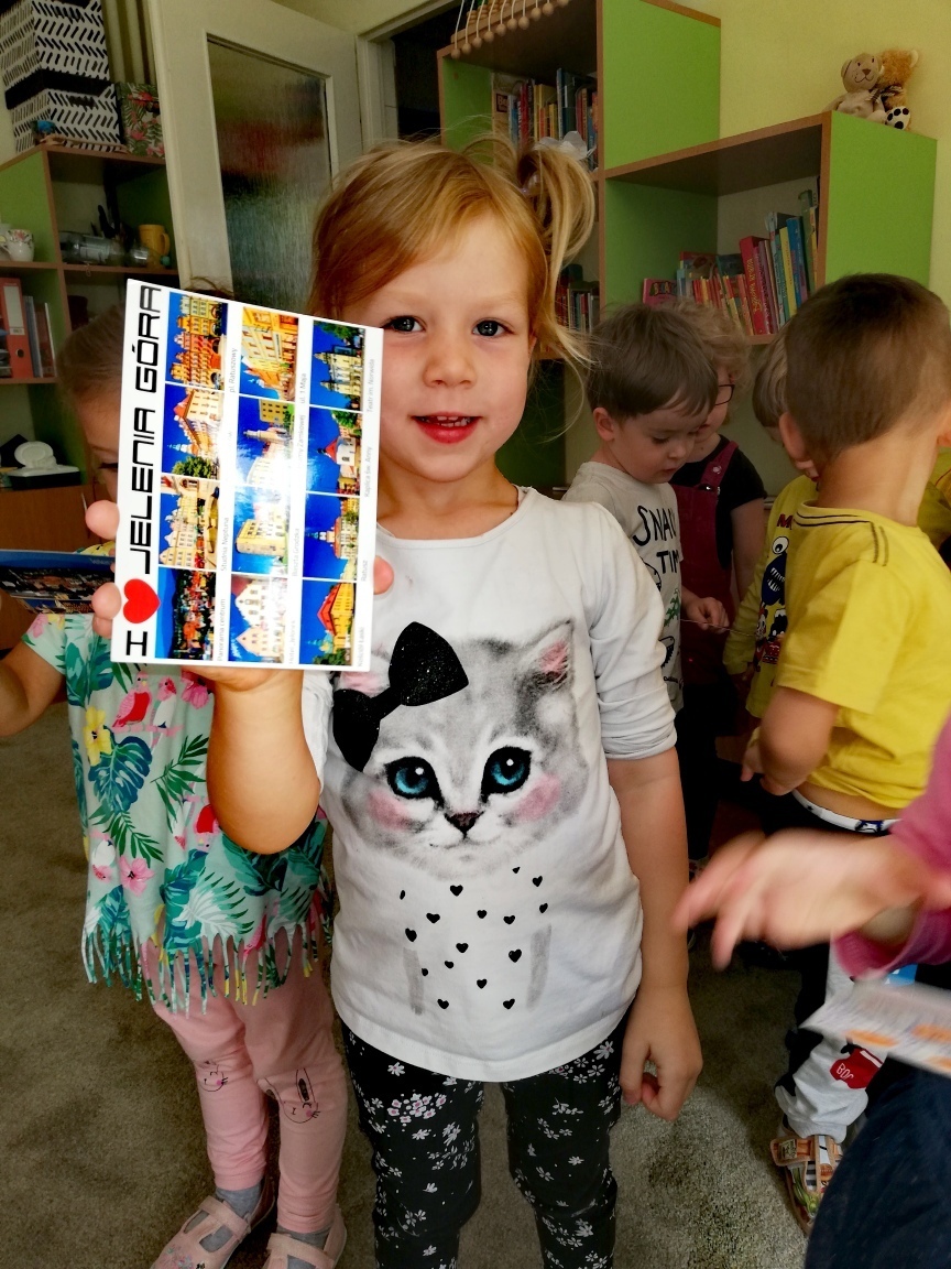 Później wypisaliśmy pocztówki z Jeleniej Góry dla innych dzieci z przedszkoli i szkoł z całego kraju biorąc udział