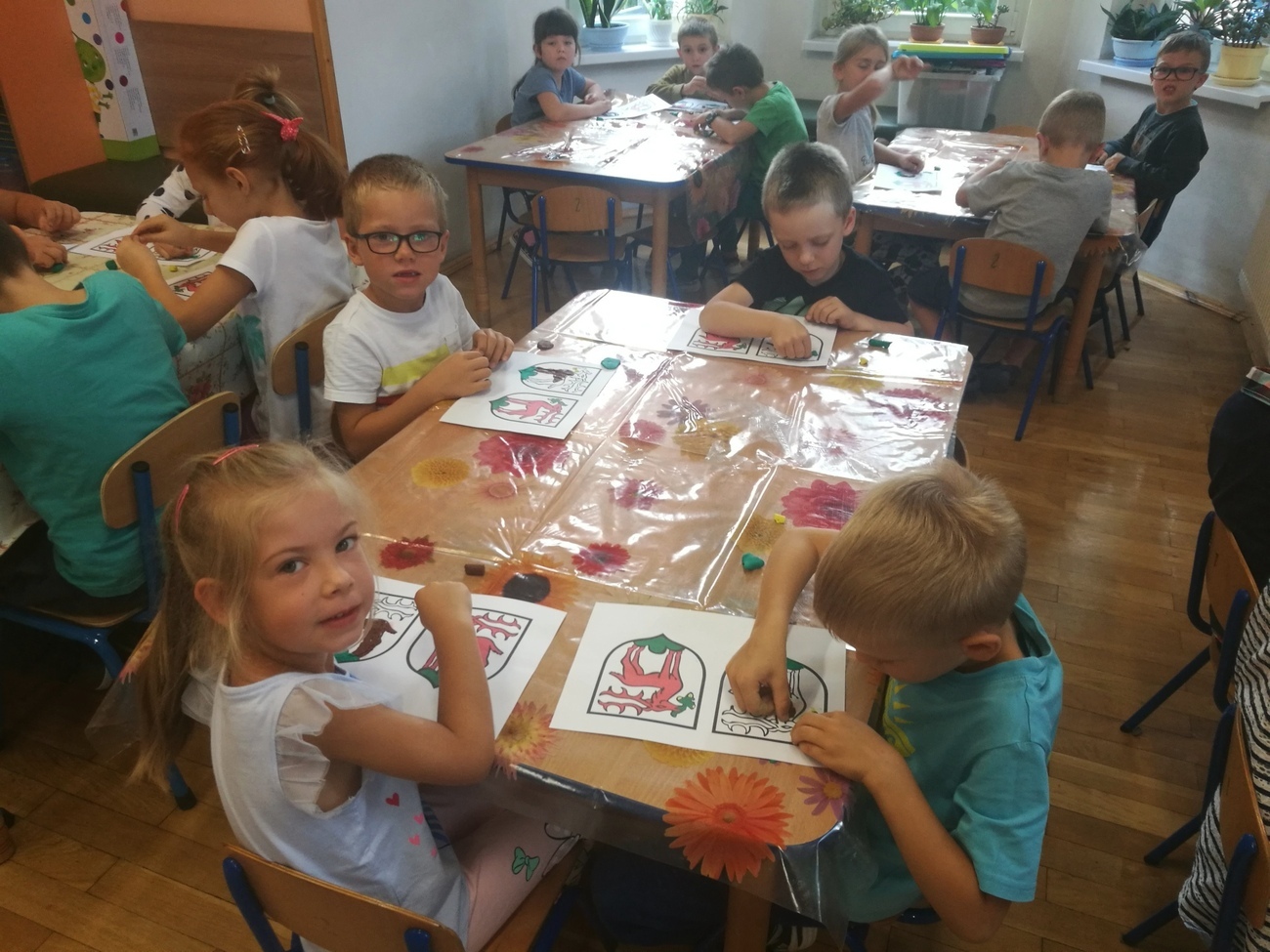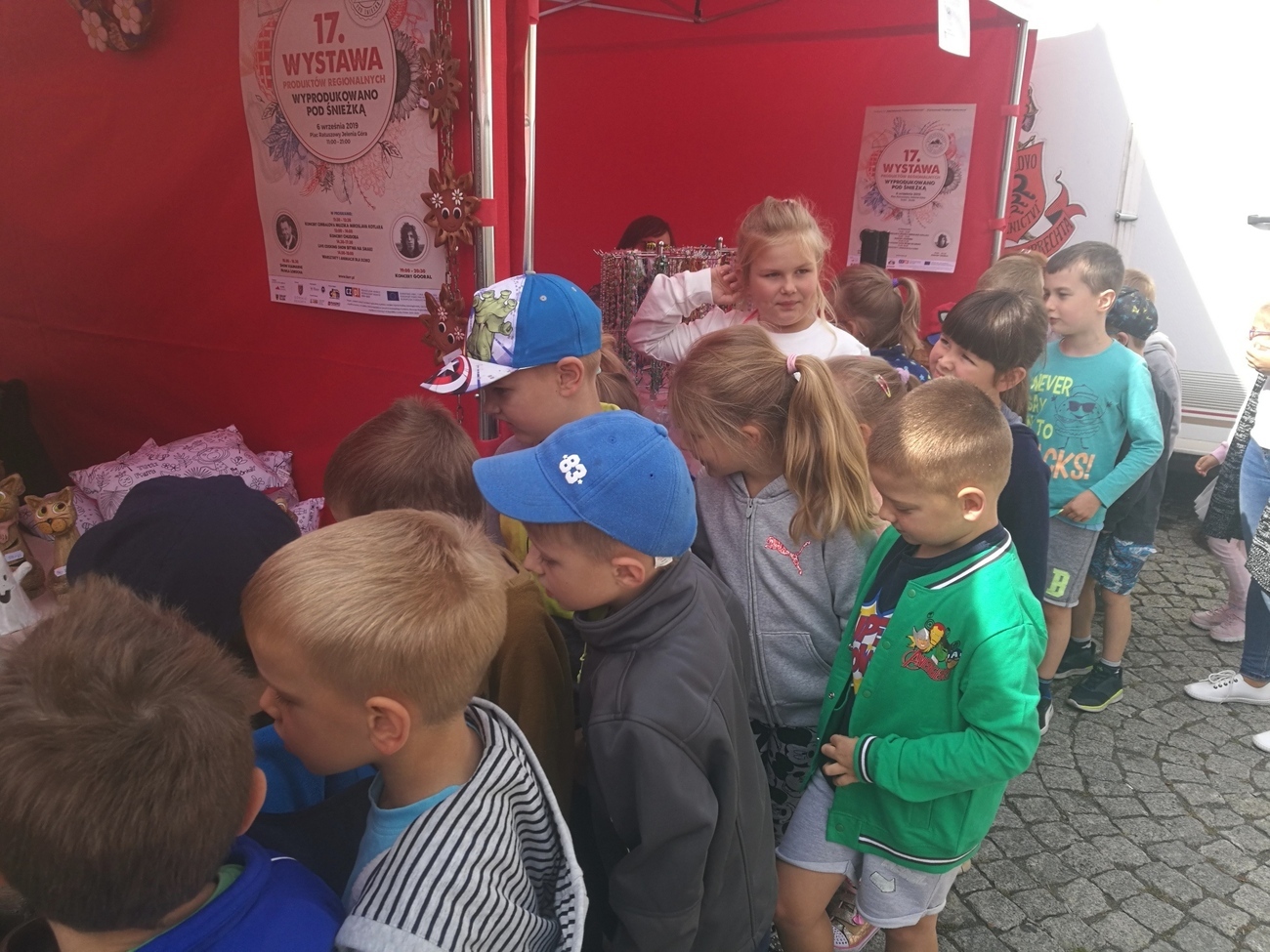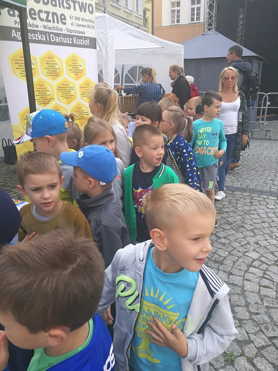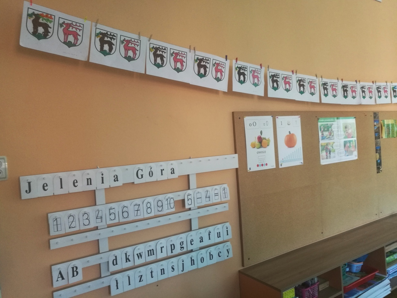 Miesiąc wrzesień dla wszystkich mieszkańców naszego miasta jest czasem szczególnym. W tym właśnie okresie świętujemy Wrzesień Jeleniogórski, czyli jak to dzieci mówią „urodziny miasta”. Z tej okazji odbywa się wiele imprez, wystaw koncertów. Jednym z wydarzeń są tragi „ Wyprodukowane pod Śnieżką”, w których braliśmy jako widzowie udział. Jednak zanim udaliśmy się na Plac Ratuszowy, by podziwiać wszystkie rękodzieła, porozmawialiśmy w przedszkolu o naszym pięknym mieście. Przypomnieliśmy sobie legendę o powstaniu Jeleniej Góry, omówiliśmy symbole naszego miasta (herb i flagę) oraz wysłuchaliśmy hejnału, przy którym zgodnie stwierdziliśmy, że jest znacznie ładniejszy od tego krakowskiego. Wyklejaliśmy również za pomocą plasteliny małe repliki herbu. Po takim wprowadzeniu mogliśmy udać się na targi. Wszystkie wystawiane produkty bardzo nam się podobały, dziewczynkom szczególnie przypadły do gustu ozdoby wykonane ze szkła, zwłaszcza, że mogliśmy obserwować proces ich powstawania. Piękne wyszywane poduszki, ozdobne pudełka, smakowite regionalne produkty i grający skoczną muzykę zespól umilający wszystkim zwiedzającym czas - sprawiły, że z chęcią byśmy pozostali tam na dłużej. Pewnie niektórzy z nas wrócą tu popołudniu z rodzicami a na razie nadszedł dla nas czas powrotu do przedszkola.