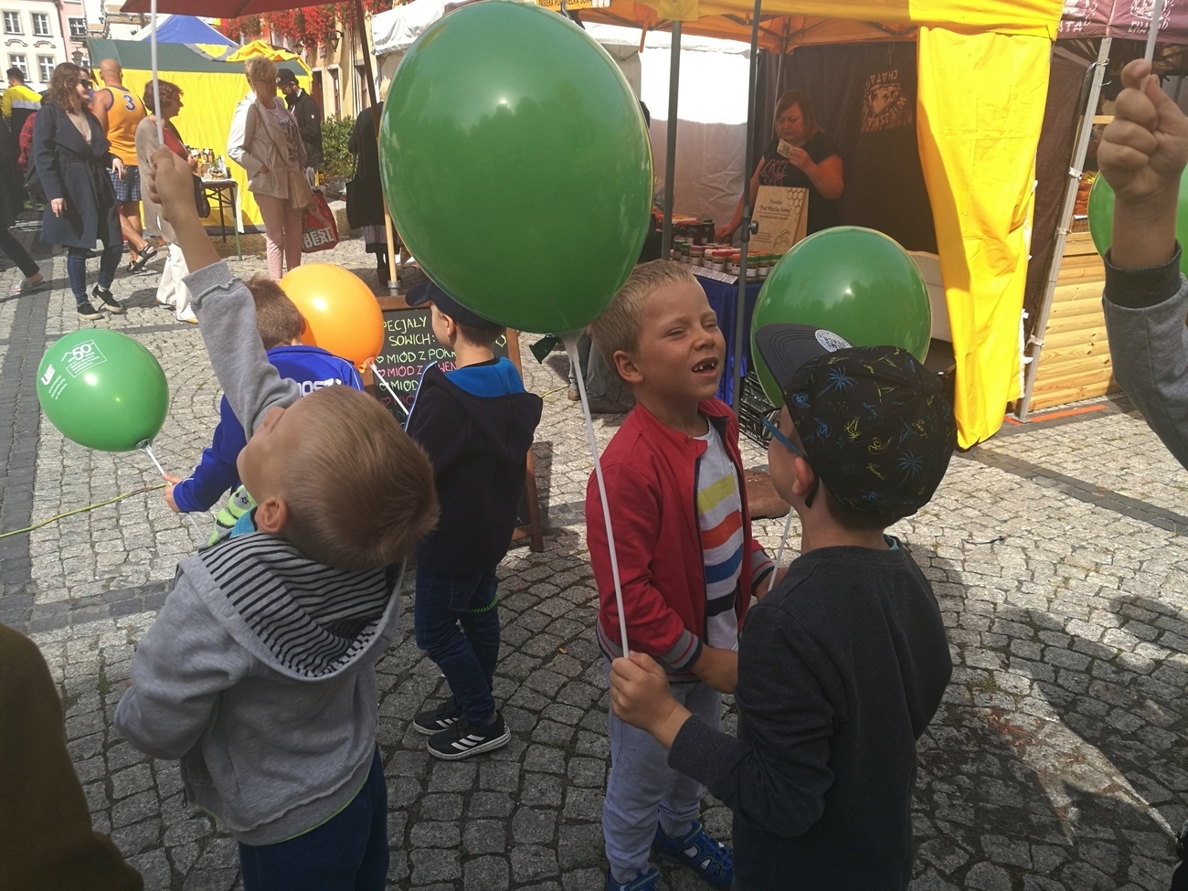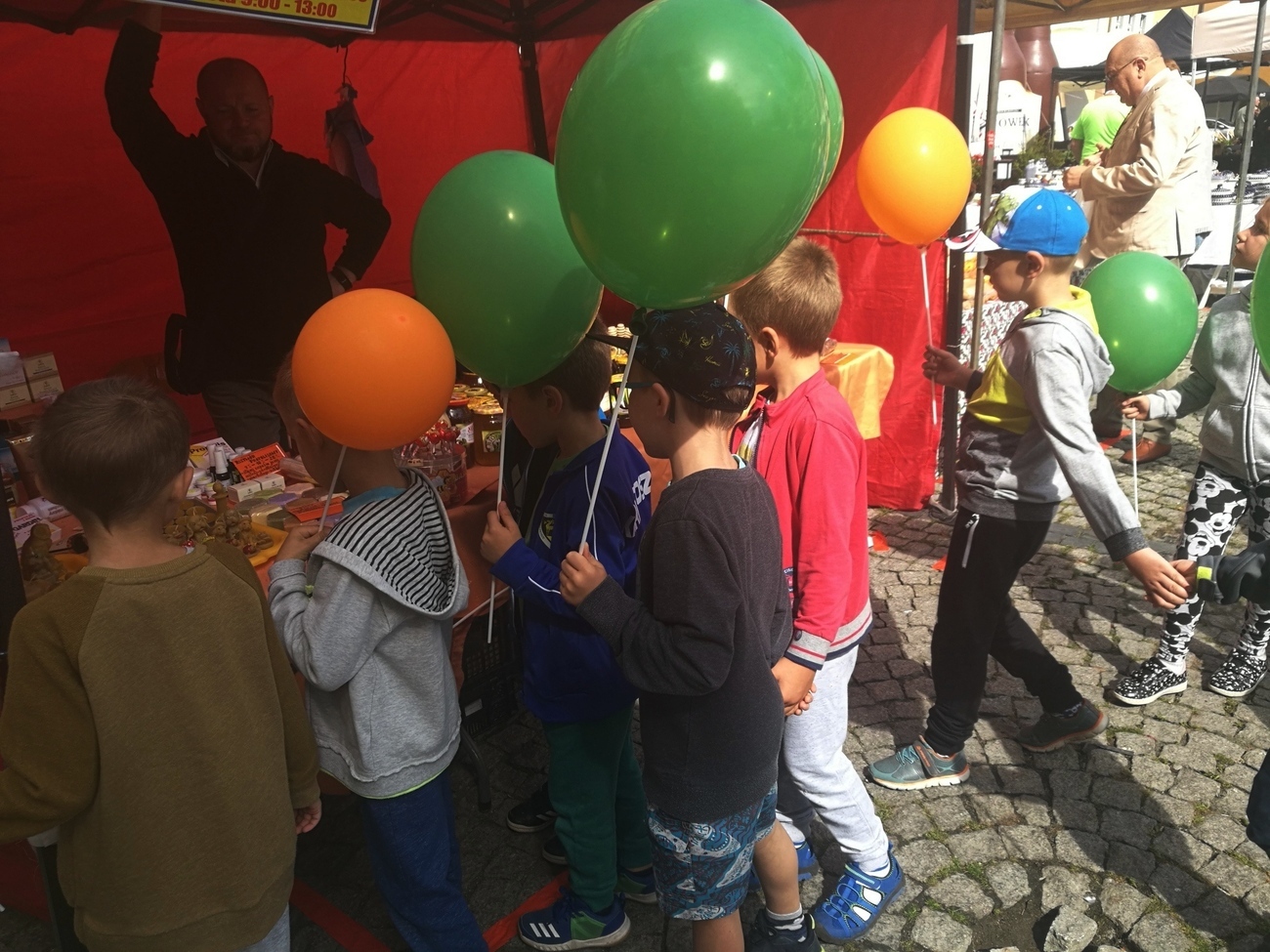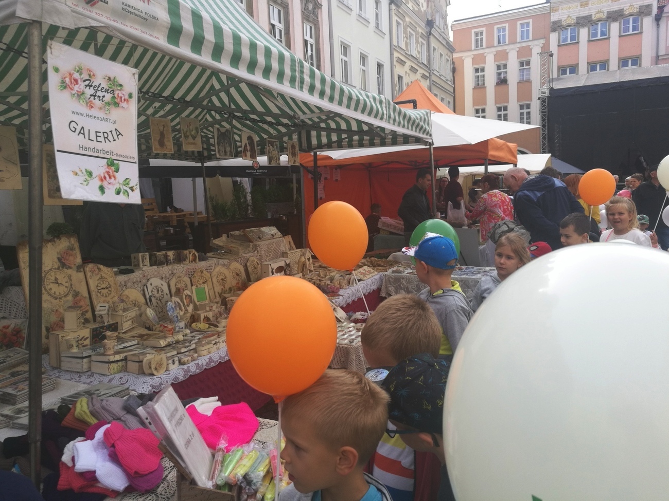 Miesiąc wrzesień dla wszystkich mieszkańców naszego miasta jest czasem szczególnym. W tym właśnie okresie świętujemy Wrzesień Jeleniogórski, czyli jak to dzieci mówią „urodziny miasta”. Z tej okazji odbywa się wiele imprez, wystaw koncertów. Jednym z wydarzeń są tragi „ Wyprodukowane pod Śnieżką”, w których braliśmy jako widzowie udział. Jednak zanim udaliśmy się na Plac Ratuszowy, by podziwiać wszystkie rękodzieła, porozmawialiśmy w przedszkolu o naszym pięknym mieście. Przypomnieliśmy sobie legendę o powstaniu Jeleniej Góry, omówiliśmy symbole naszego miasta (herb i flagę) oraz wysłuchaliśmy hejnału, przy którym zgodnie stwierdziliśmy, że jest znacznie ładniejszy od tego krakowskiego. Wyklejaliśmy również za pomocą plasteliny małe repliki herbu. Po takim wprowadzeniu mogliśmy udać się na targi. Wszystkie wystawiane produkty bardzo nam się podobały, dziewczynkom szczególnie przypadły do gustu ozdoby wykonane ze szkła, zwłaszcza, że mogliśmy obserwować proces ich powstawania. Piękne wyszywane poduszki, ozdobne pudełka, smakowite regionalne produkty i grający skoczną muzykę zespól umilający wszystkim zwiedzającym czas - sprawiły, że z chęcią byśmy pozostali tam na dłużej. Pewnie niektórzy z nas wrócą tu popołudniu z rodzicami a na razie nadszedł dla nas czas powrotu do przedszkola.